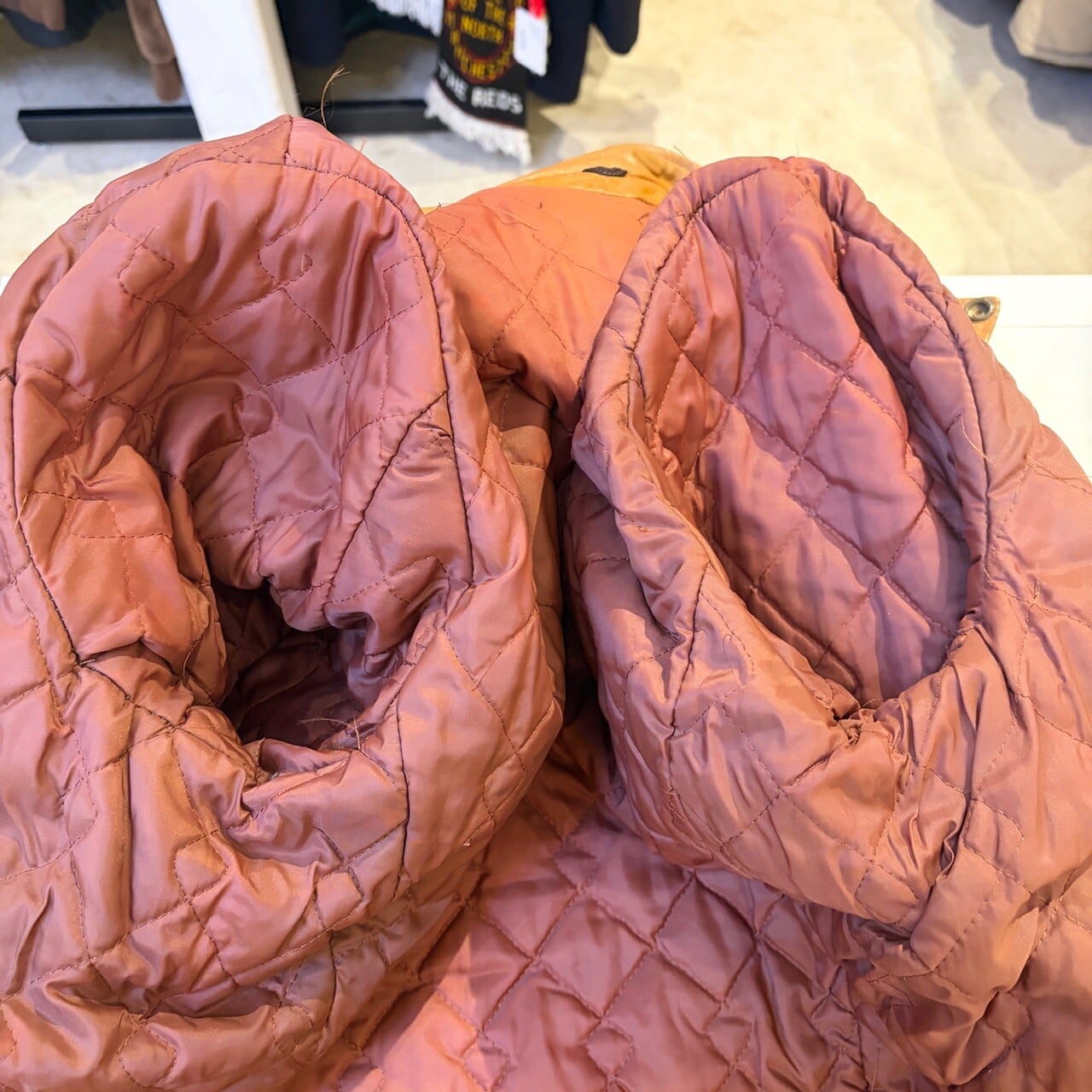 薄汚れ、小キズ、裏地ステッチ抜けなど御座いますが問題なく着用可能な状態です。