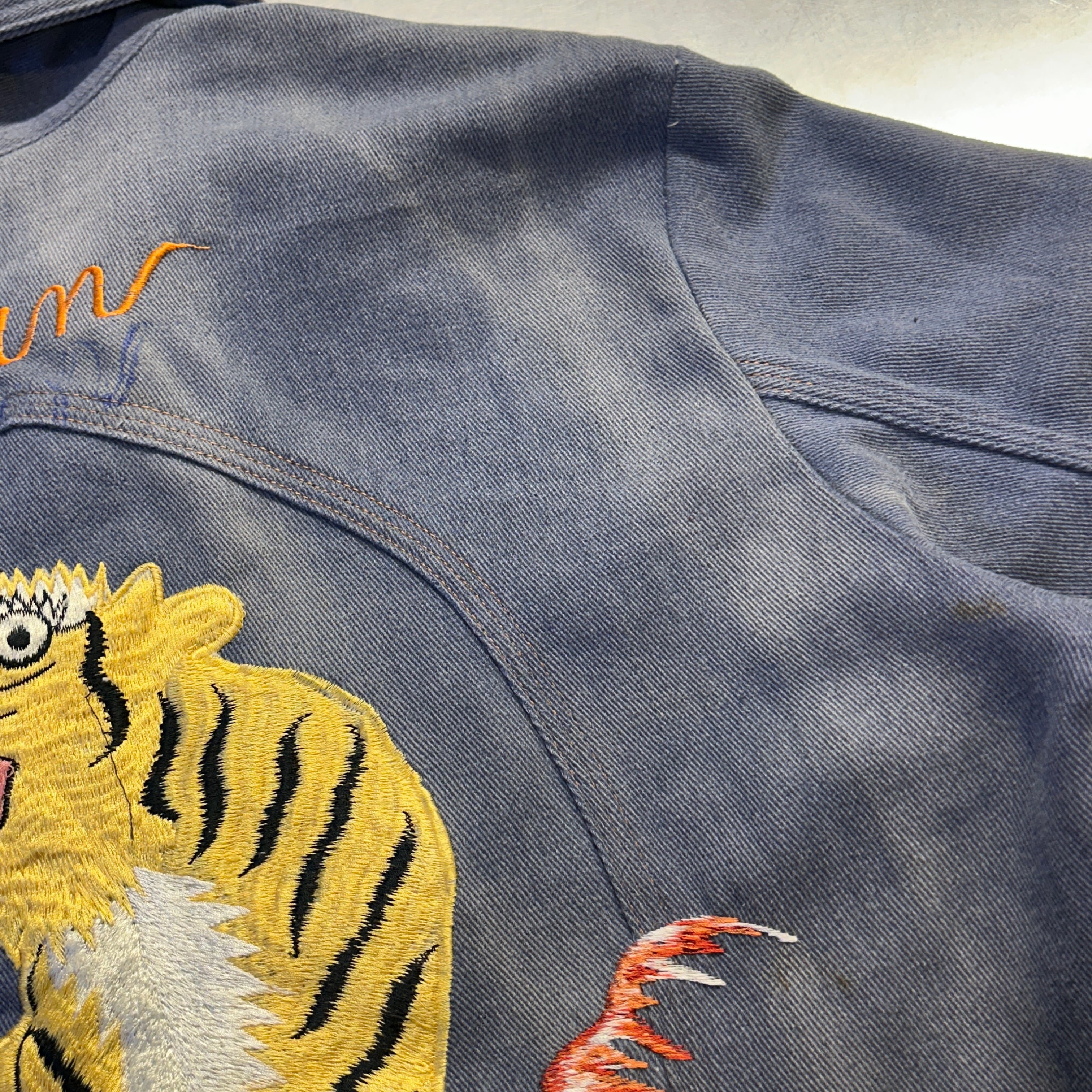 画像の様に汚れ、使用感がございますが、著しい汚れやダメージ等は無く、古着慣れされた方でしたら、問題無く着用可能な状態です。