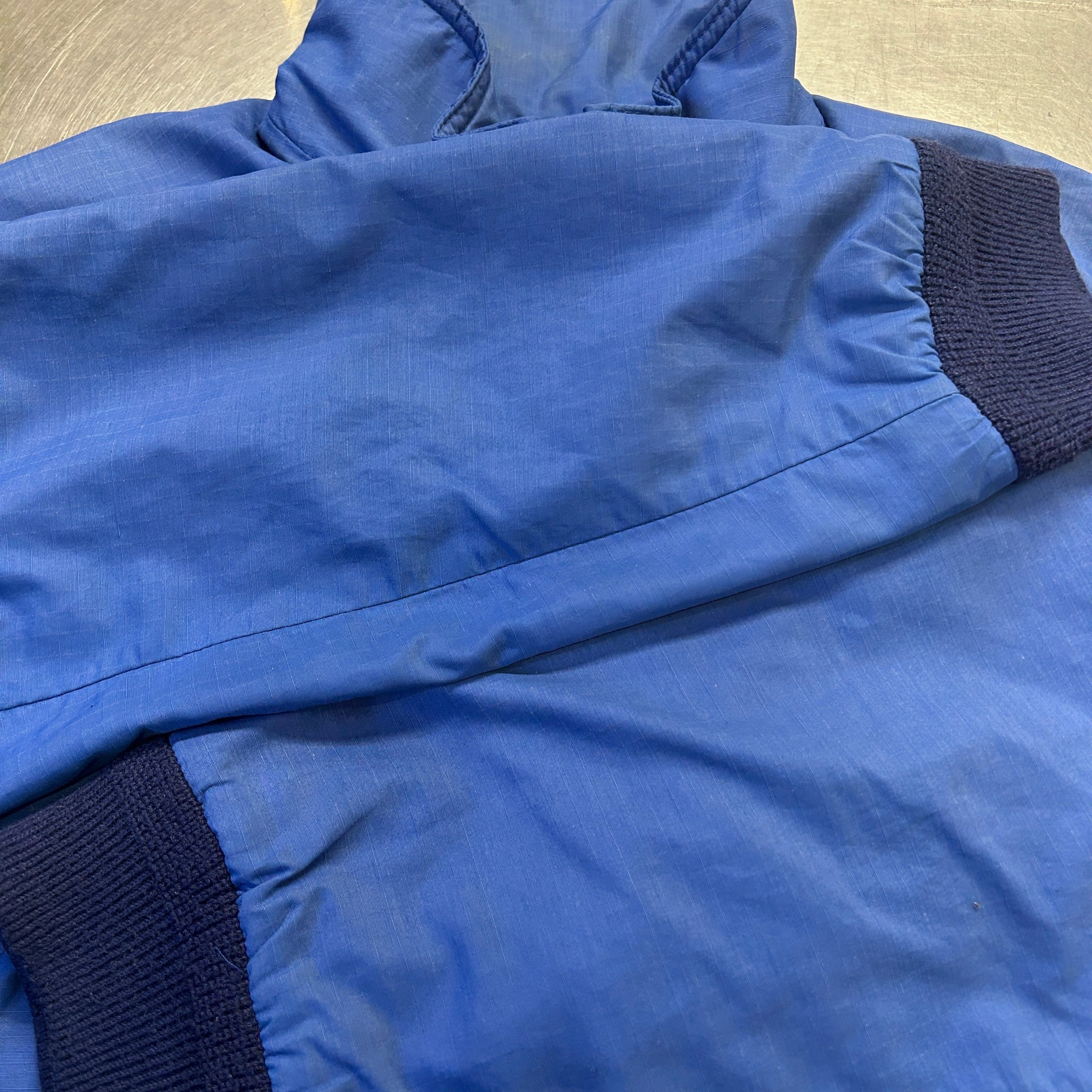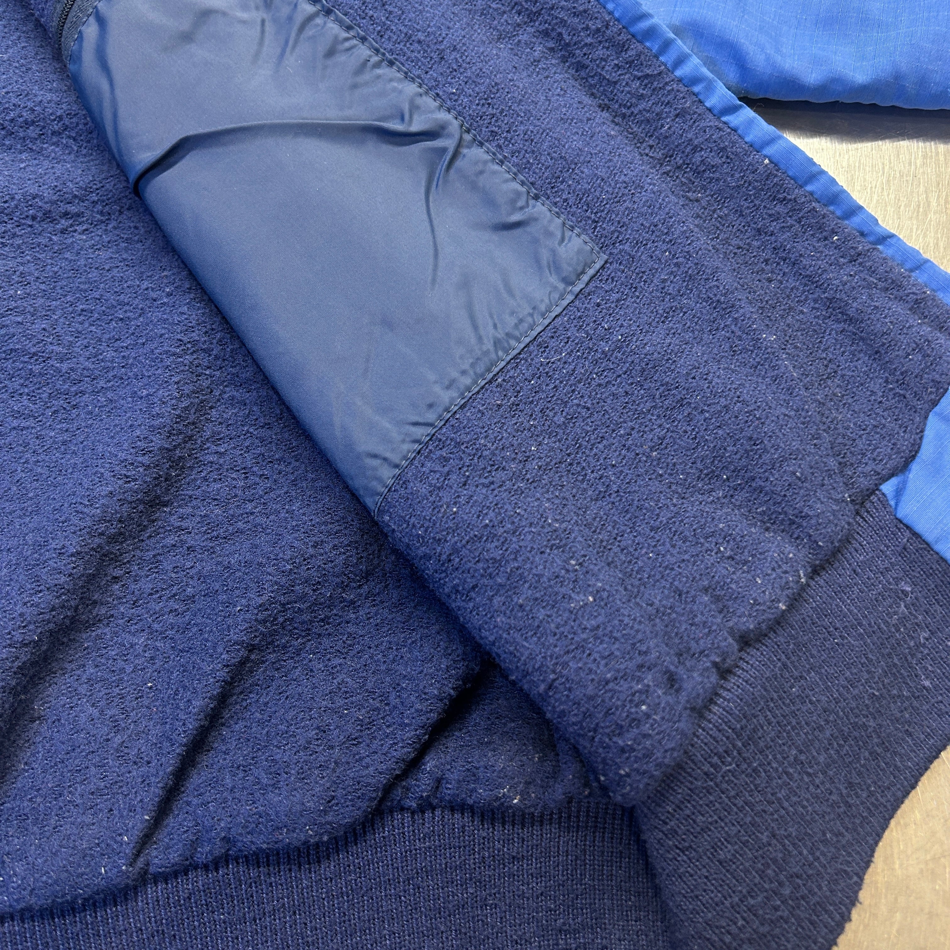 画像の様にリブとライナーに毛羽立ちと毛玉、薄い汚れ、スレ、全体的に色褪せ等の使用感がございますが、著しい汚れやダメージ等は無く、古着慣れされた方でしたら、問題無く着用可能な状態です。