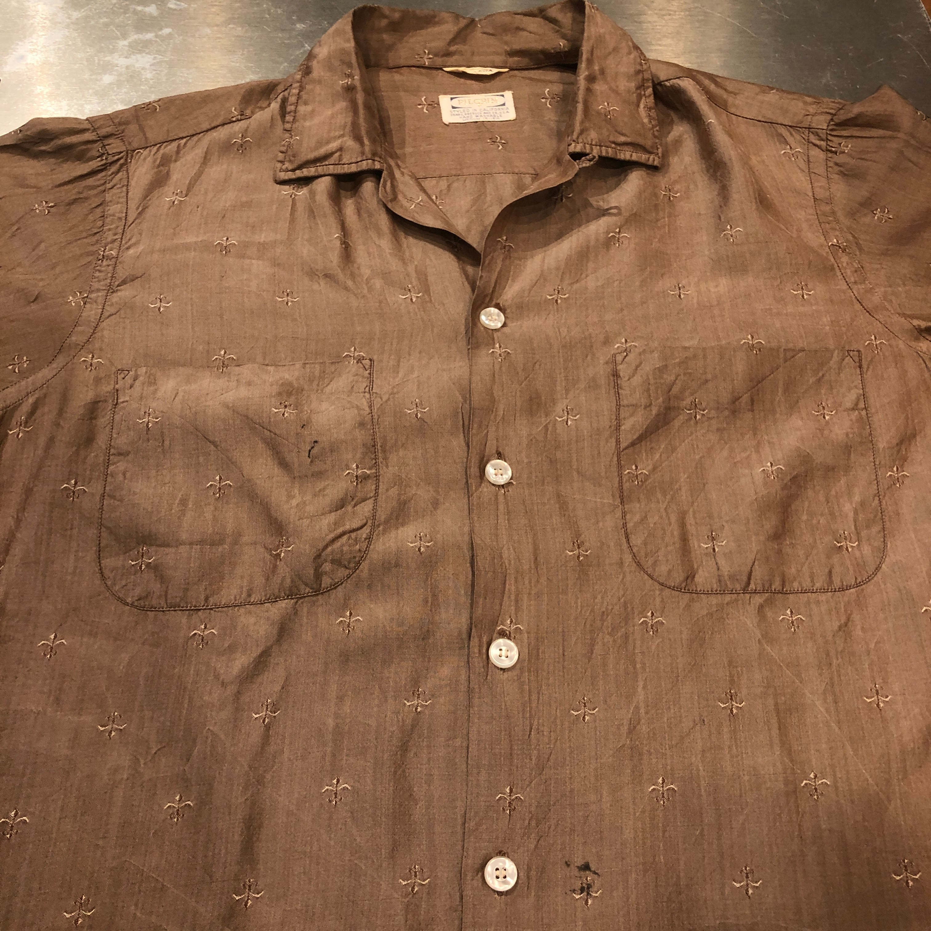⊕1960'S PILGRIM BROWN SILK SHIRT
