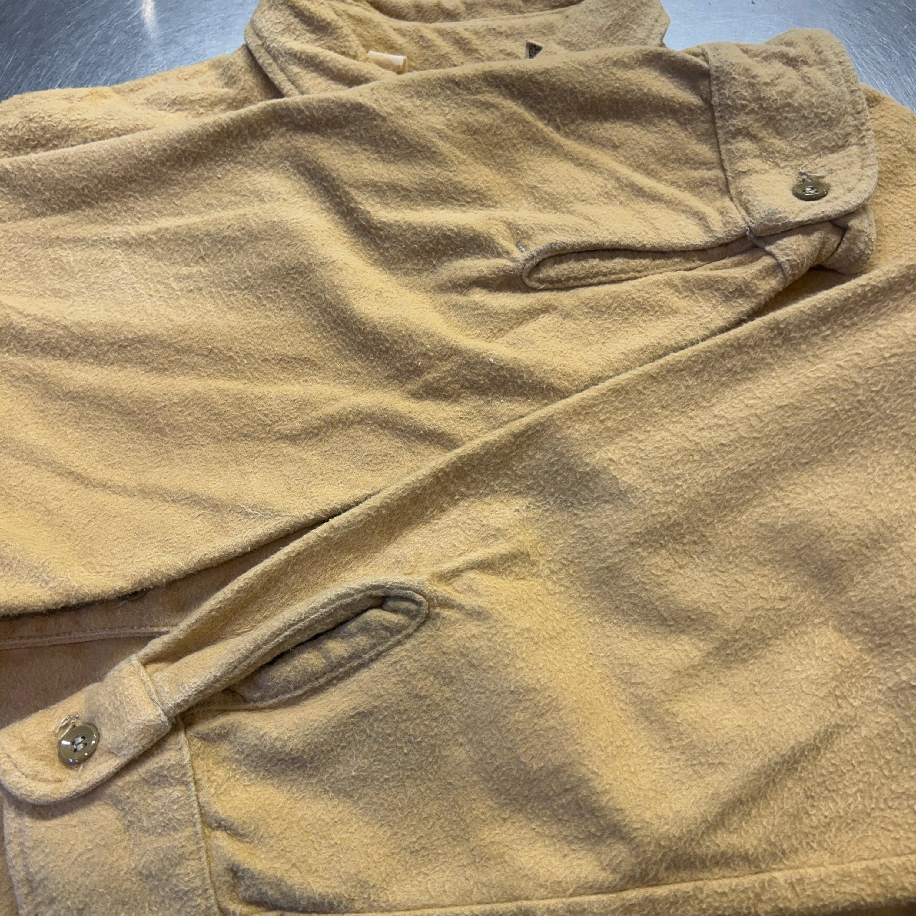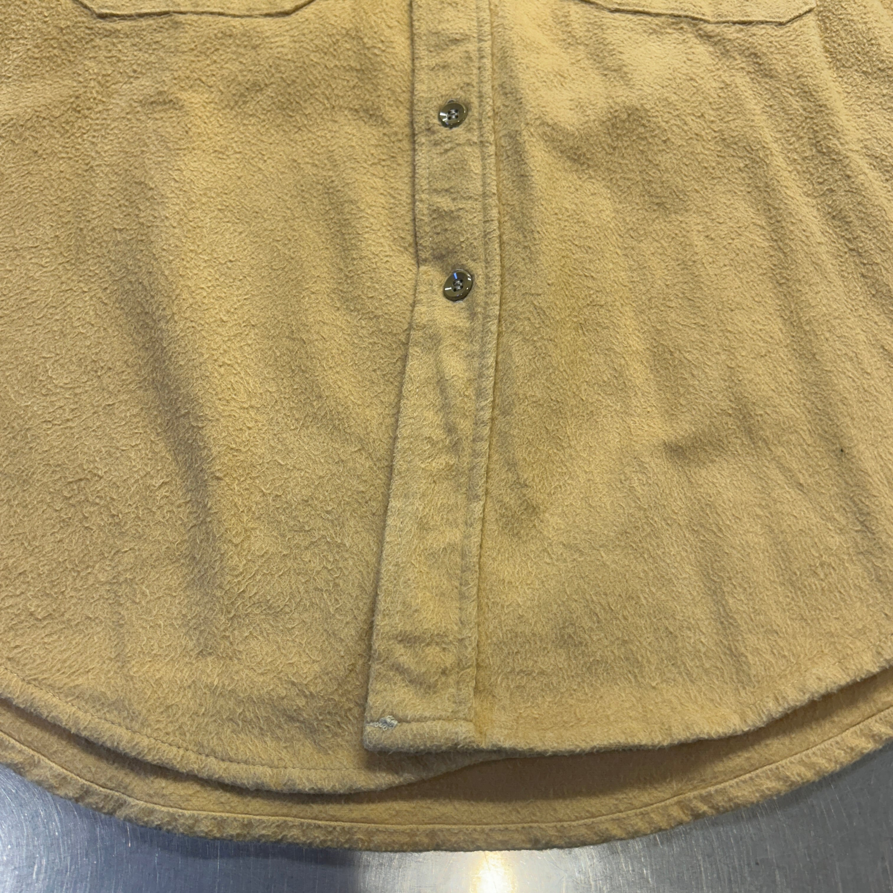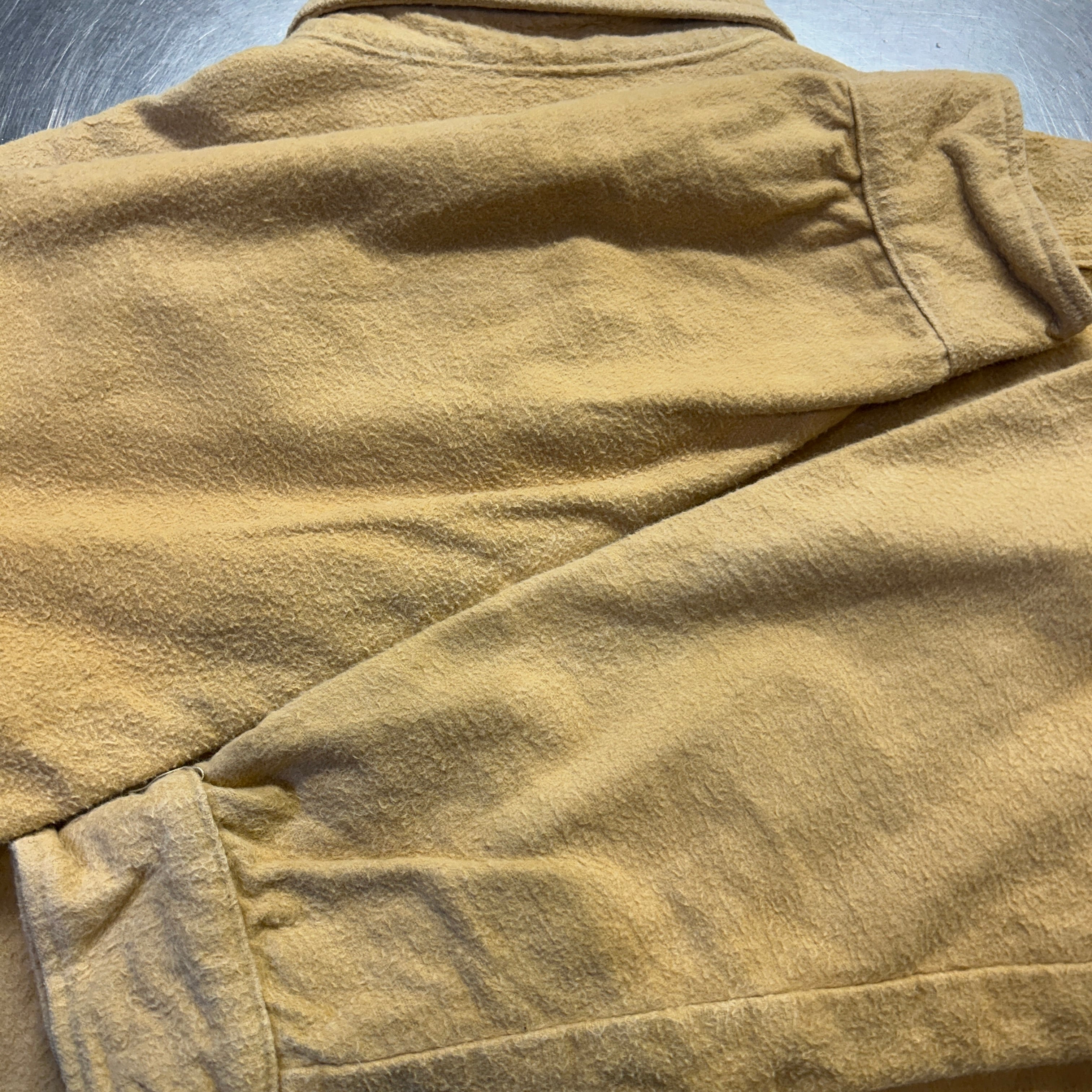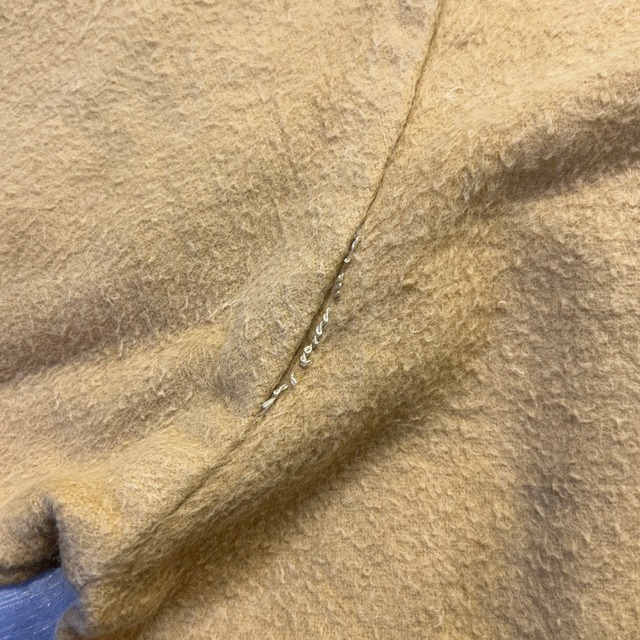 古着のシャモアだと毛足の短いものが多いですが、こちらはしっかりと毛足が長いです。からし色に近い黄色です。
