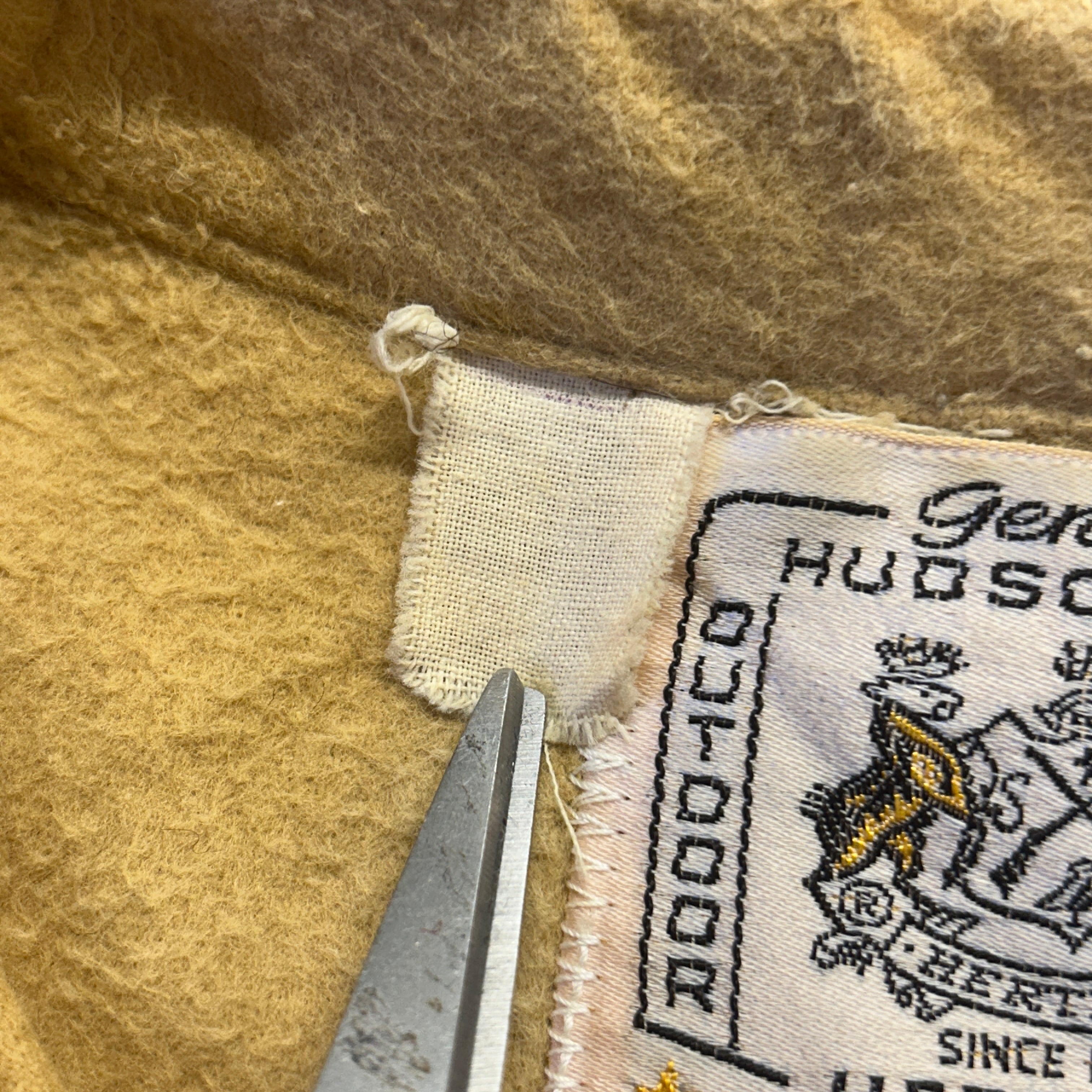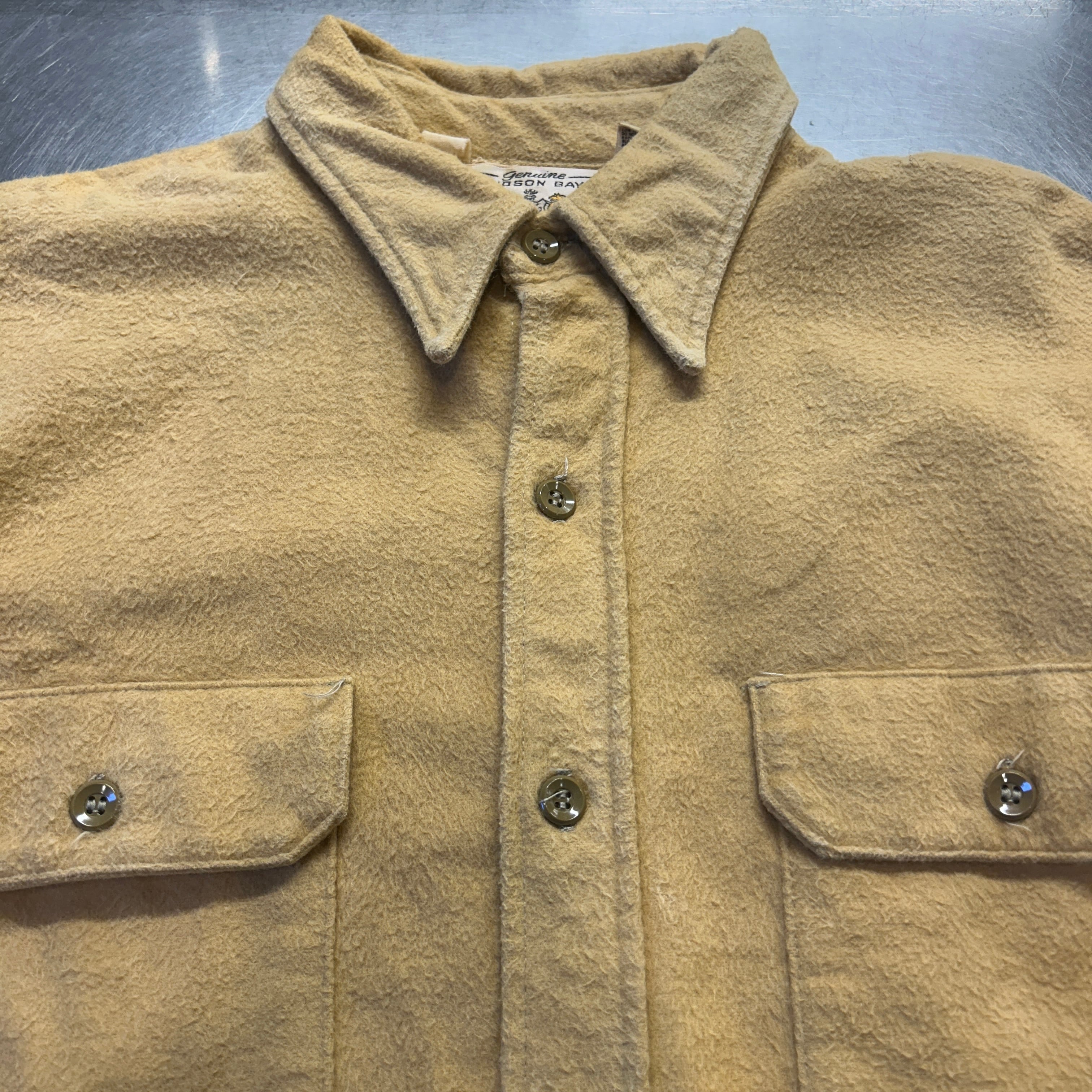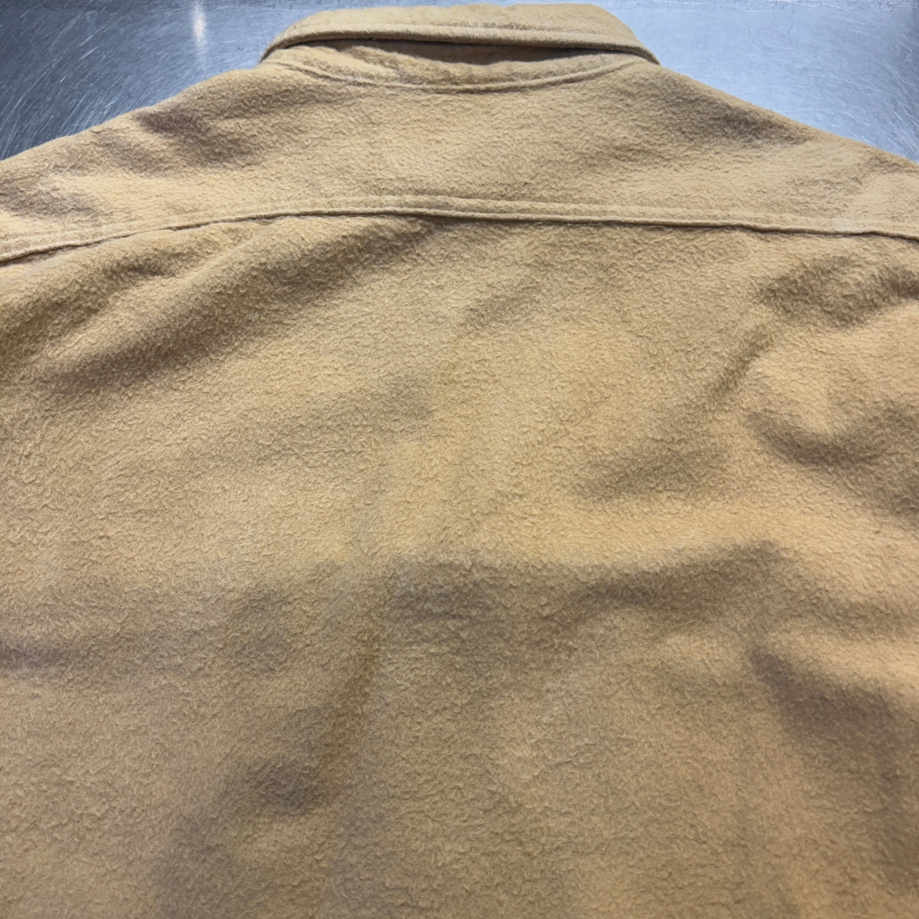 古着のシャモアだと毛足の短いものが多いですが、こちらはしっかりと毛足が長いです。からし色に近い黄色です。