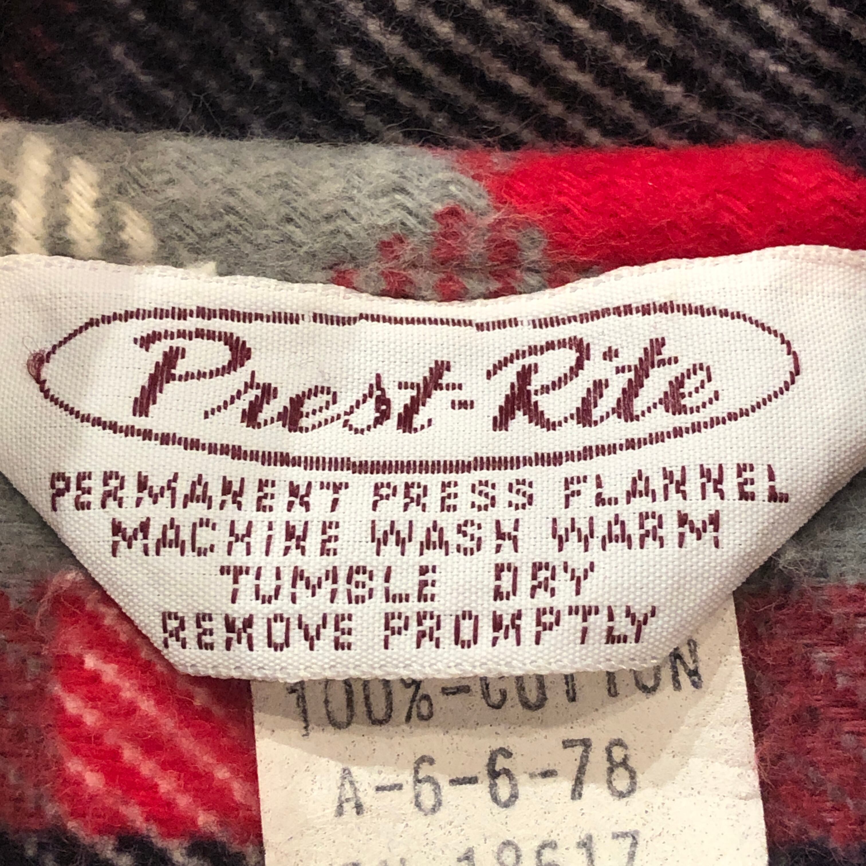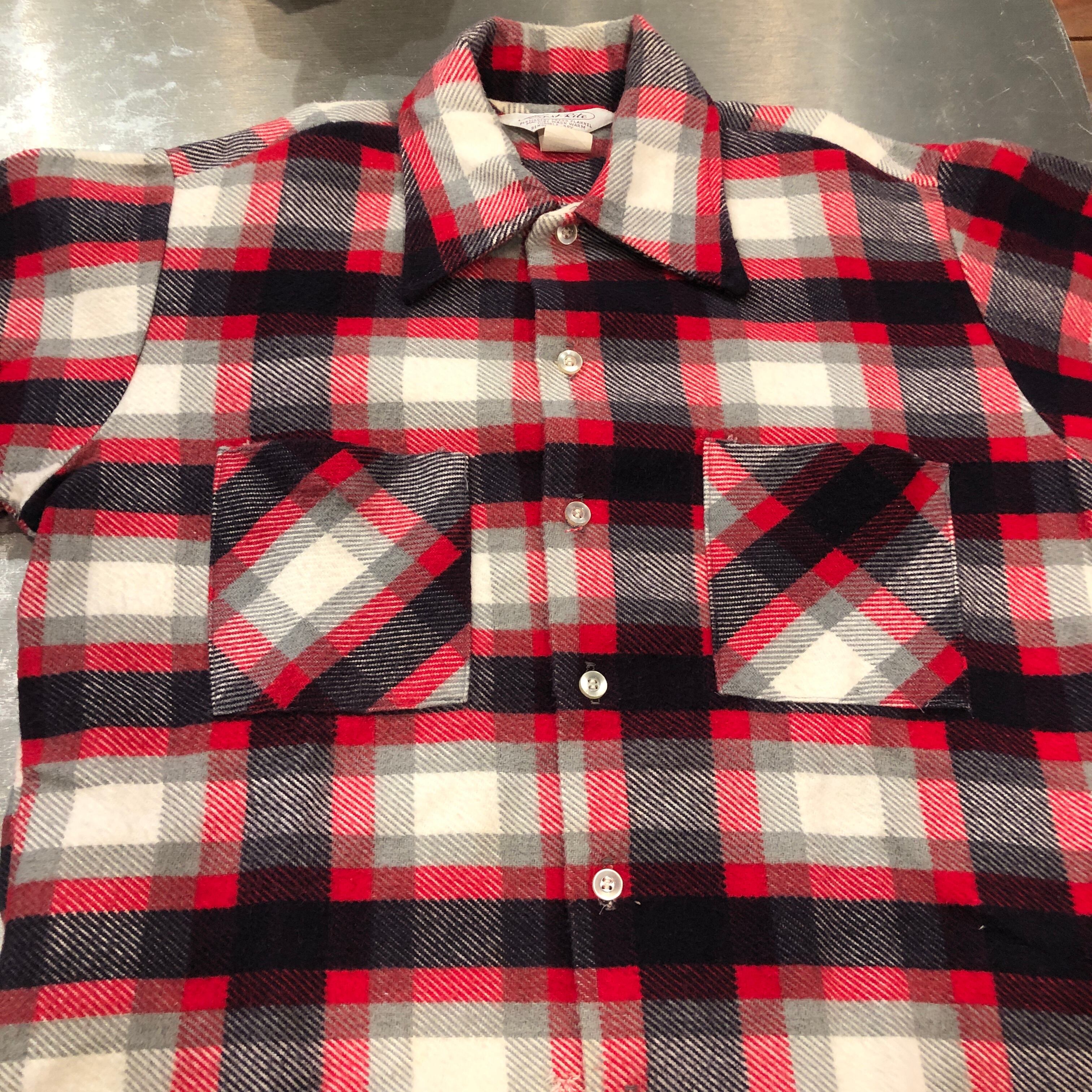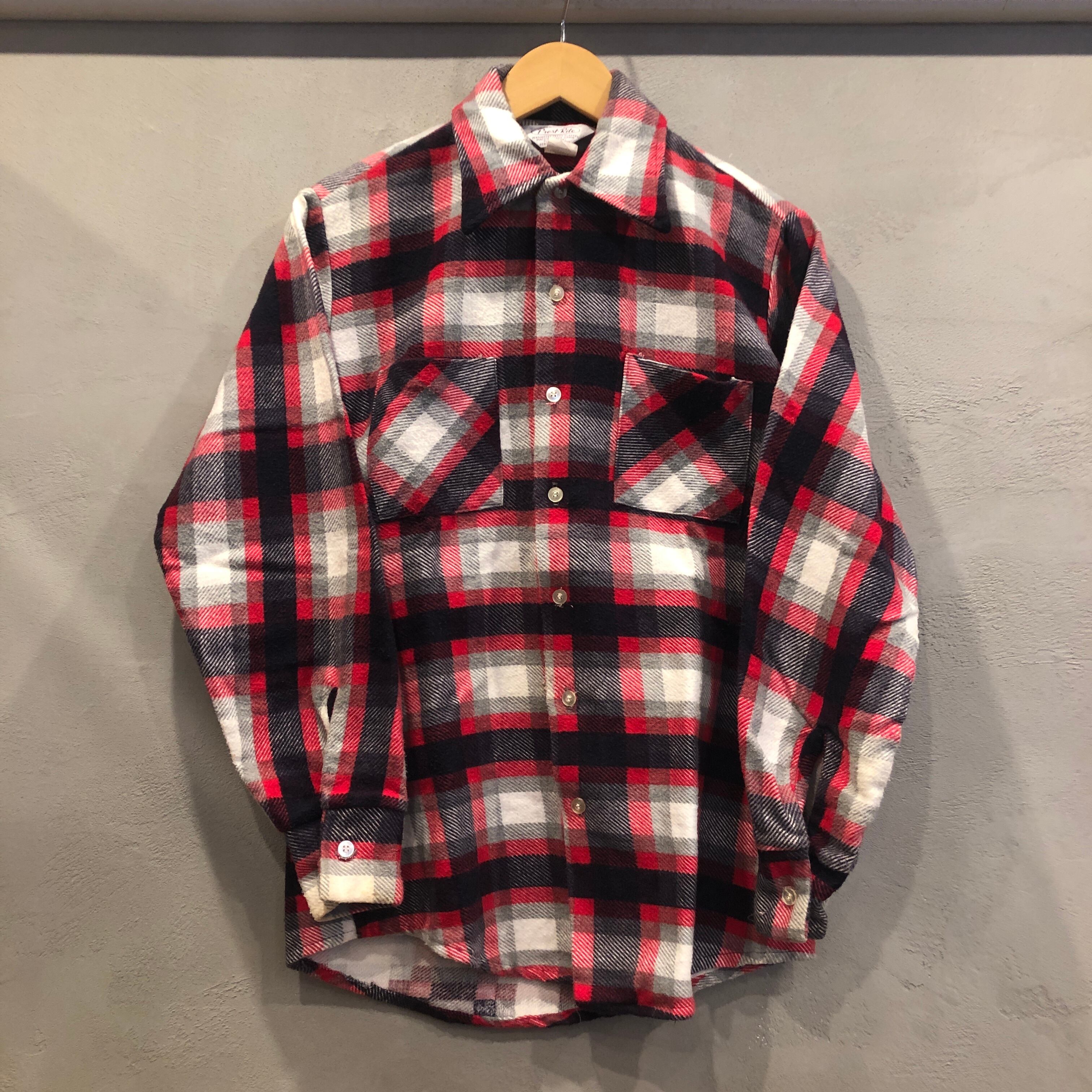 ⊕1970'S PREST-RITE PRINT FLANNEL CHECK SHIRT
