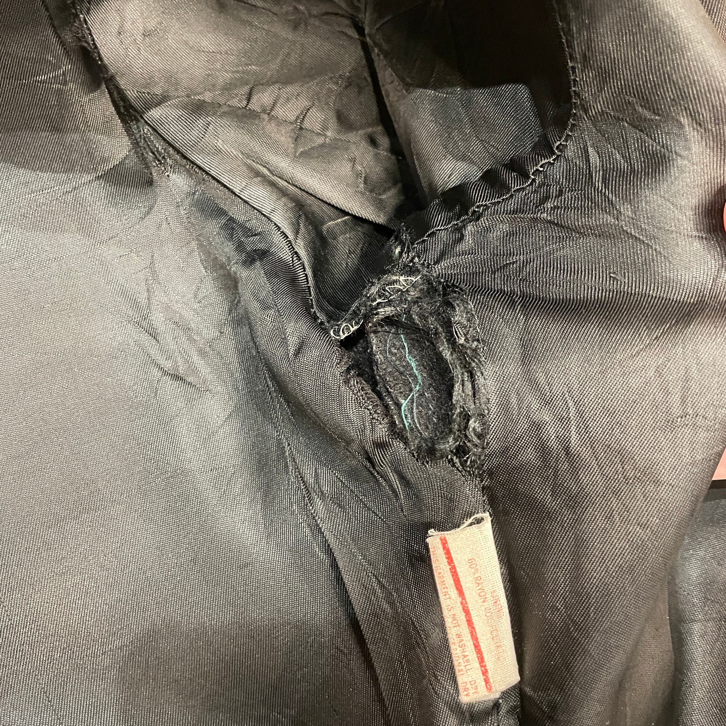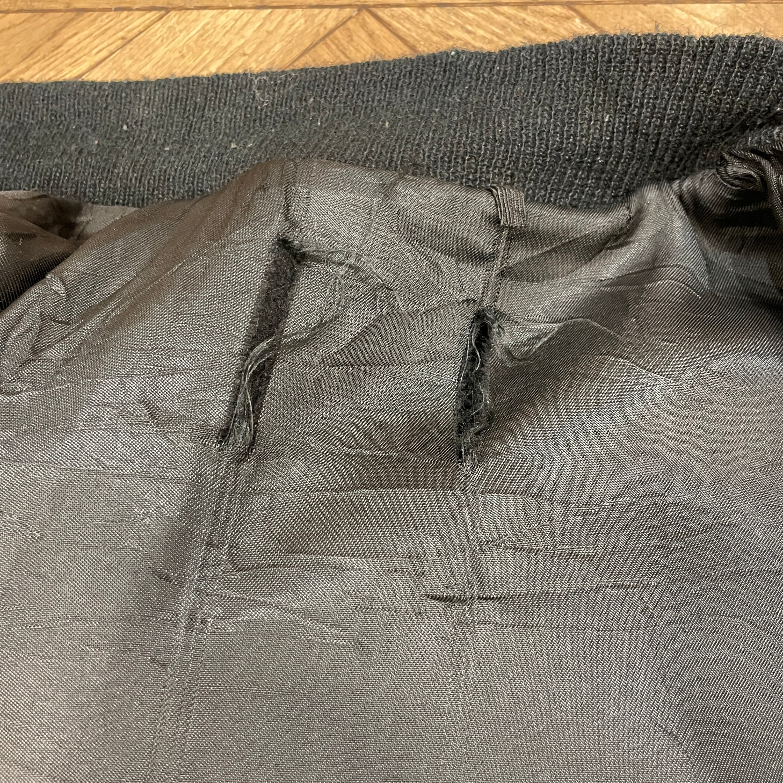 画像のように裏地のダメージ、着用感、各所素材特有の毛羽立ちが見られます。
