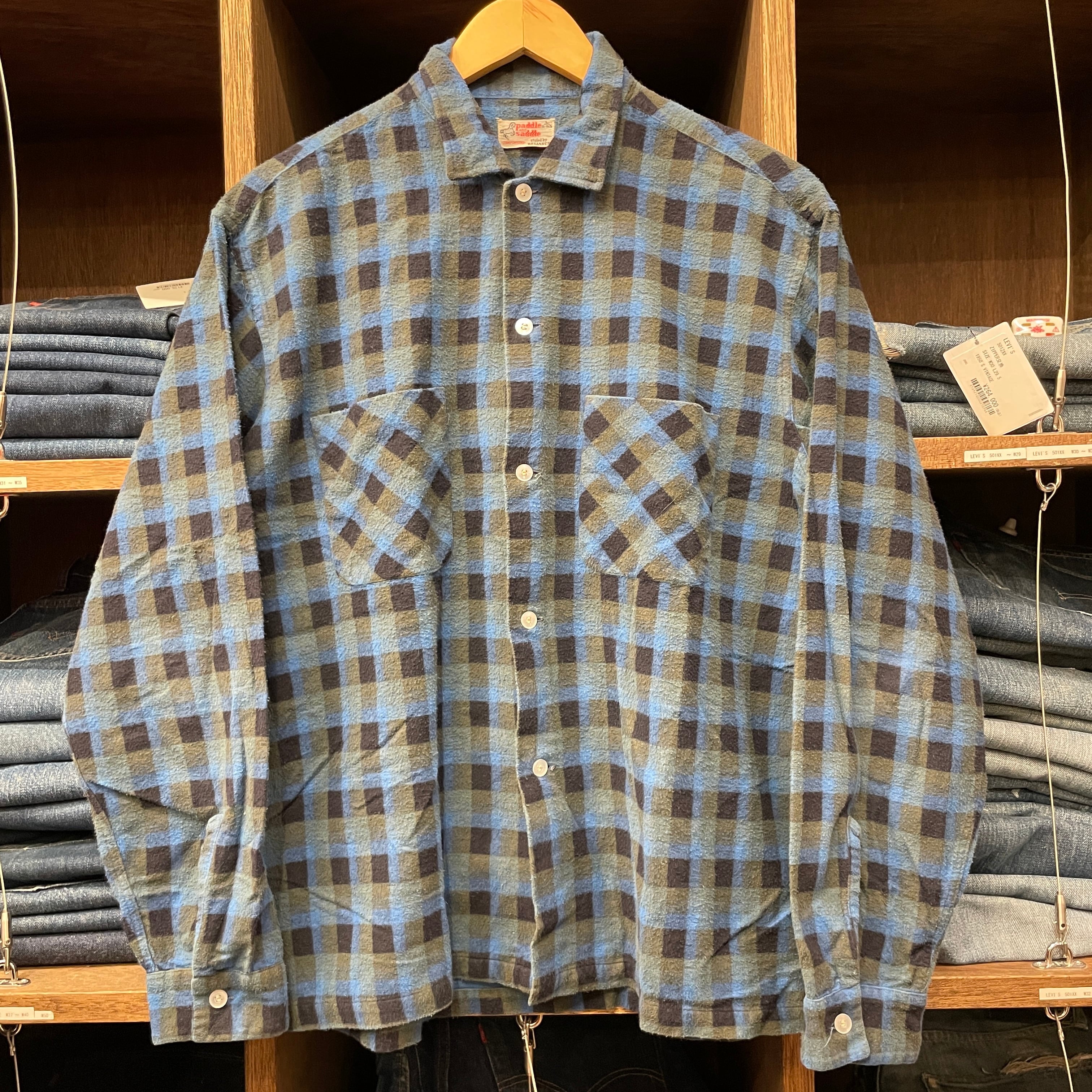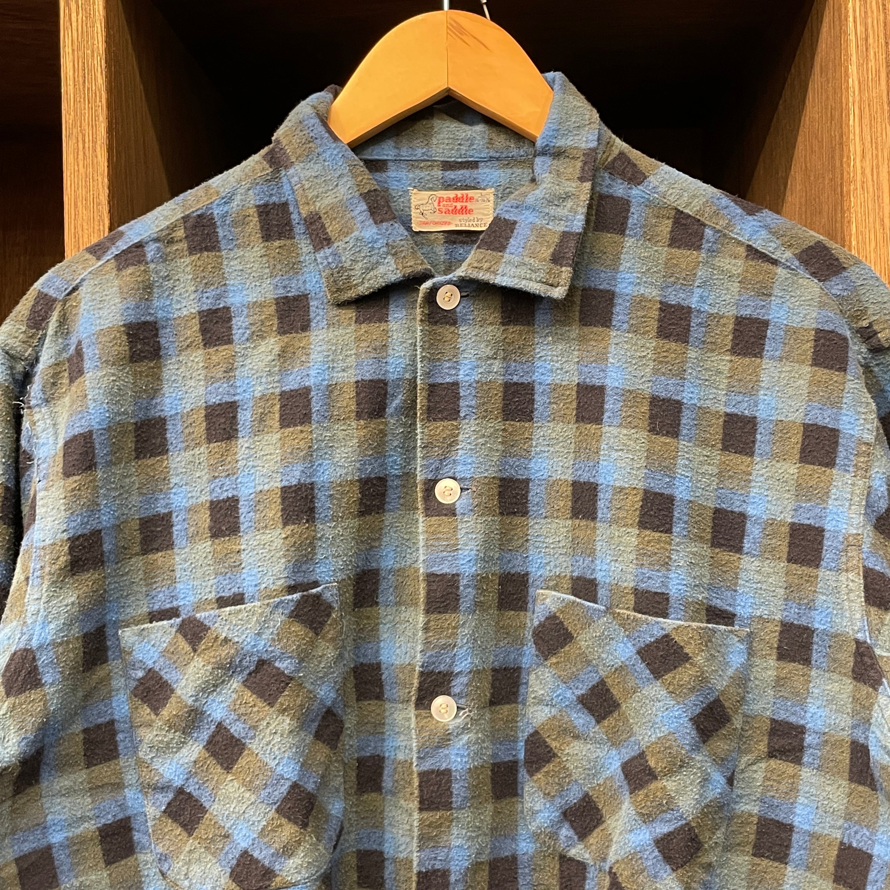 1960S PADDLE&SADDLE PRINT FLANNEL CHECK SHIRT