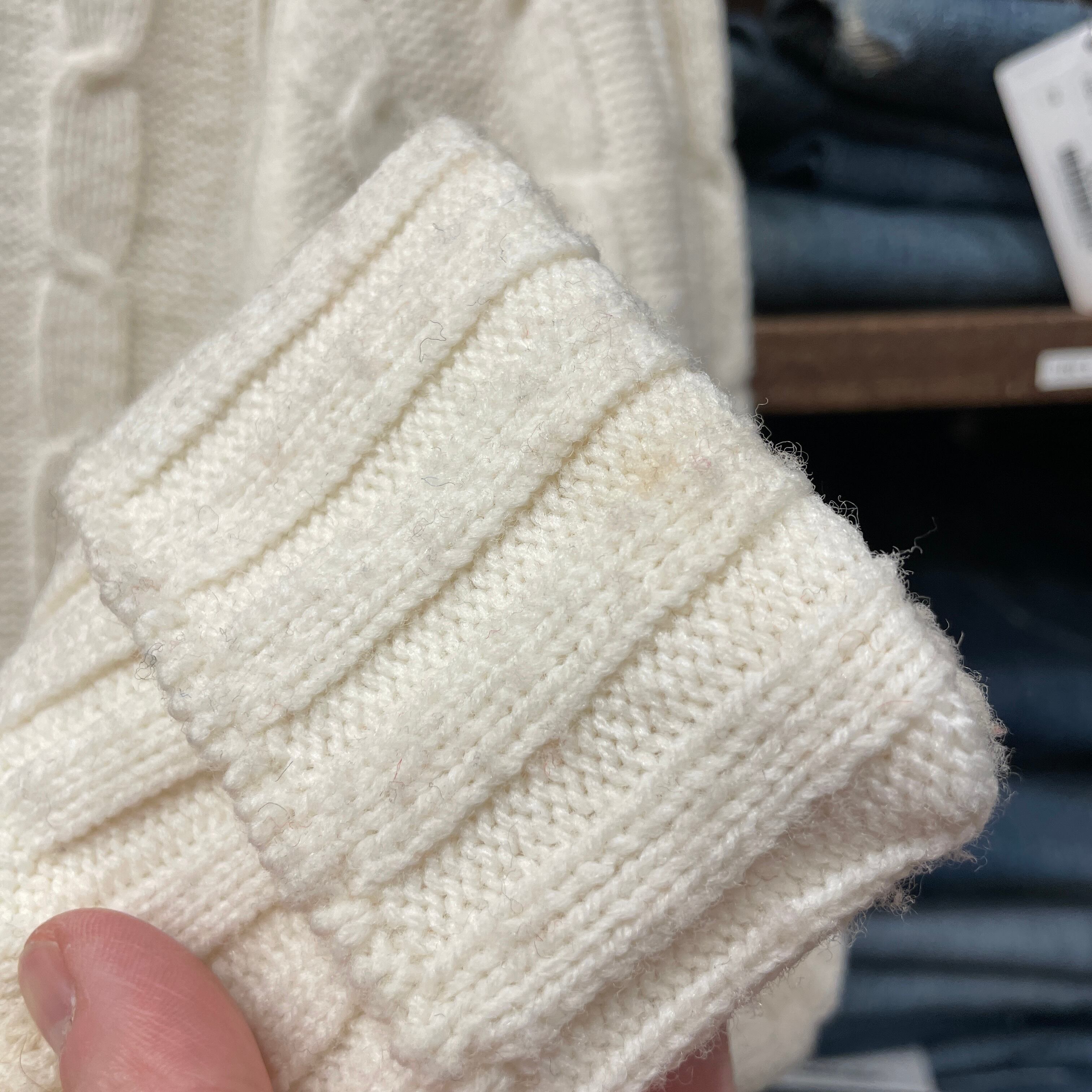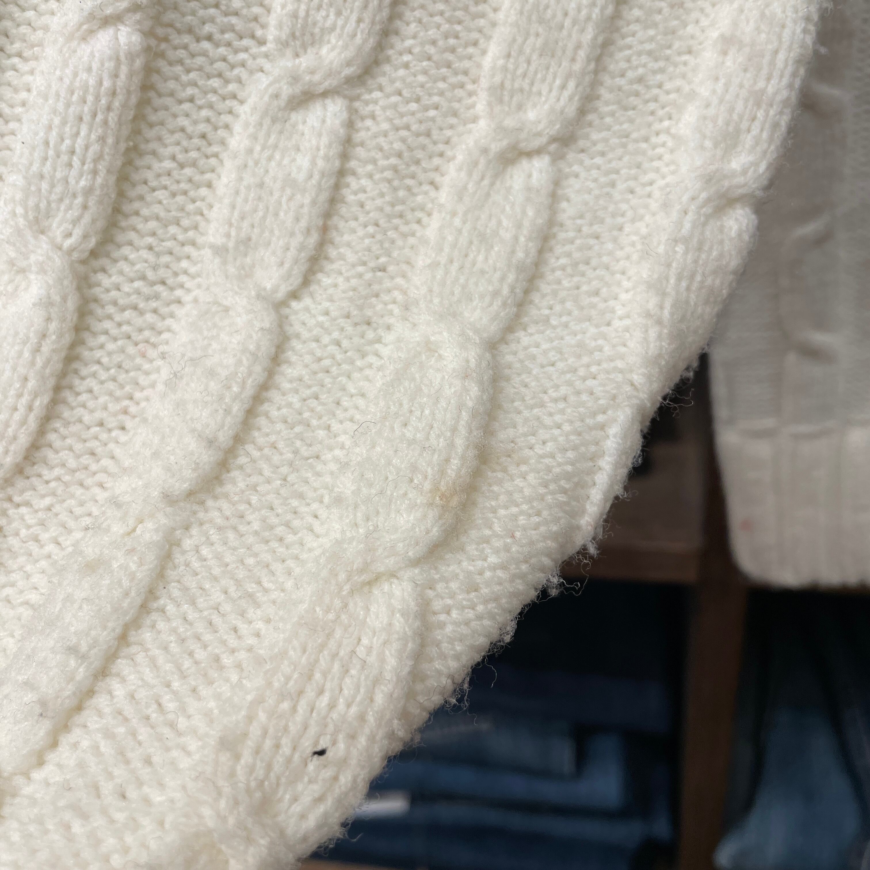 小さな汚れや糸抜け、毛羽立ちが見られます。