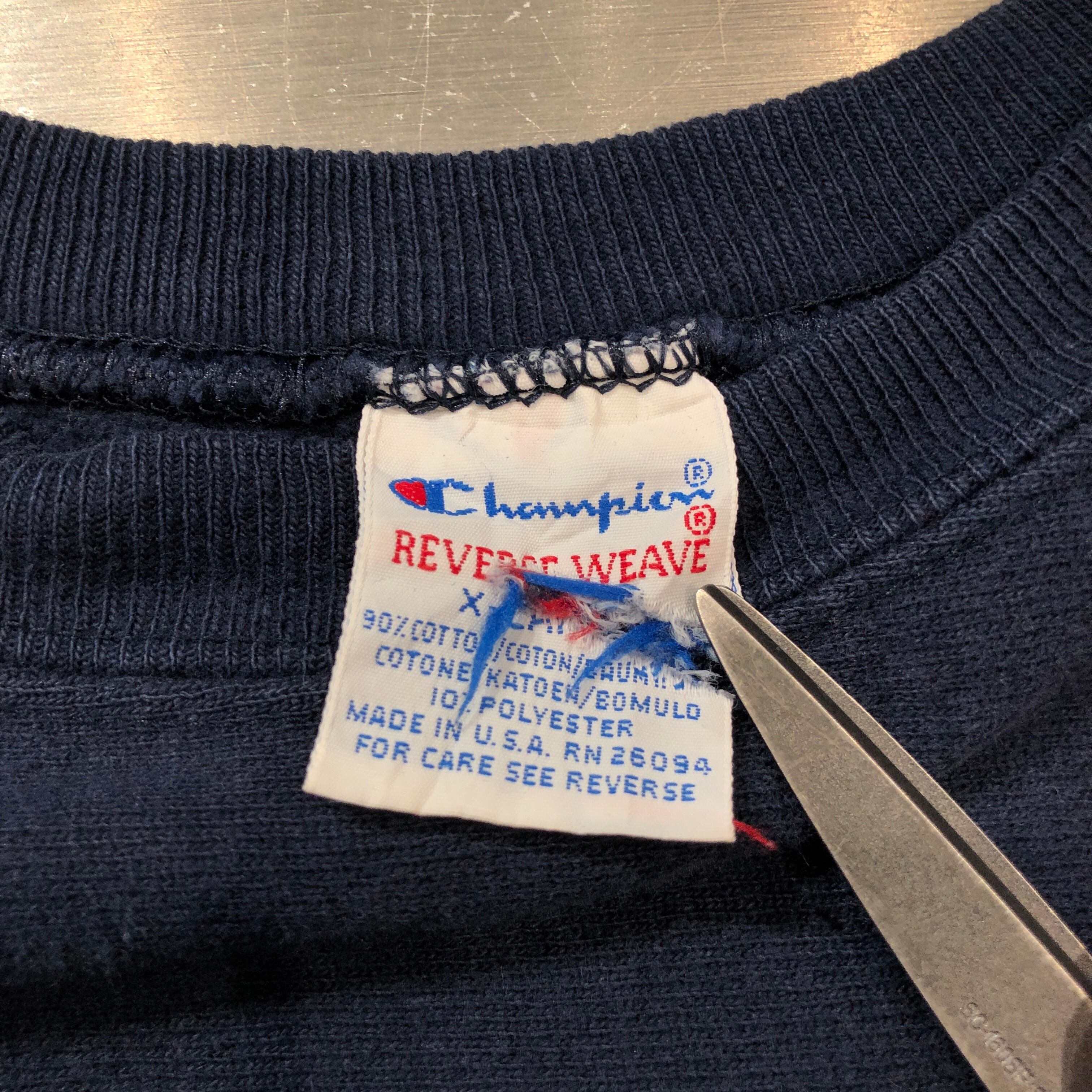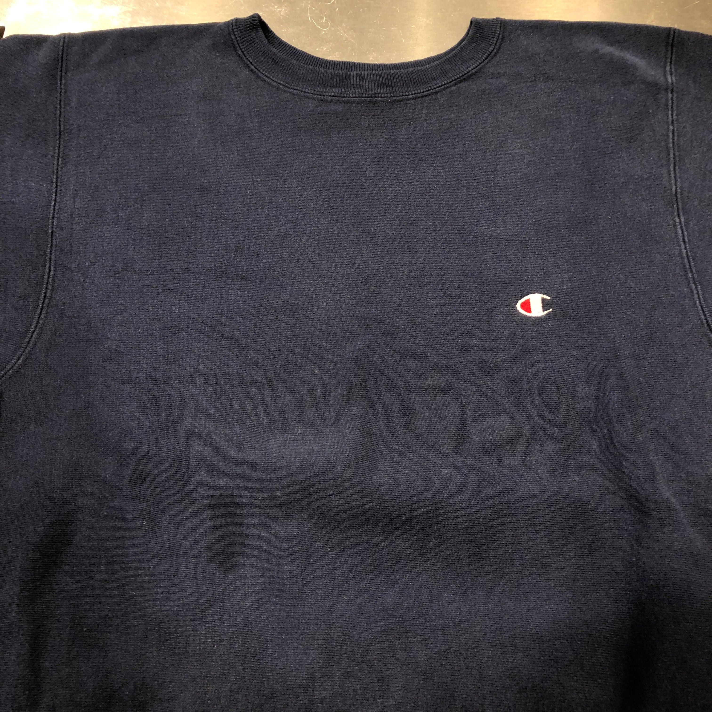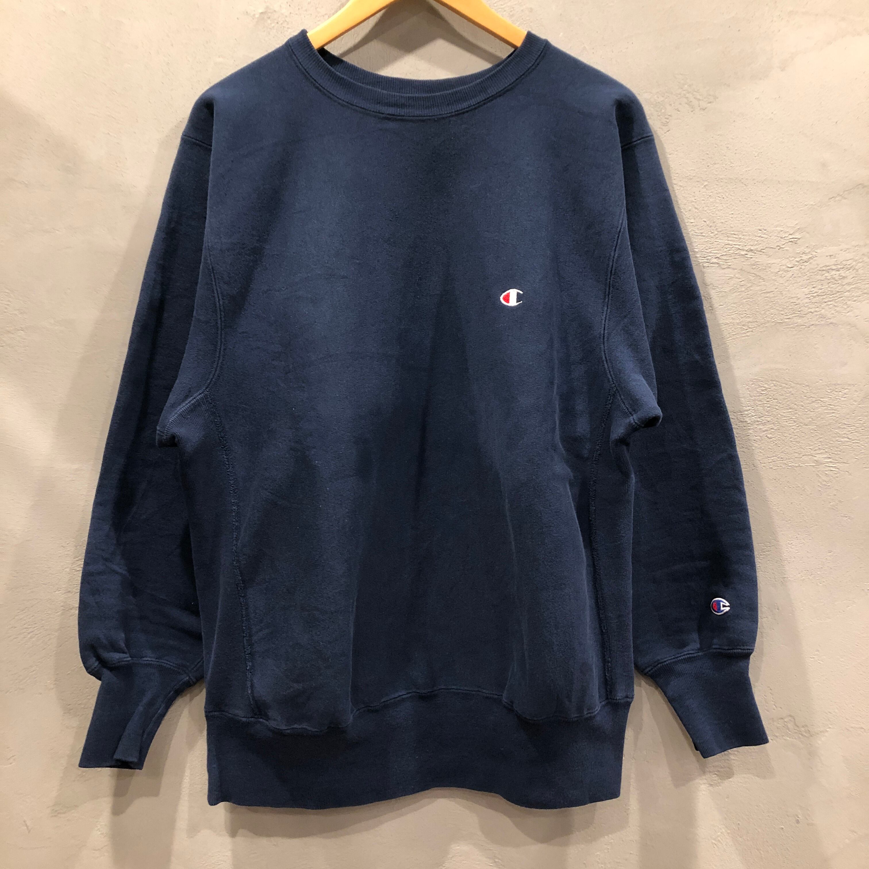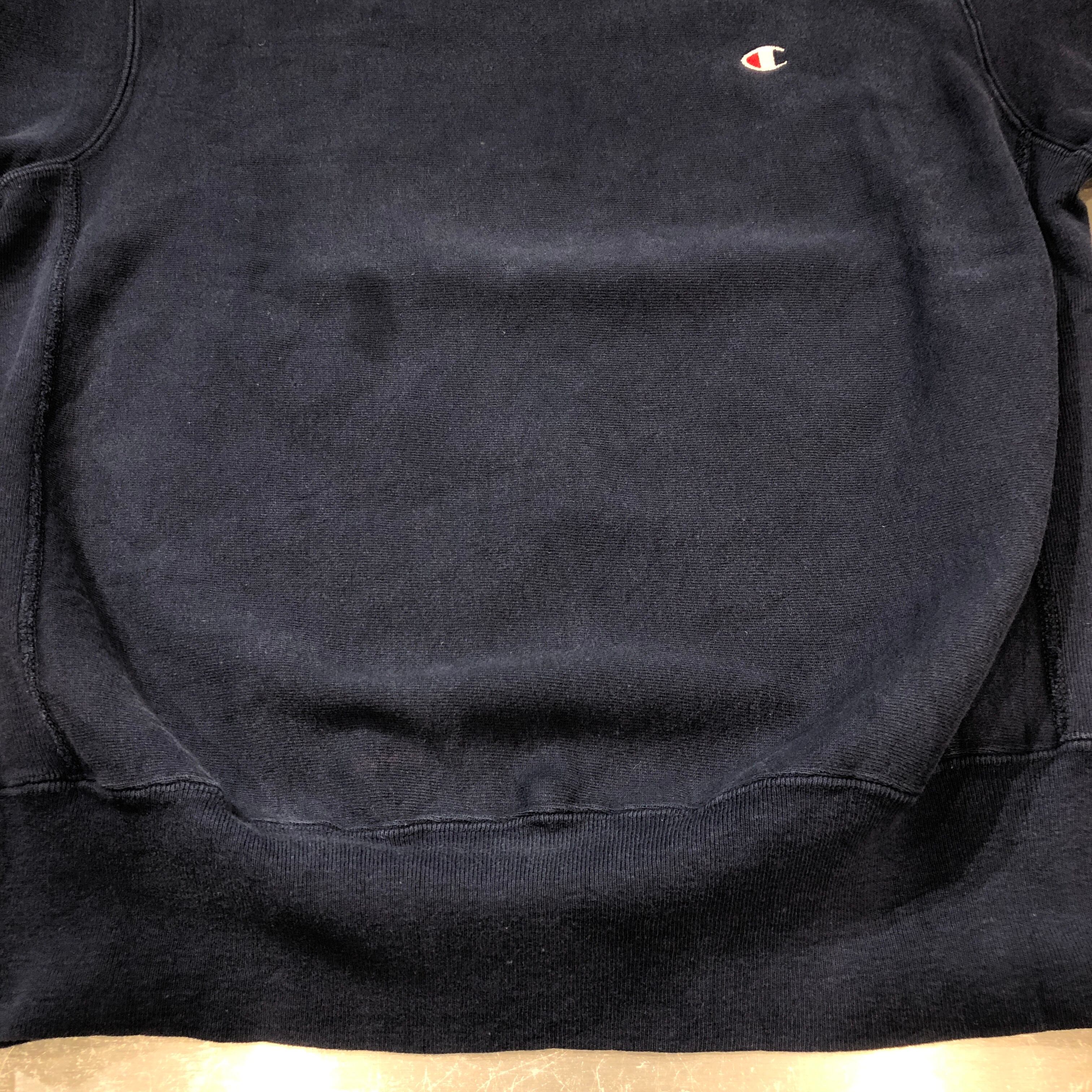 ⊕1990'S CHAMPION NAVY SOLID REVERSE WEAVE SWEAT