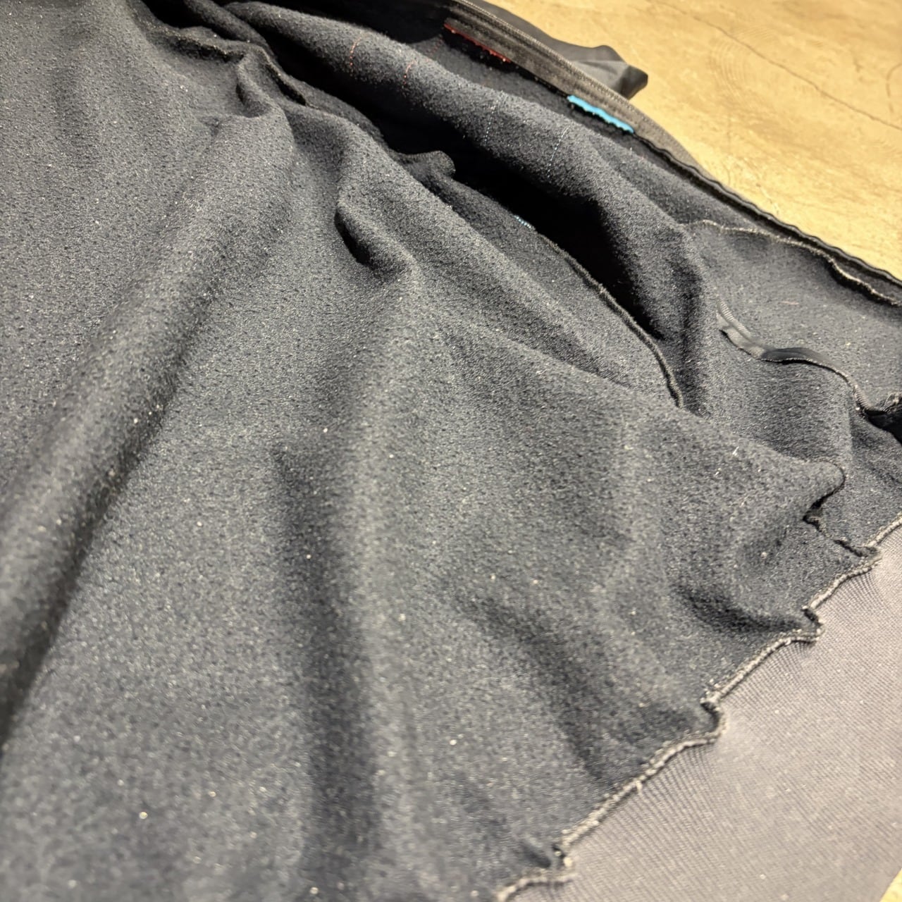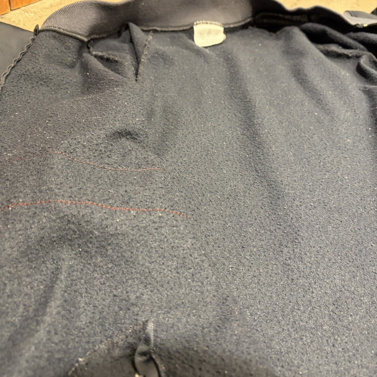 裏地の毛羽立ちや毛玉、スレ感がございますが、まだまだ問題無く着用していただける状態になります。