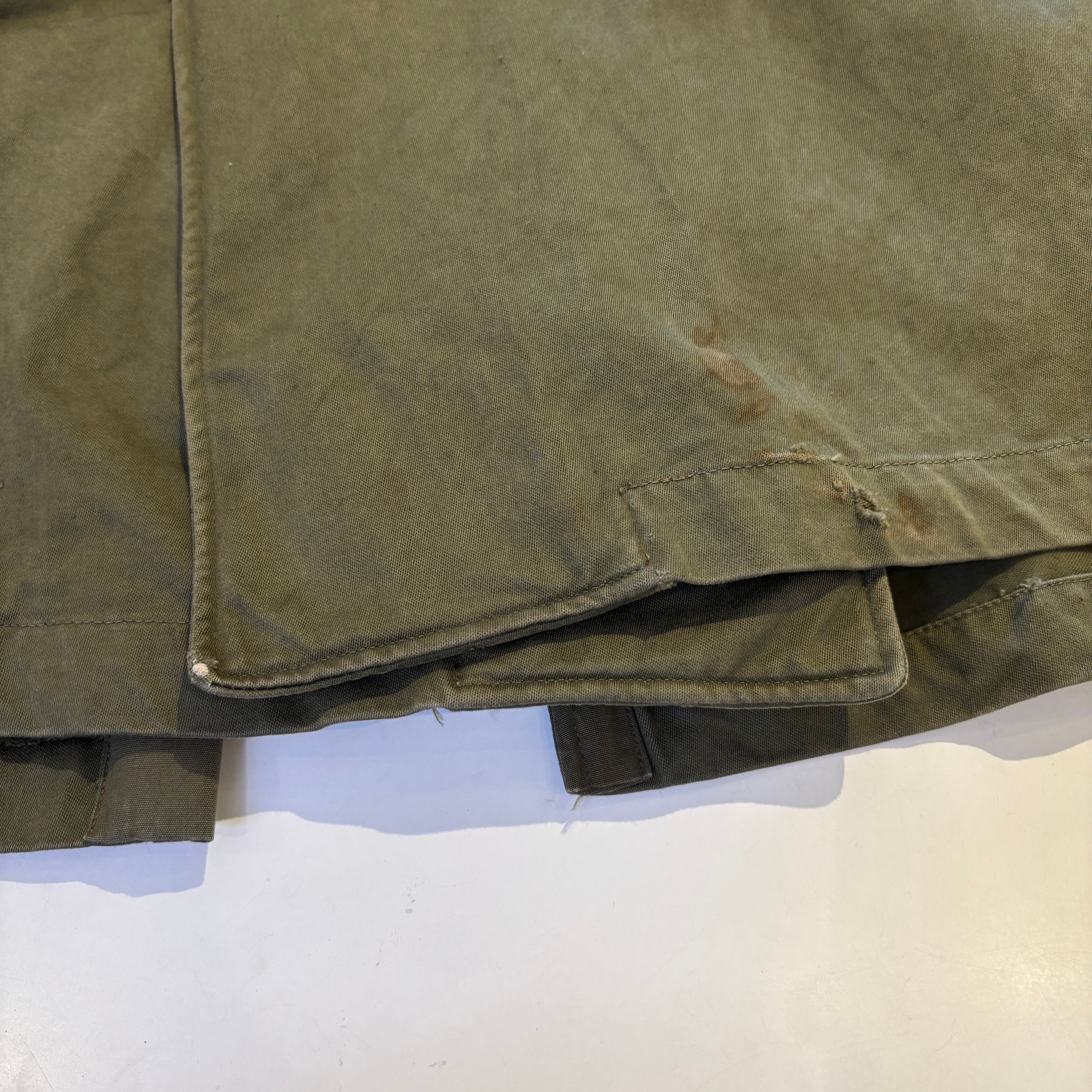 汚れやダメージ、スレ、ポケット部分に補修跡など年代相応の着用感ございますが、古着慣れされた方でしたら問題なく着用可能な状態です。