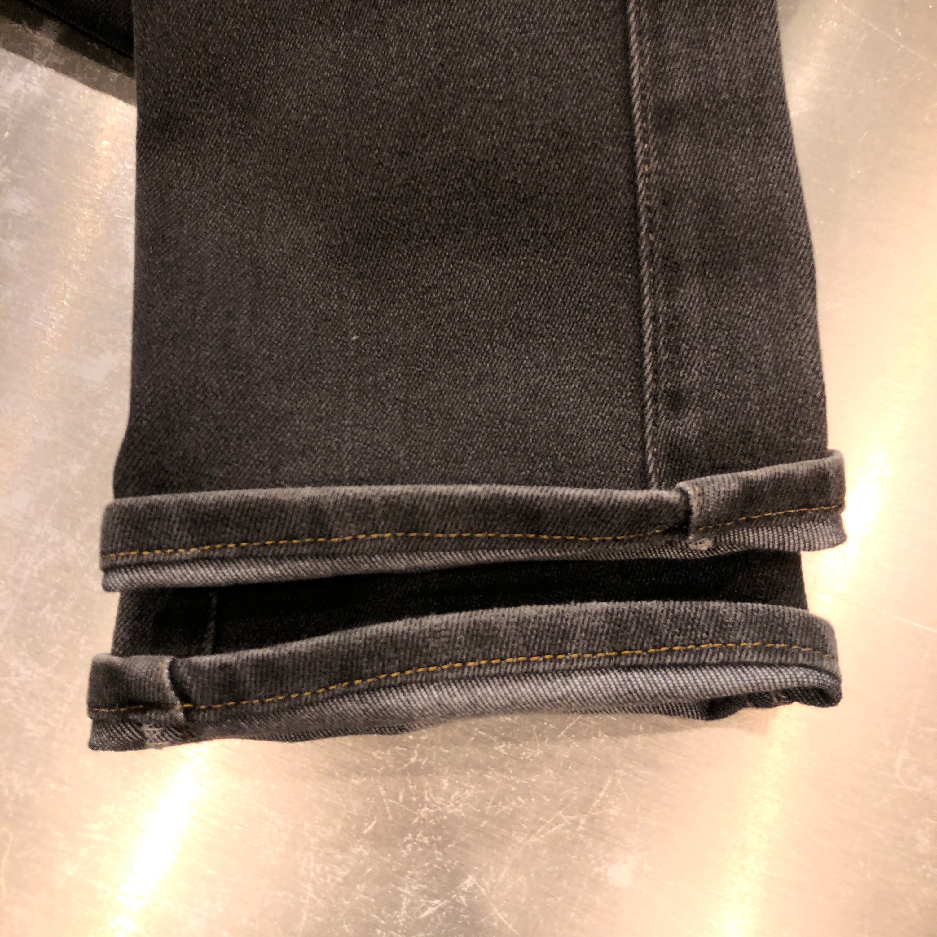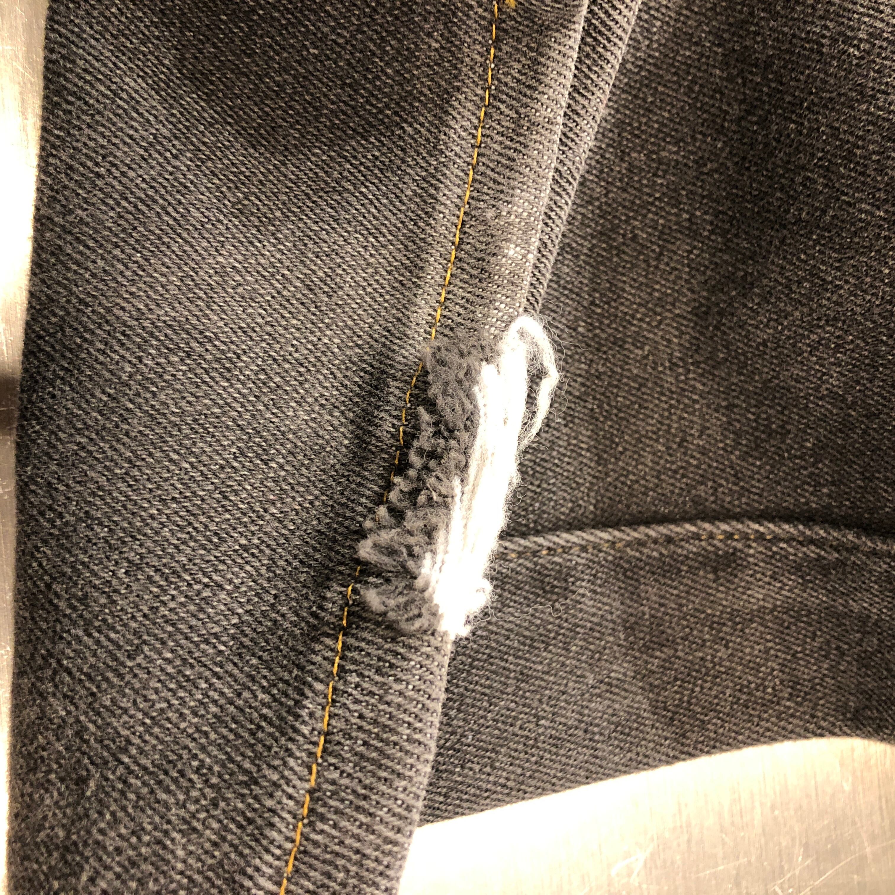 画像のように、全体的な色落ちや裾部分にダメージ等の着用感ございます。