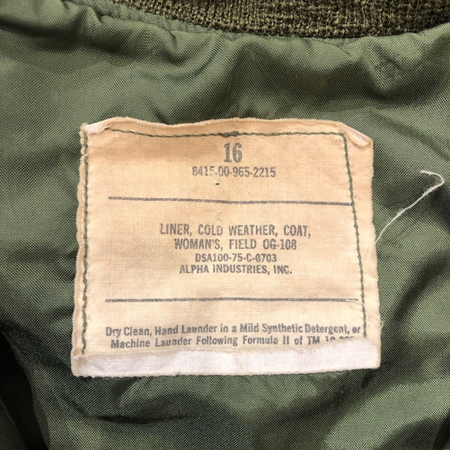 ⊕1970'S US ARMY WOOL LINER JACKET