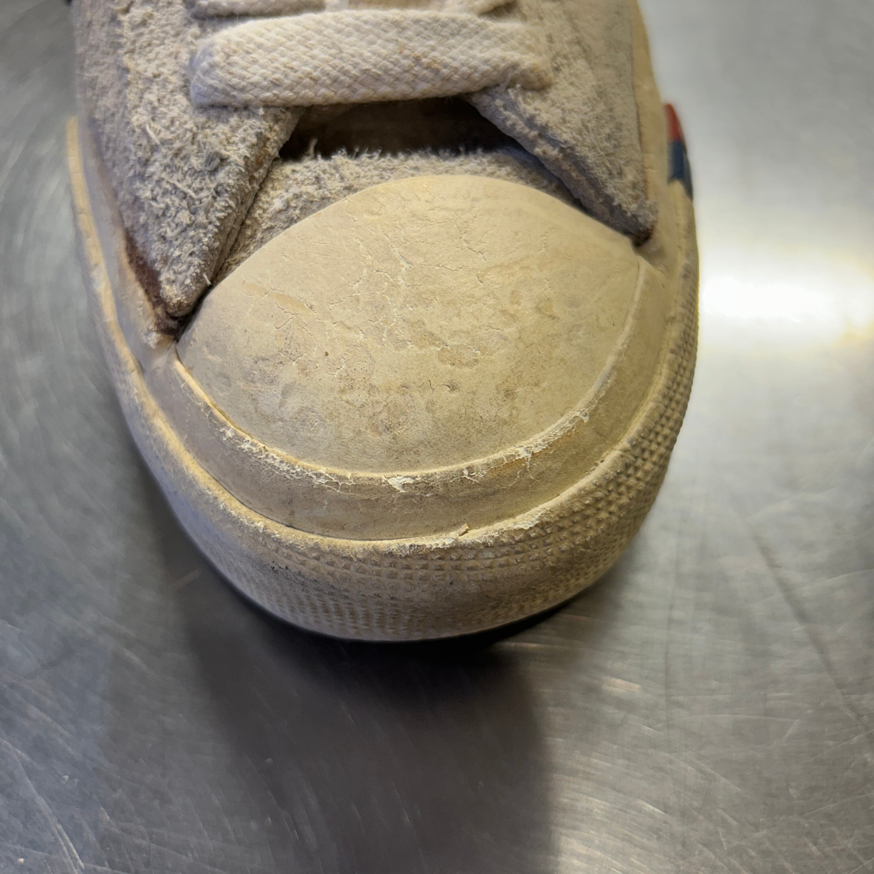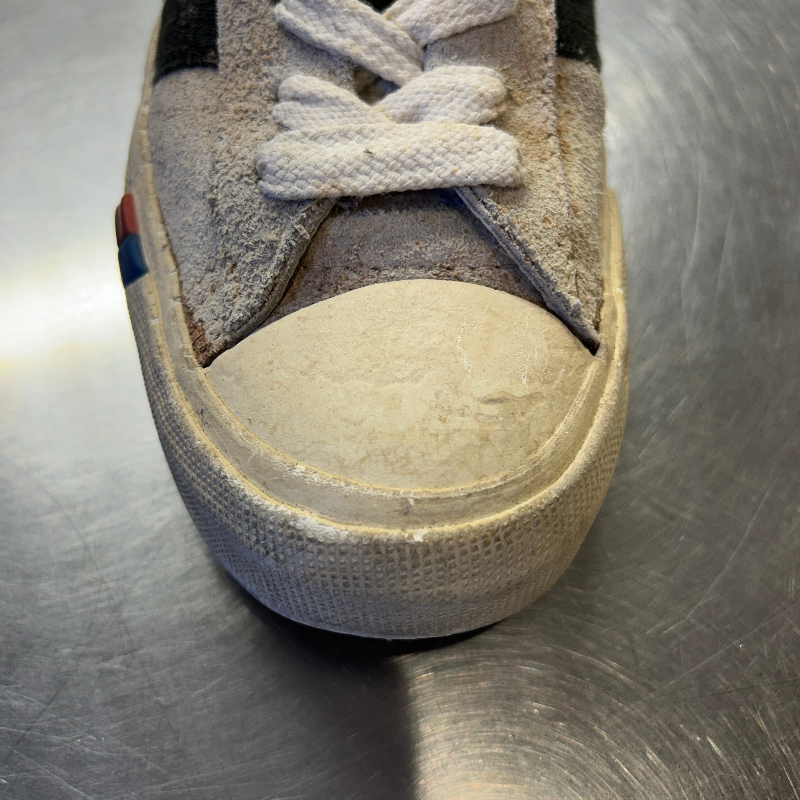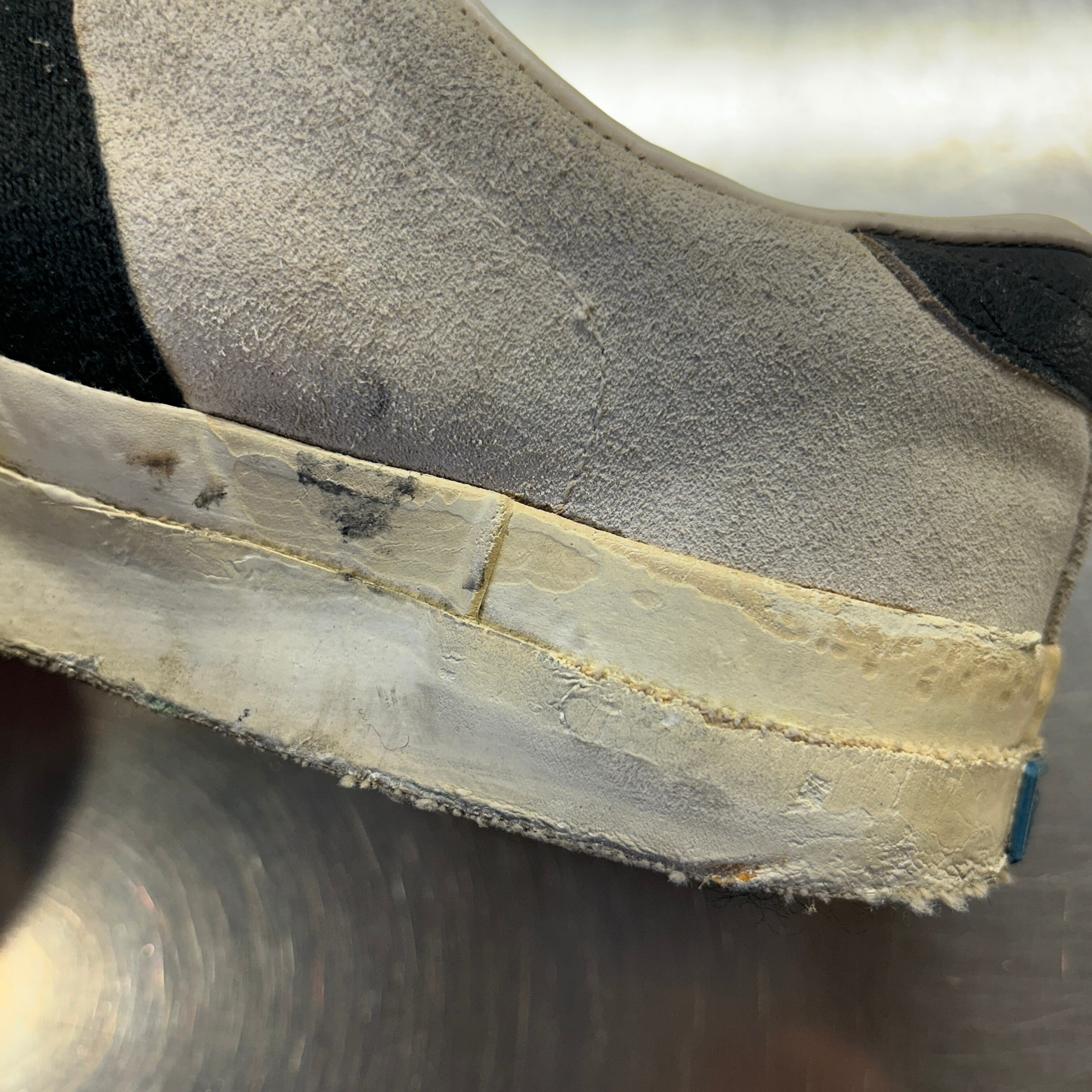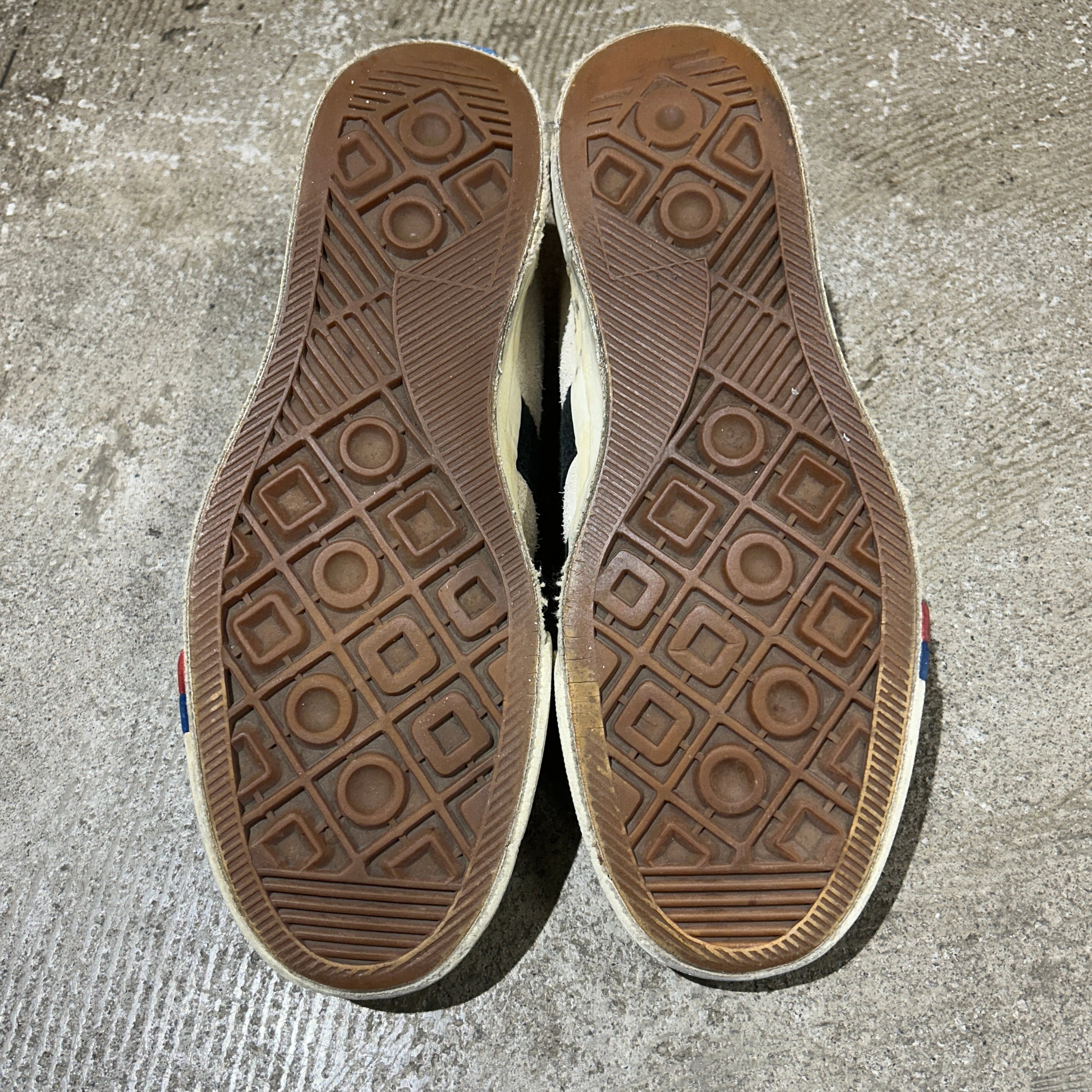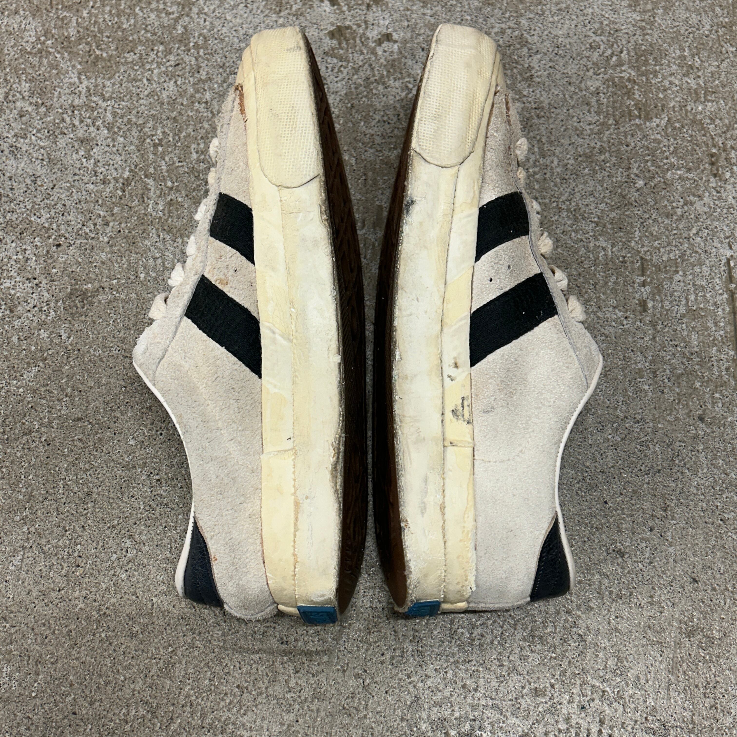 画像の様に汚れ、スレ、ゴムの劣化、ソールの擦り減り、履きシワ等の使用感がございます。古着慣れされた方でしたら、問題無く着用可能な状態です。