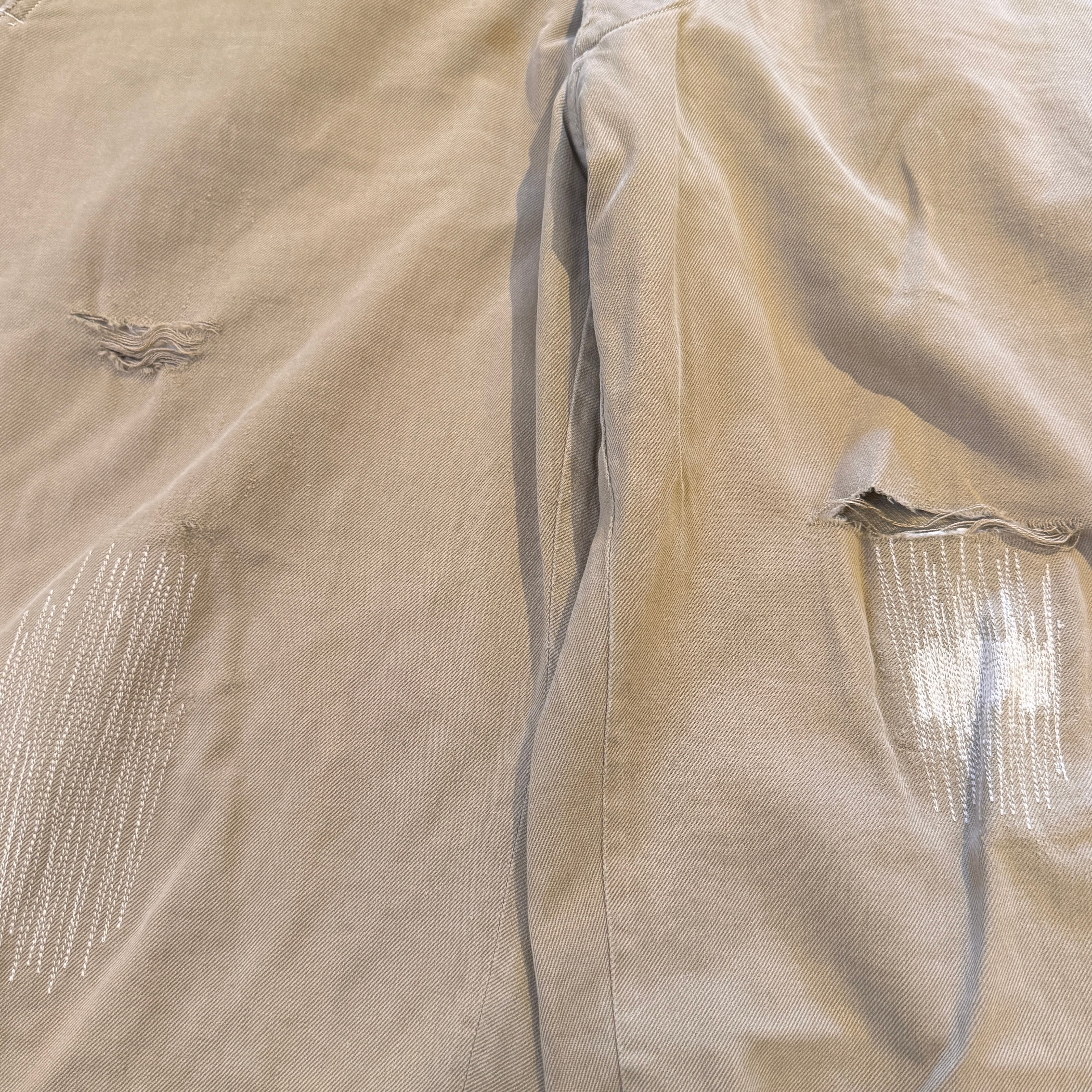 着用感や画像のような汚れやダメージ、ほつれ、リペア、ボタン交換がございます。