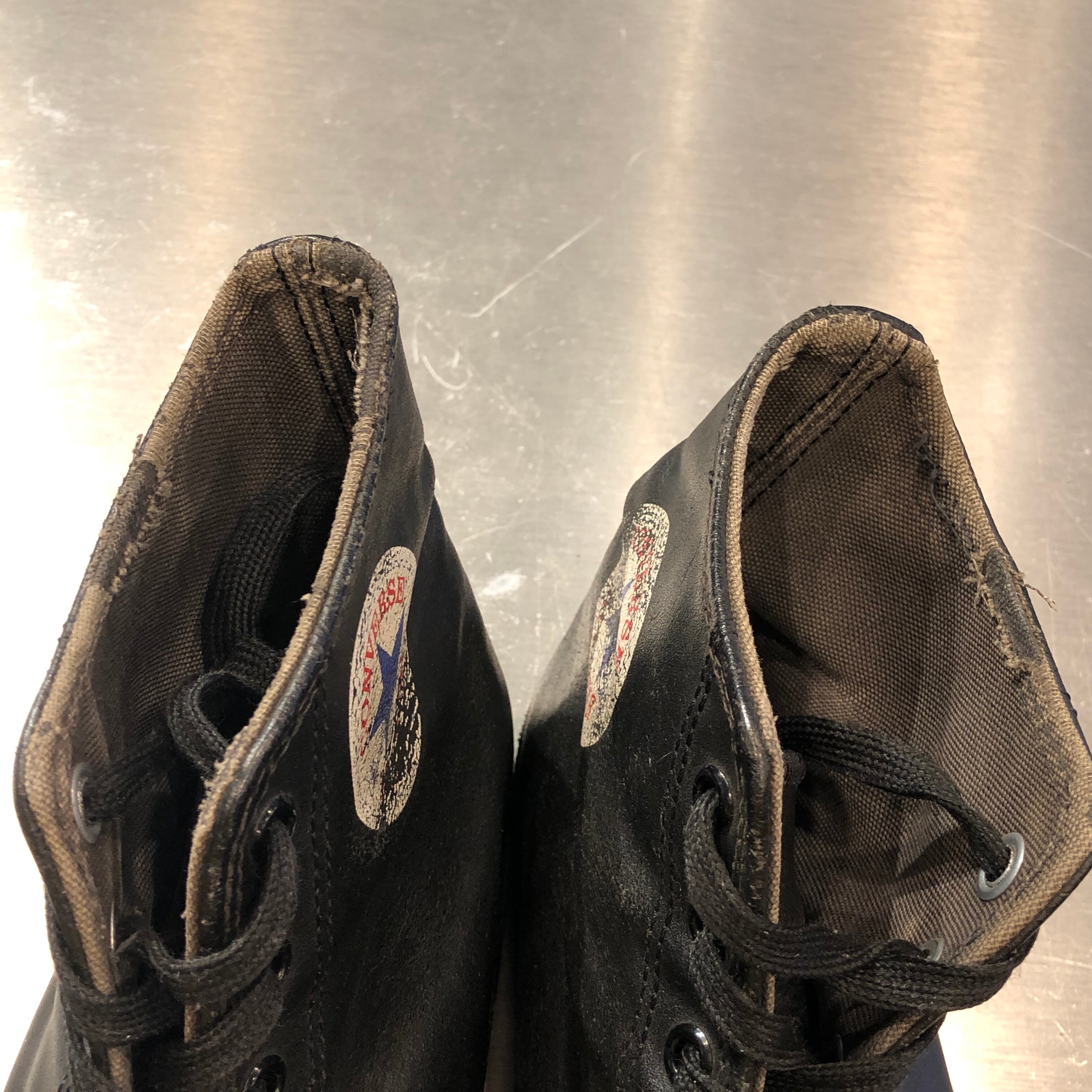 ⊕1980s CONVERSE ALL STAR HI LEATHER SNEAKER BLACK