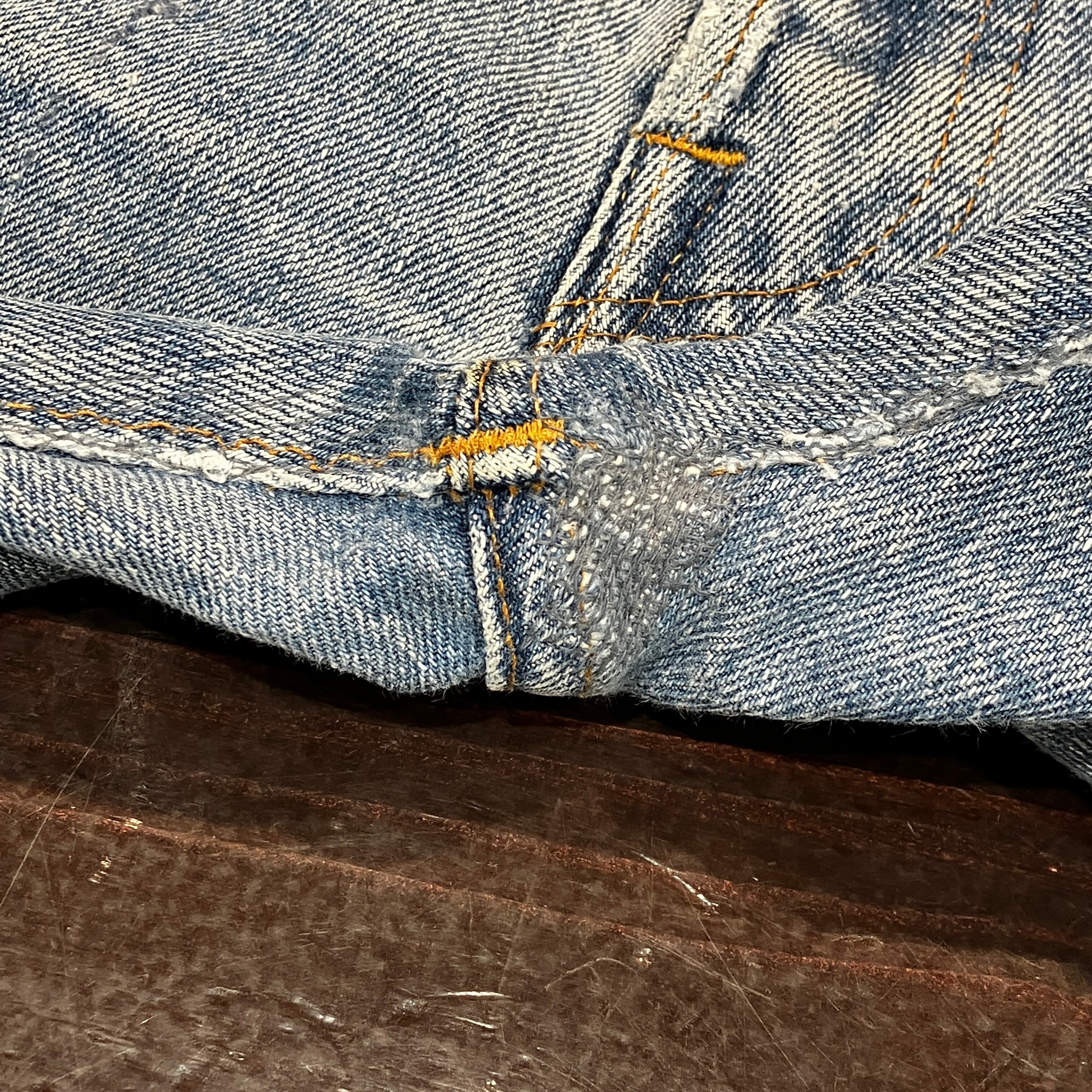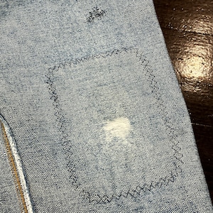 画像のように、膝と股付近にリペアがございます。