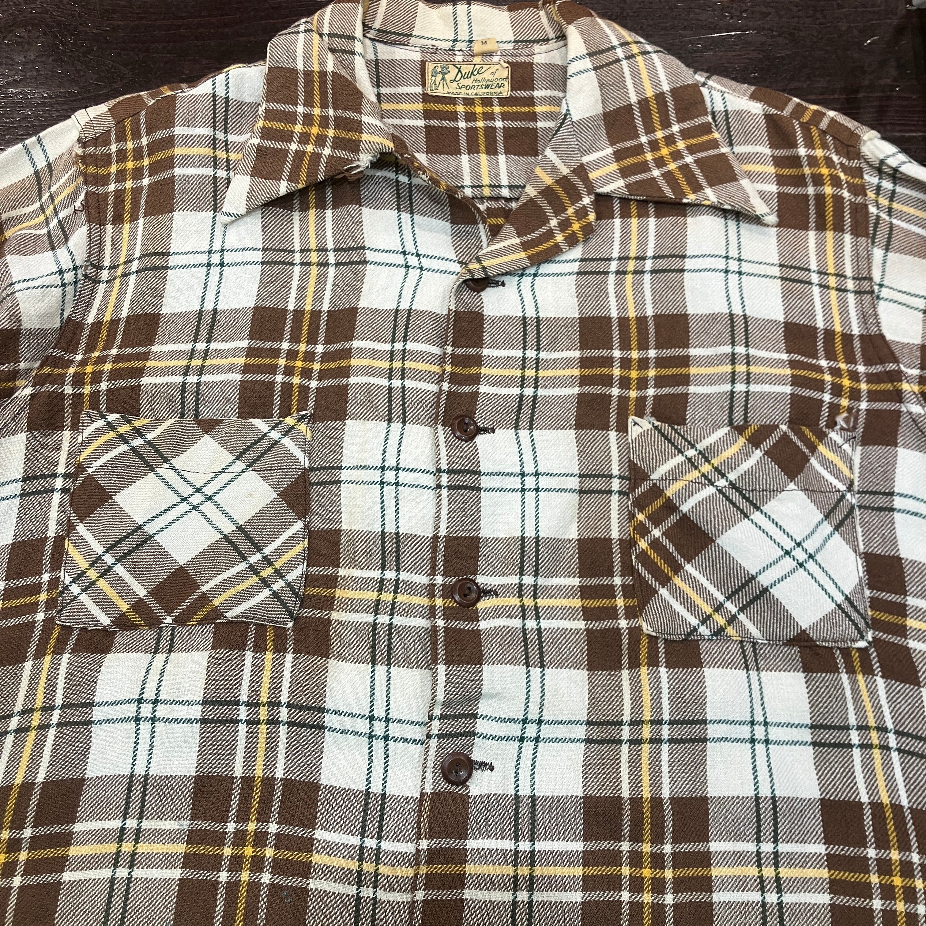 ①1940'S DUKE OF HOLLYWOOD WOOL CHECK SHIRT