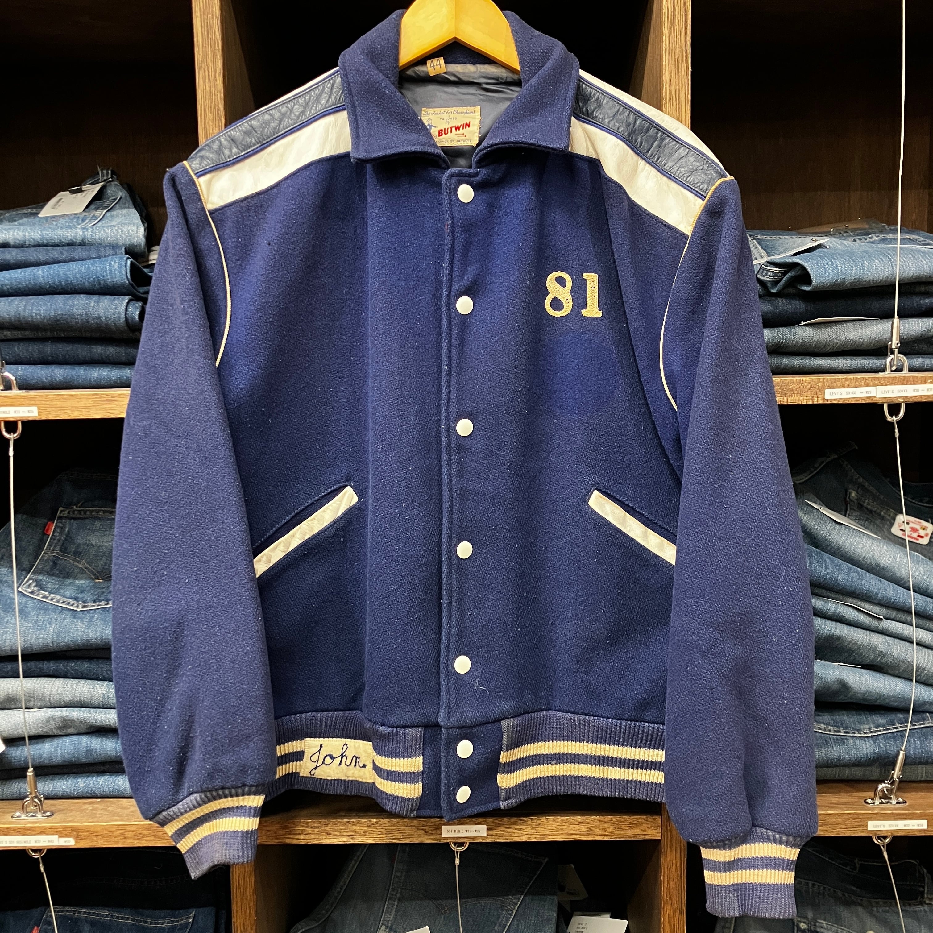 ①1960'S BUTWIN NAVY WOOL STADIUM JACKET