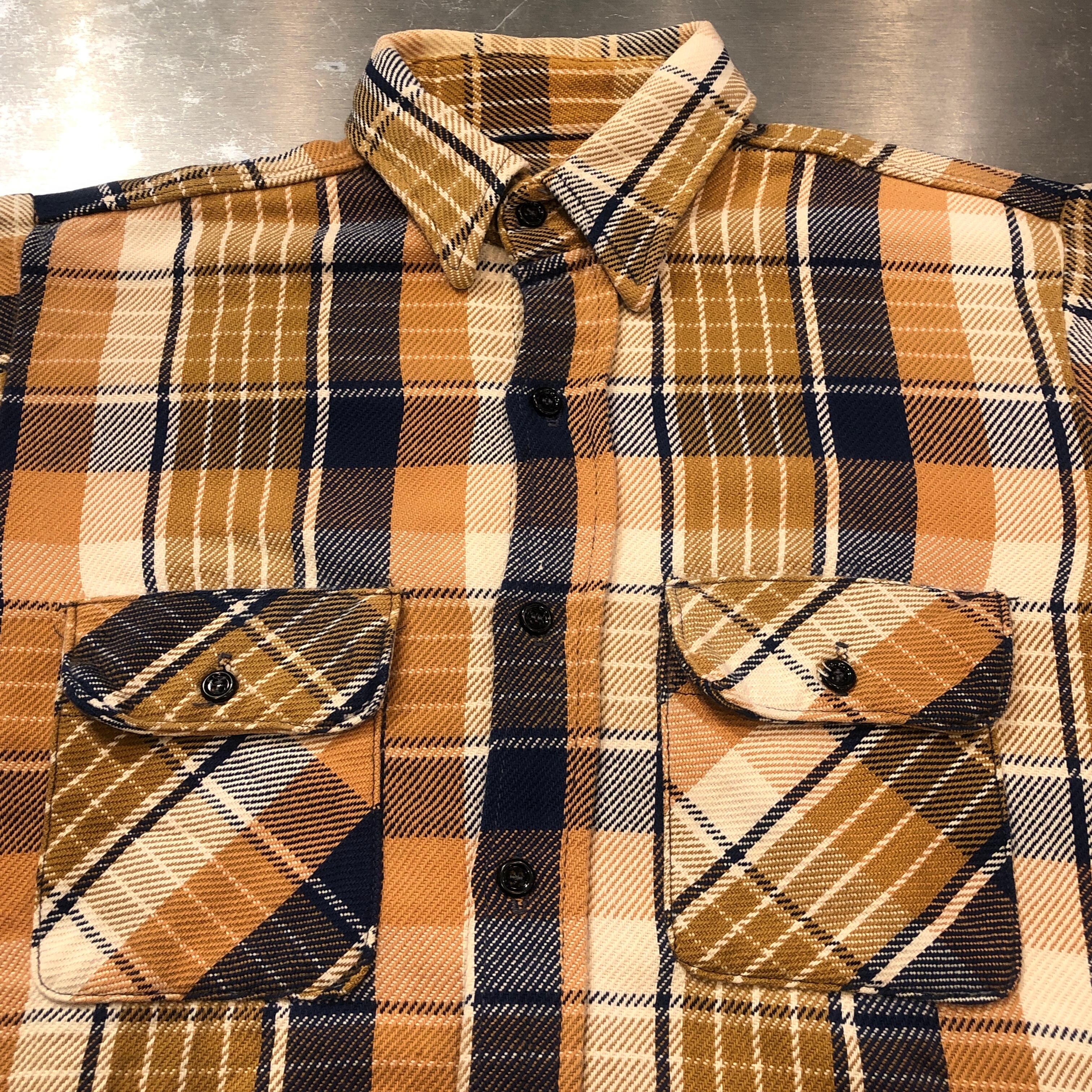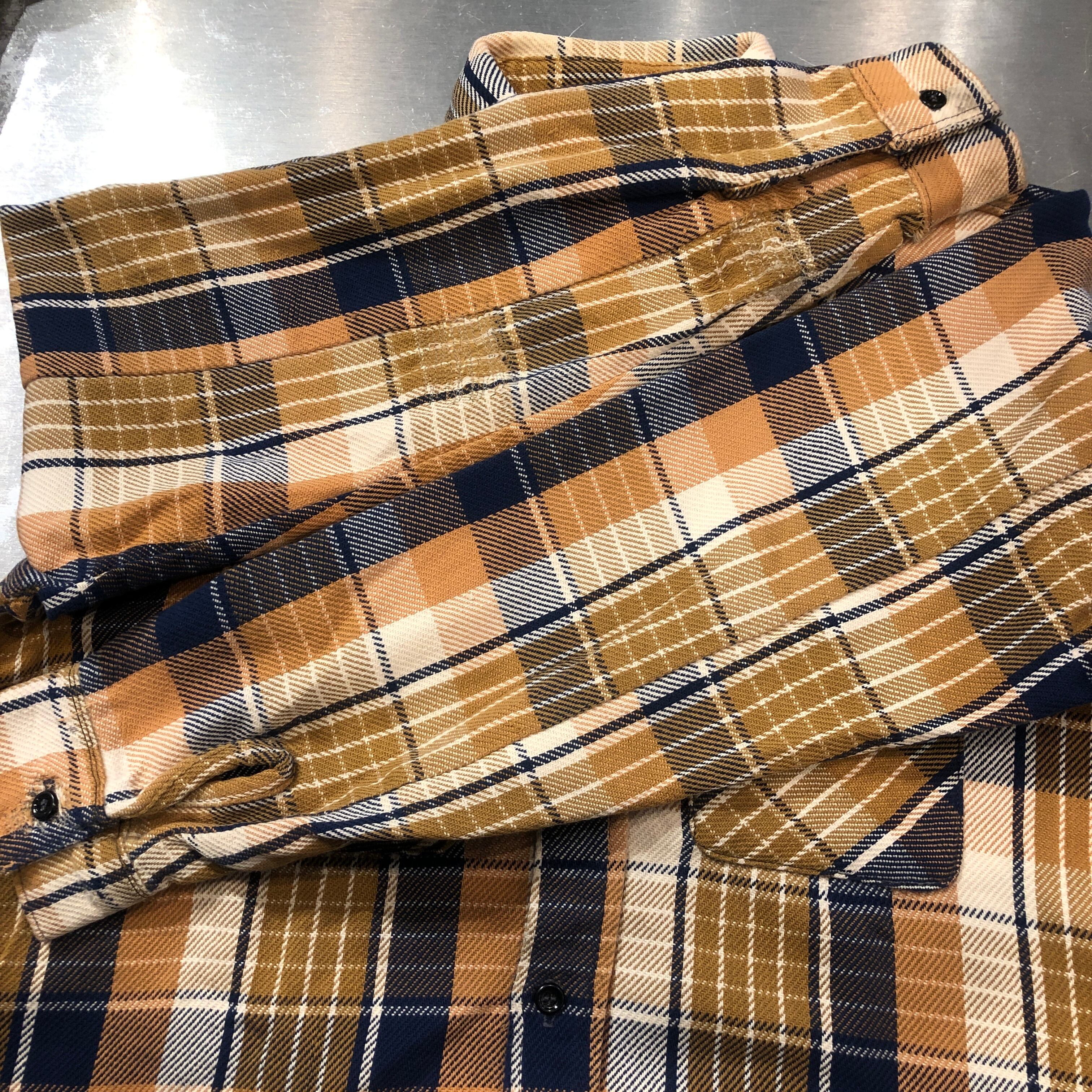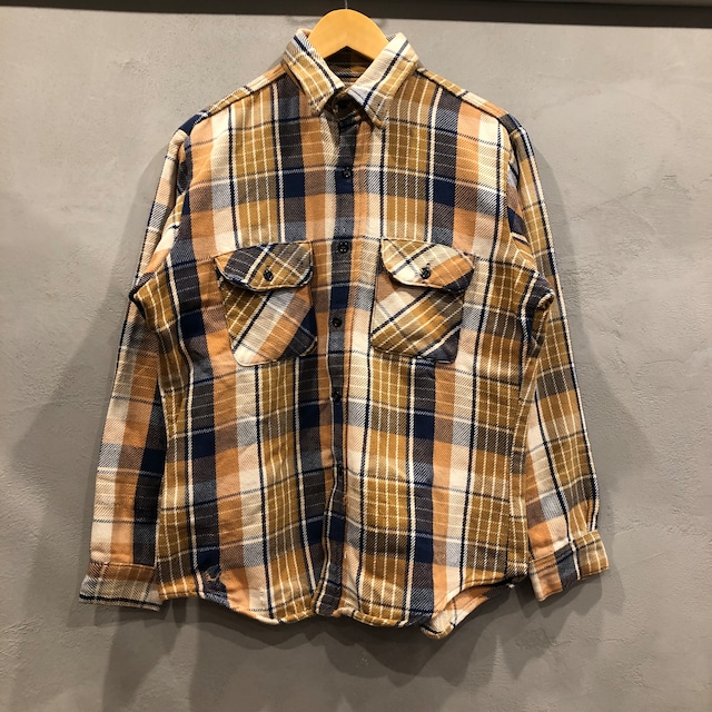 ⊕1970'S YELLOW HEAVY FLANNEL CHECK SHIRT