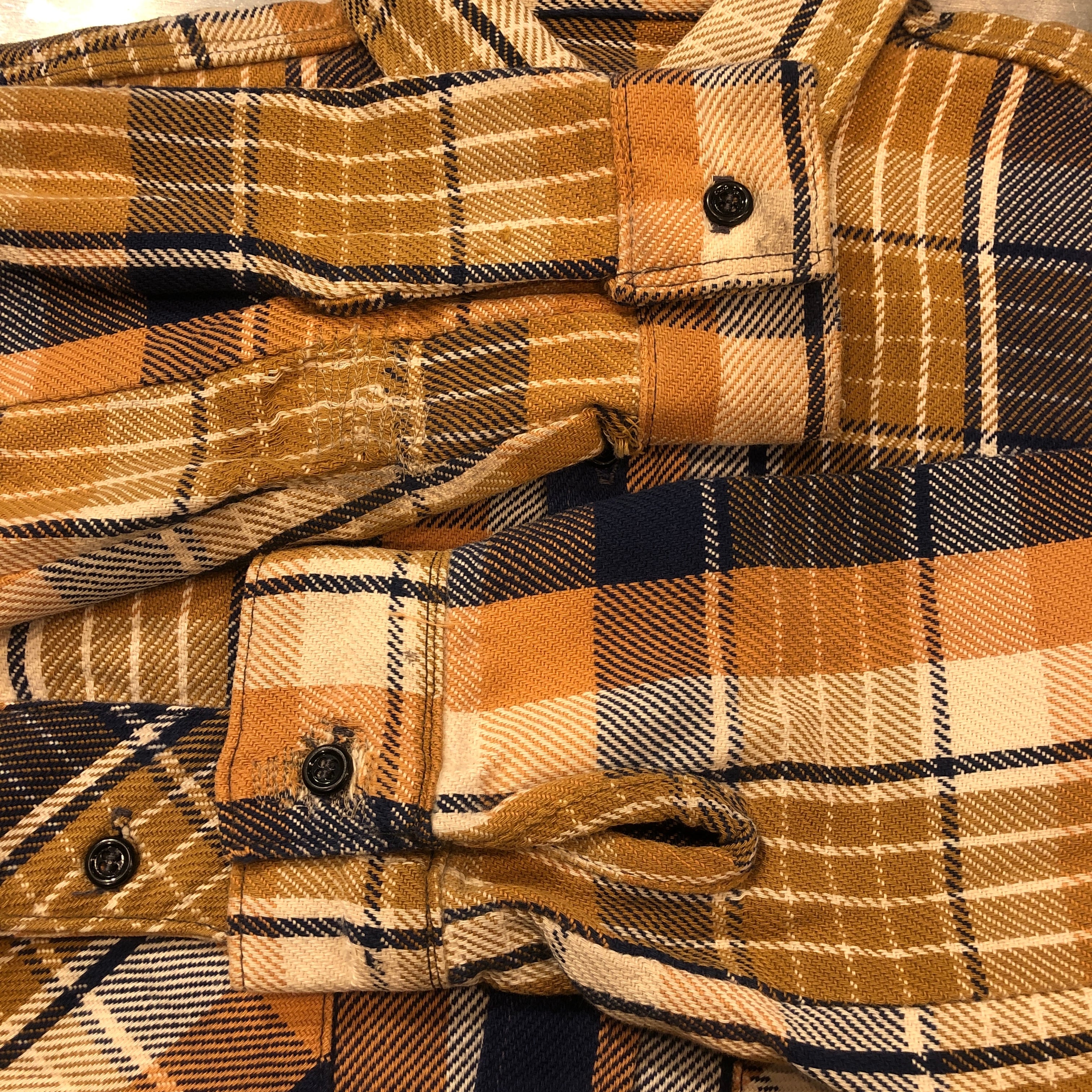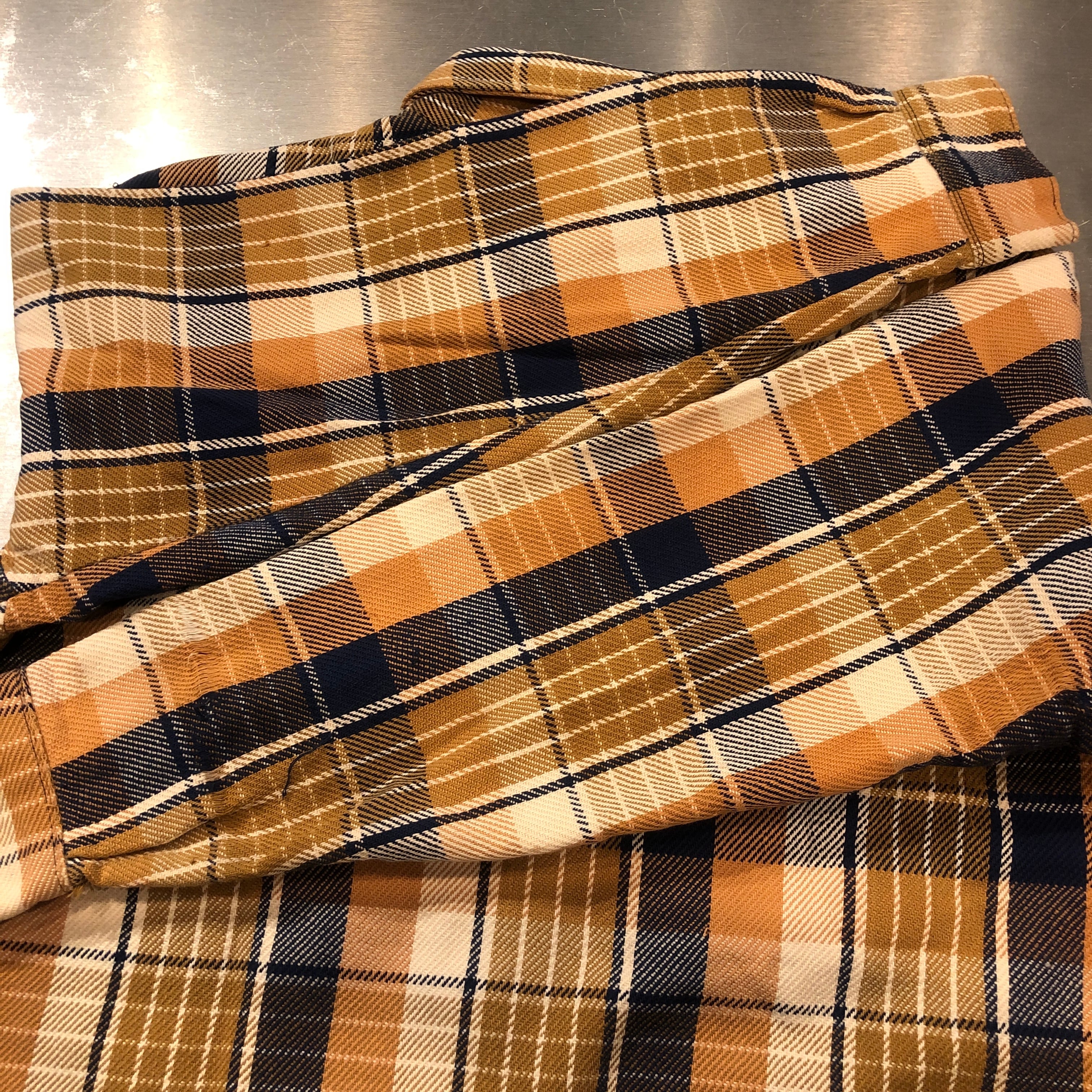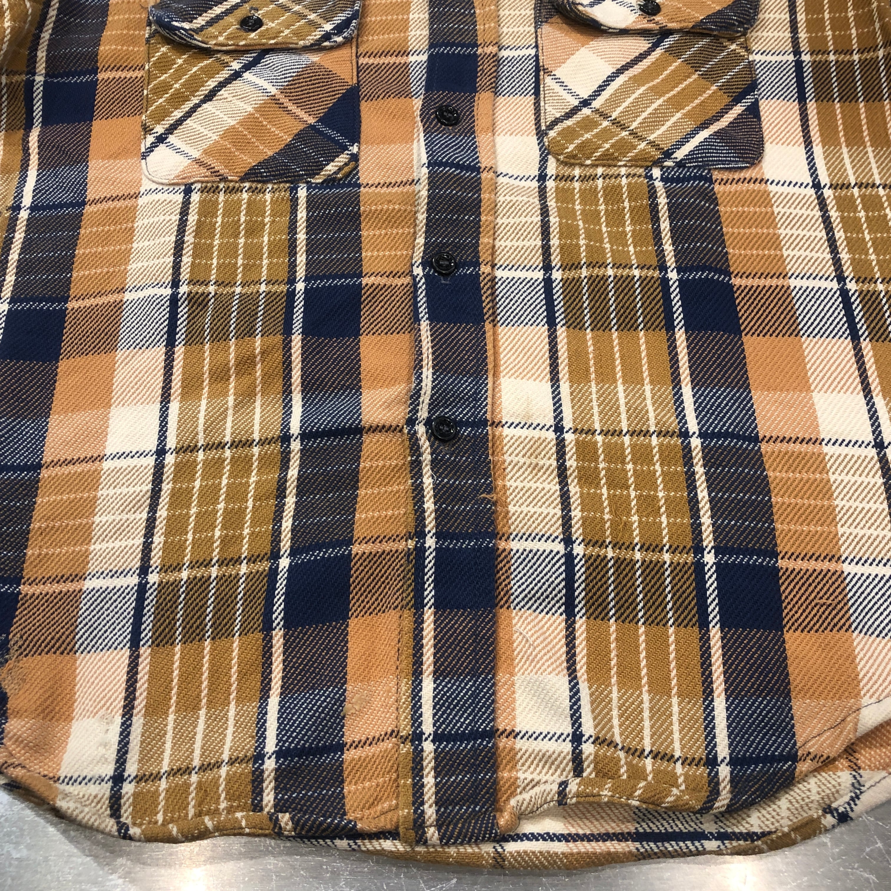⊕1970'S YELLOW HEAVY FLANNEL CHECK SHIRT