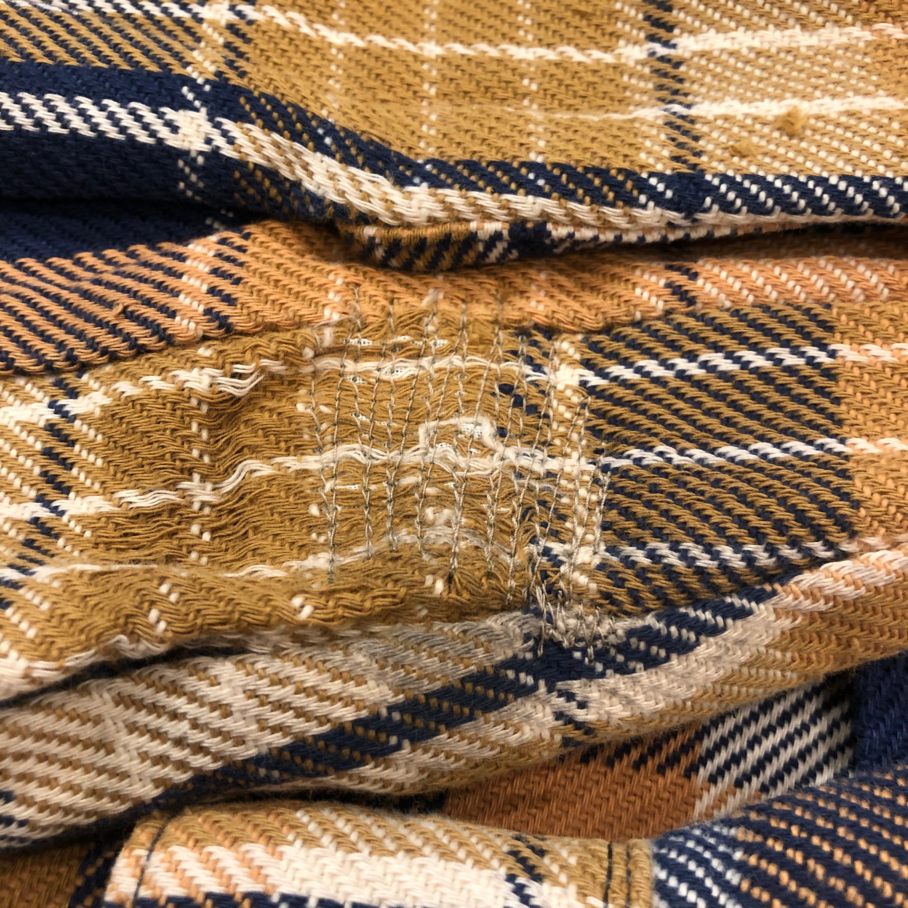 画像のように、汚れやほつれ、ダメージ、リペア跡等の着用感がございます。