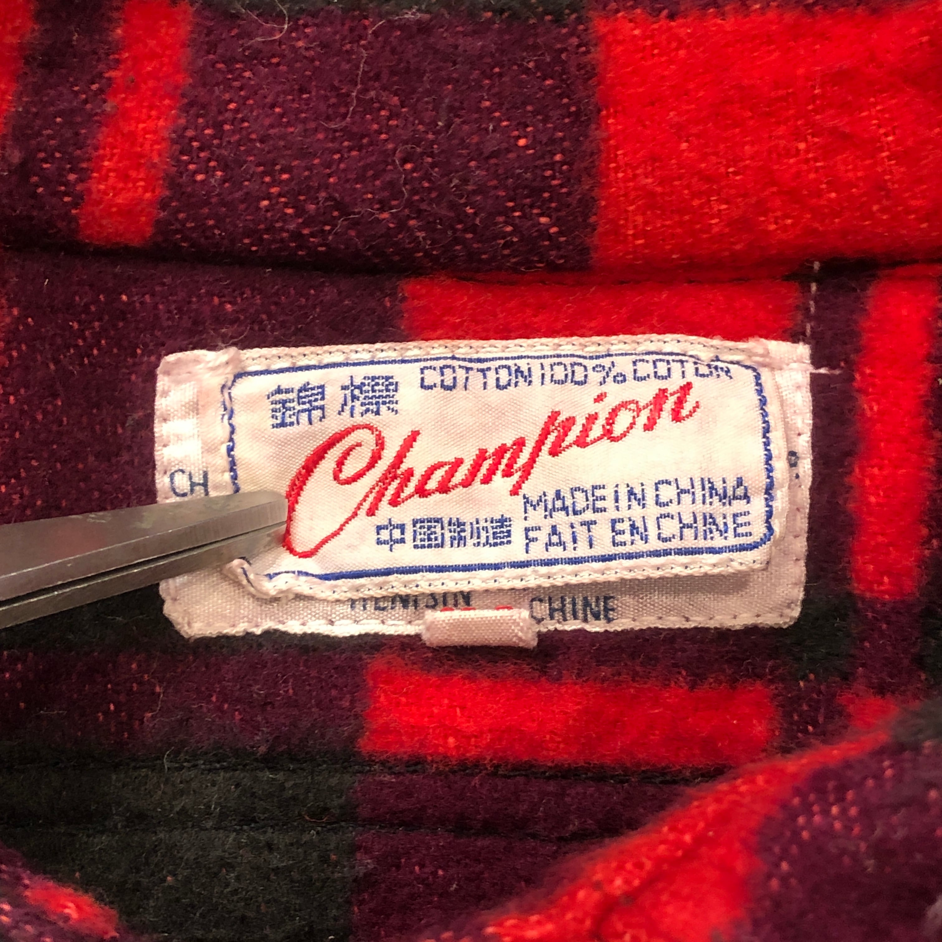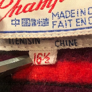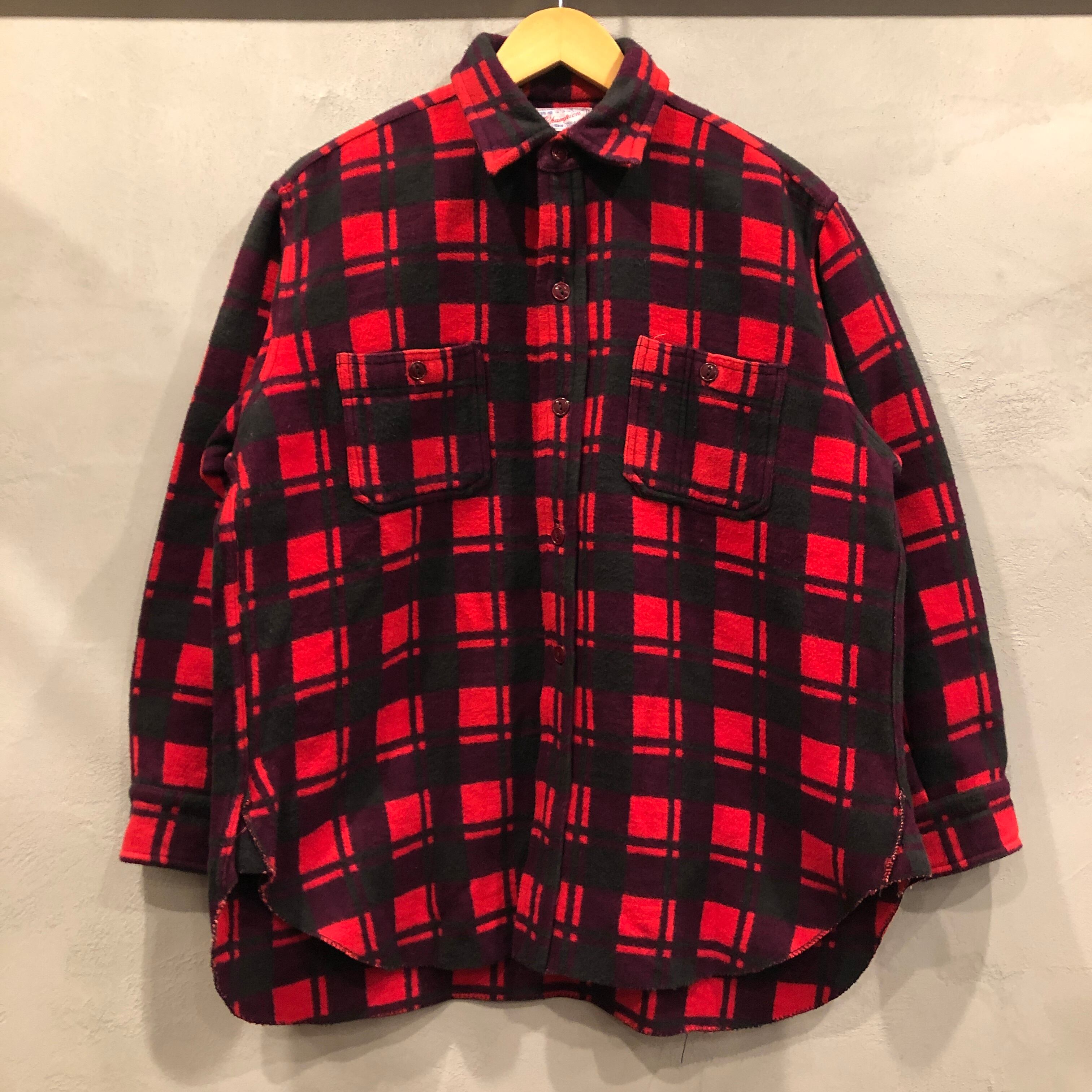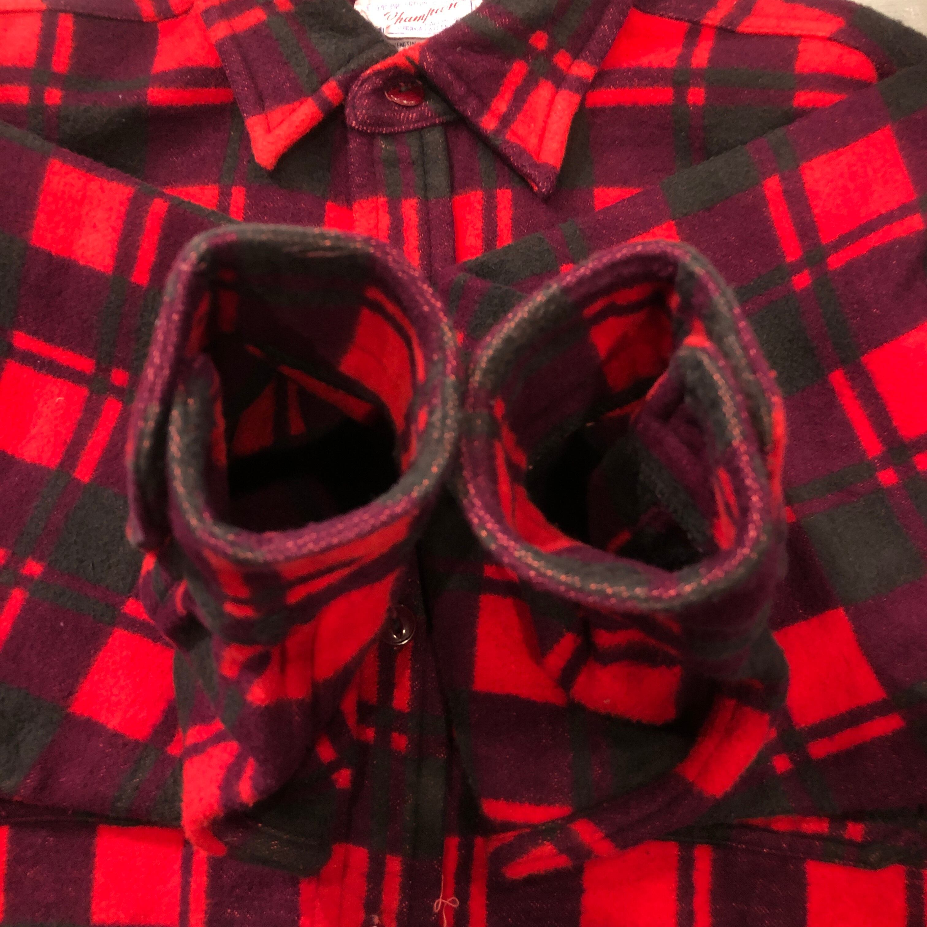 ⊕1970'S CHAMPION RED COTTON CHECK SHIRT