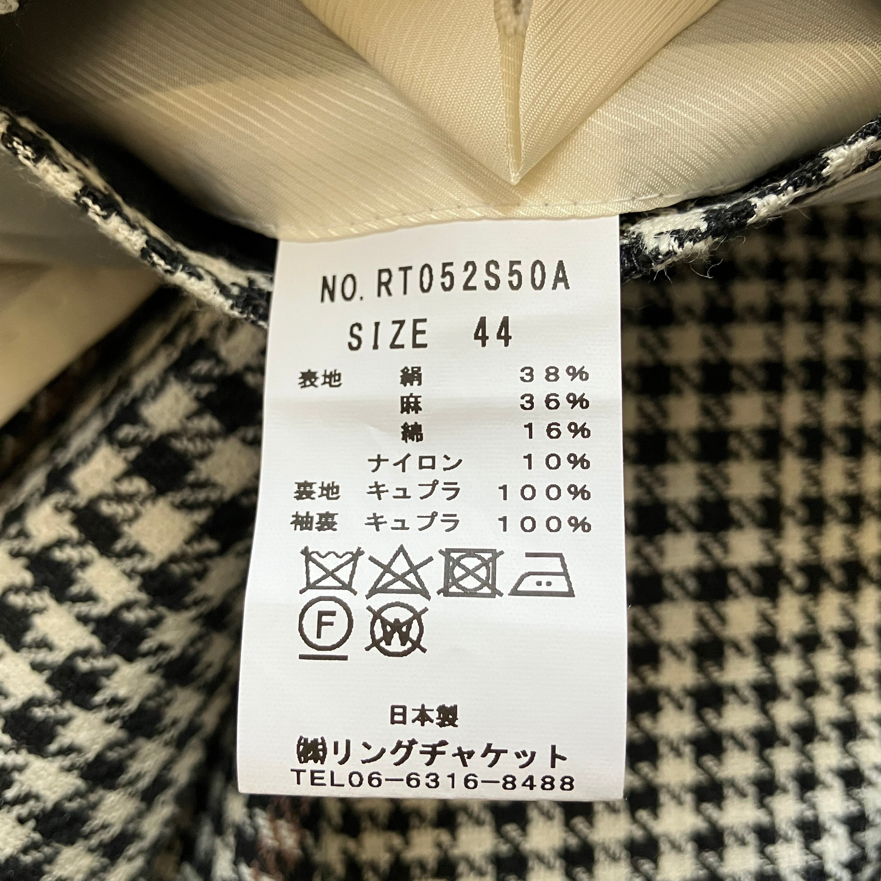 RING JACKET MEISTER SILK / LINEN / COTTON / NYLON HOUNDSTOOTH JACKET《44》