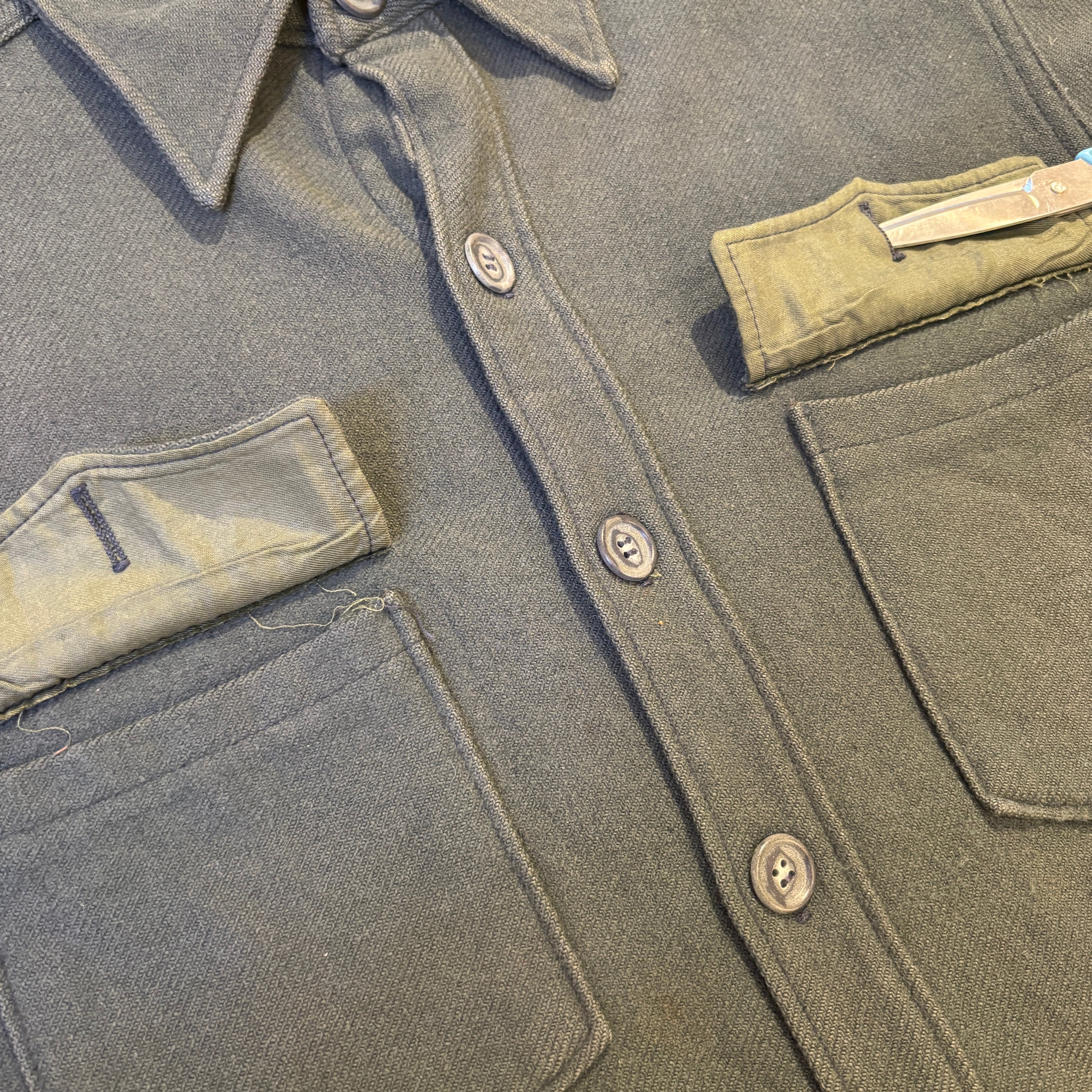 汚れ、ポケットボタン欠損、スレなど着用感ございますが、問題なく着用可能な状態です。