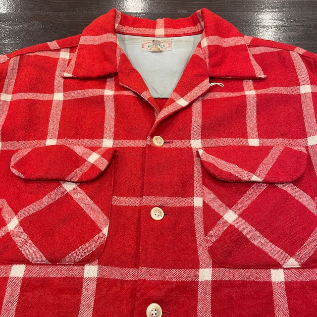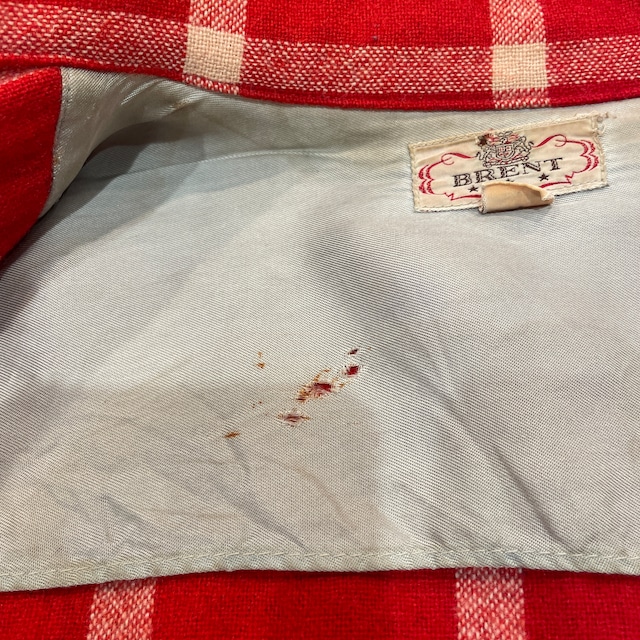 ①1950'S BRENT WOOL CHECK SHIRT RED