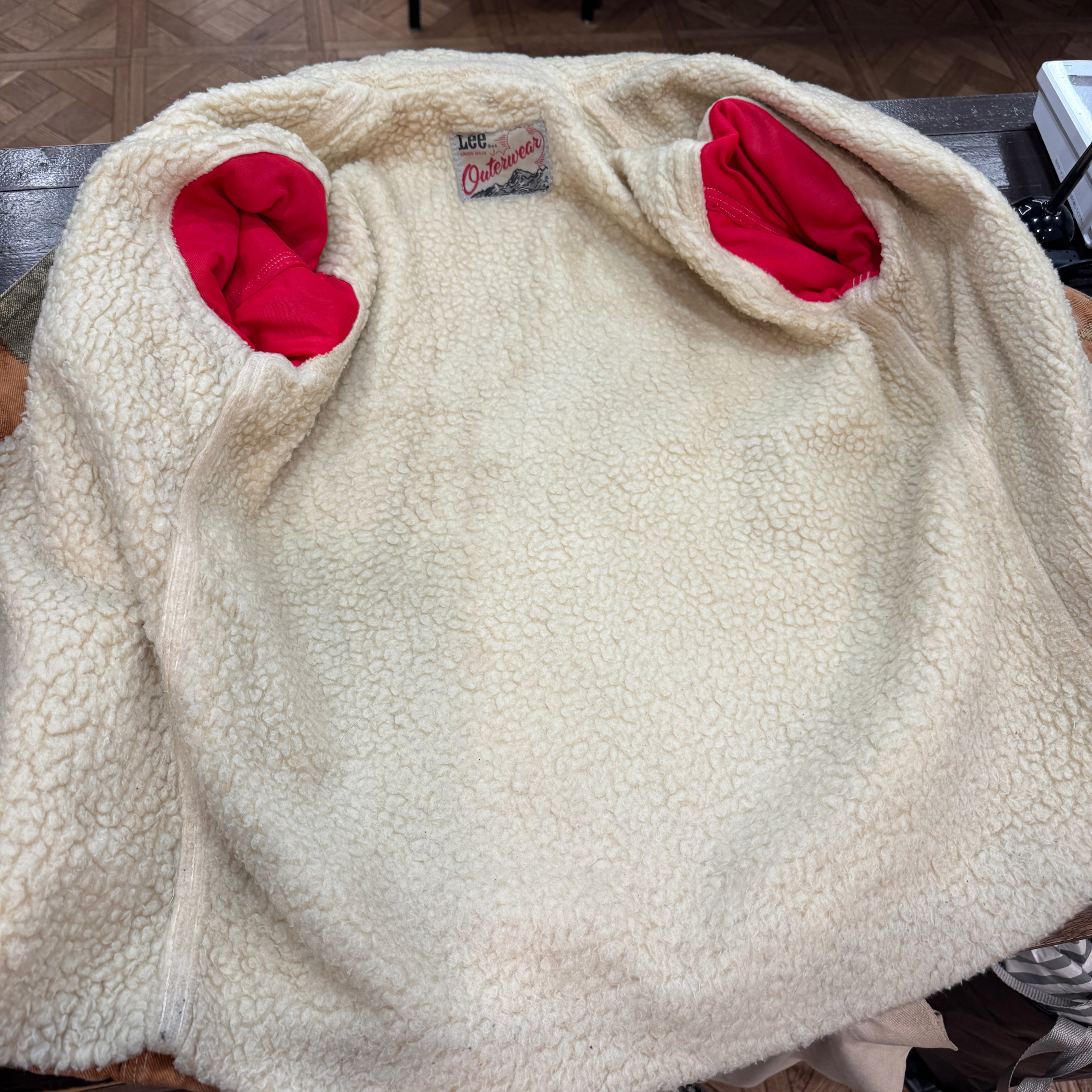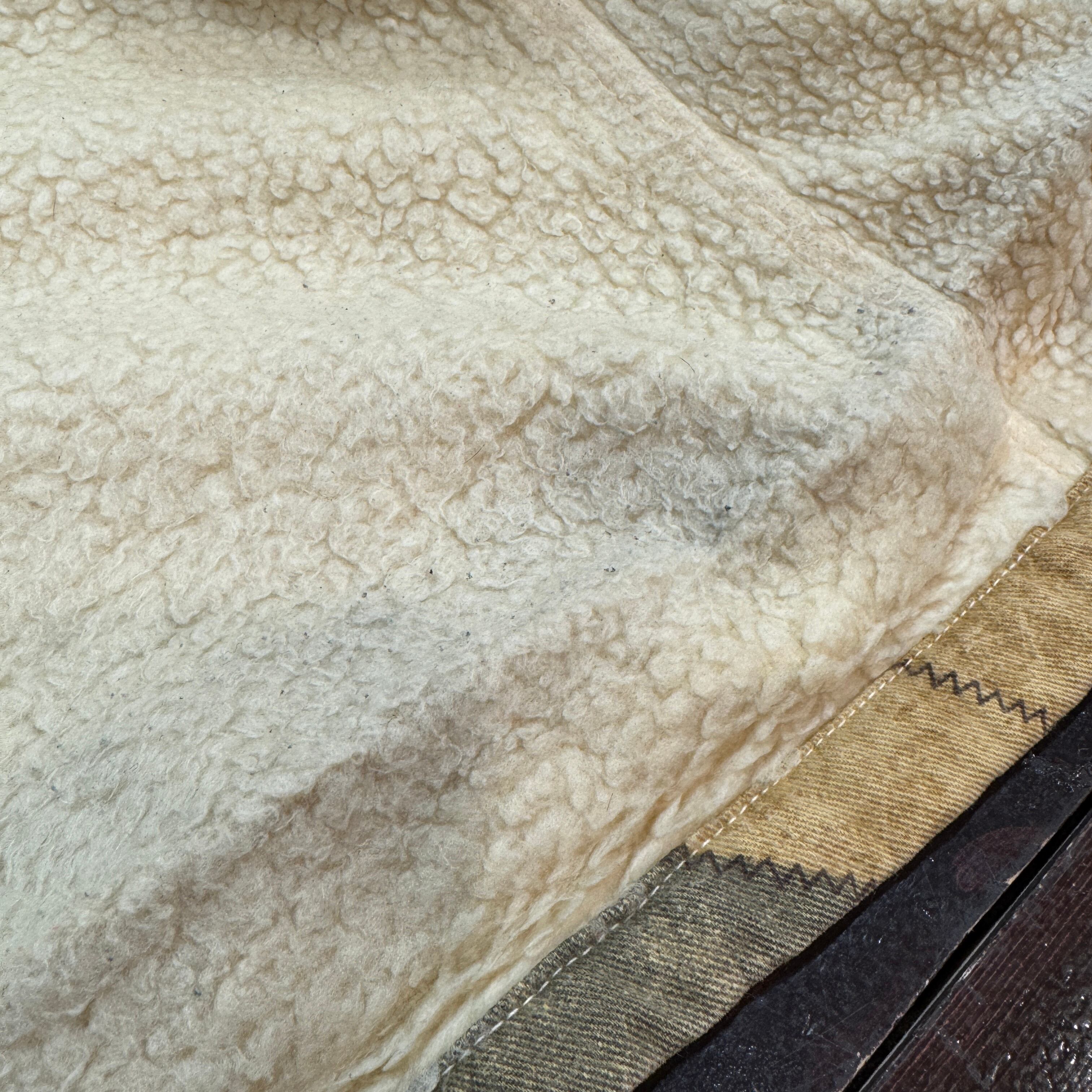 画像のように、年代相応の着用感、ボアつぶれ、薄い汚れ、袖傷ありますが、その他ダメージ等はなくヴィンテージ慣れされた方でしたらまだまだ着用可能な状態です。