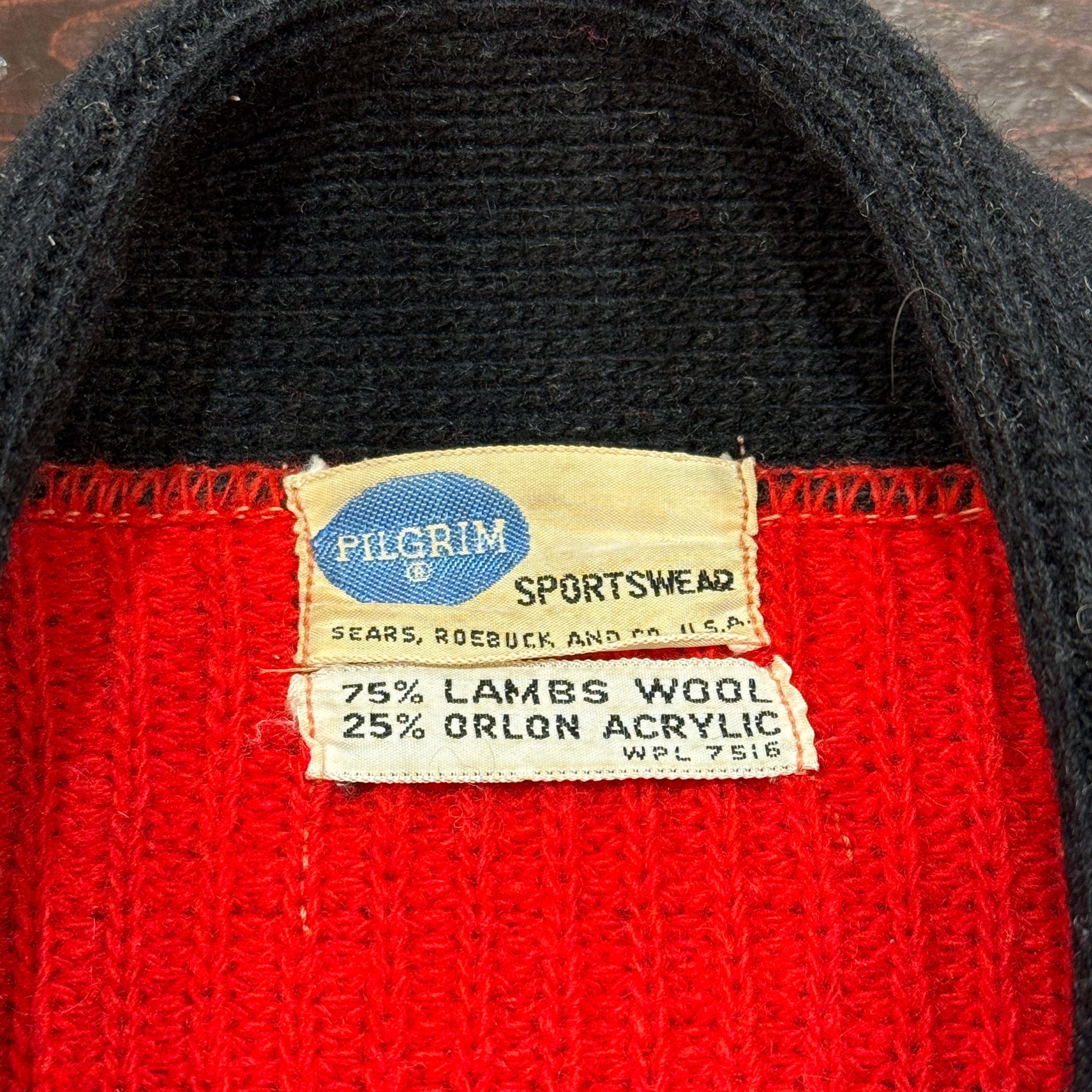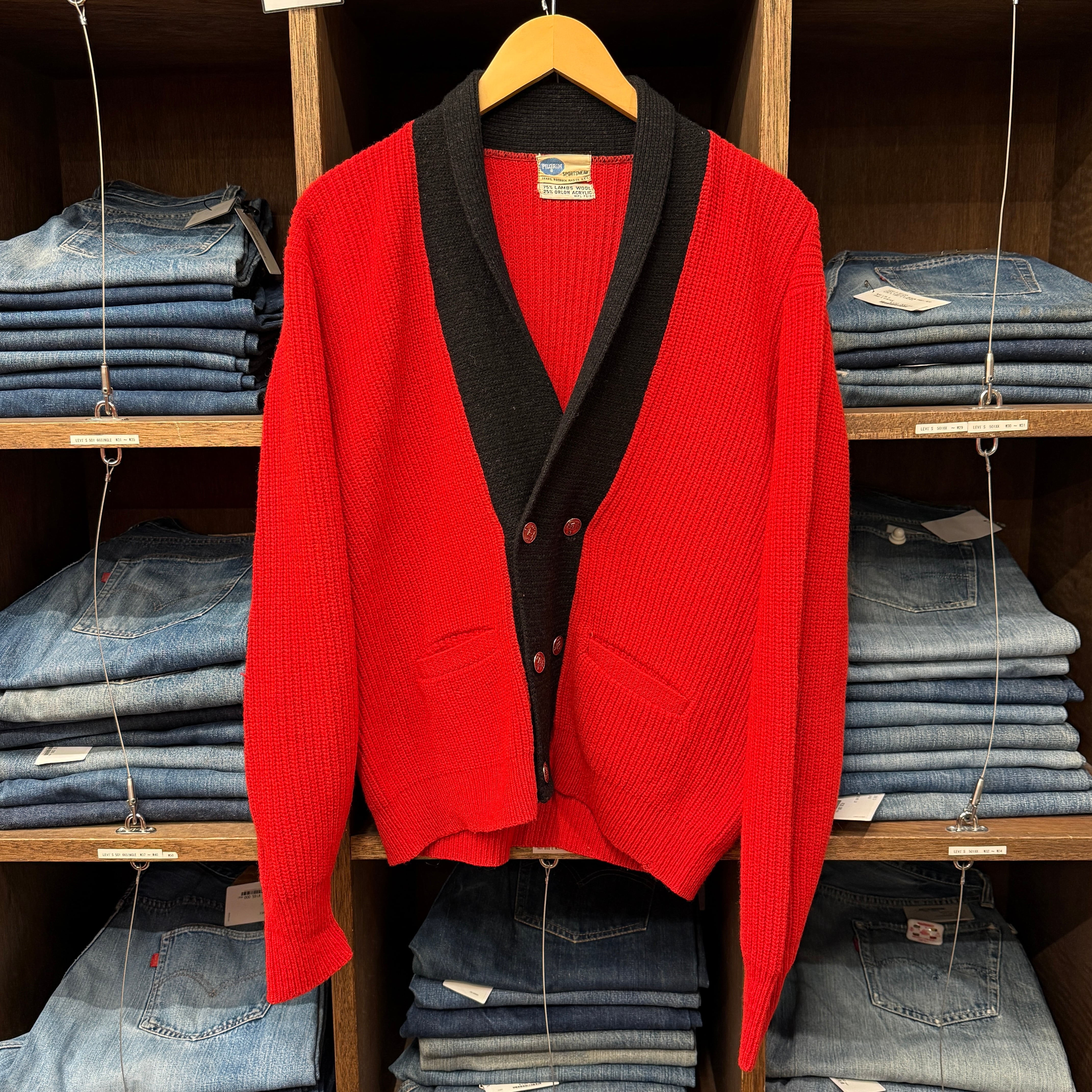 PILGRIM WOOL CARDIGAN RED/BLACK 60'S VINTAGE