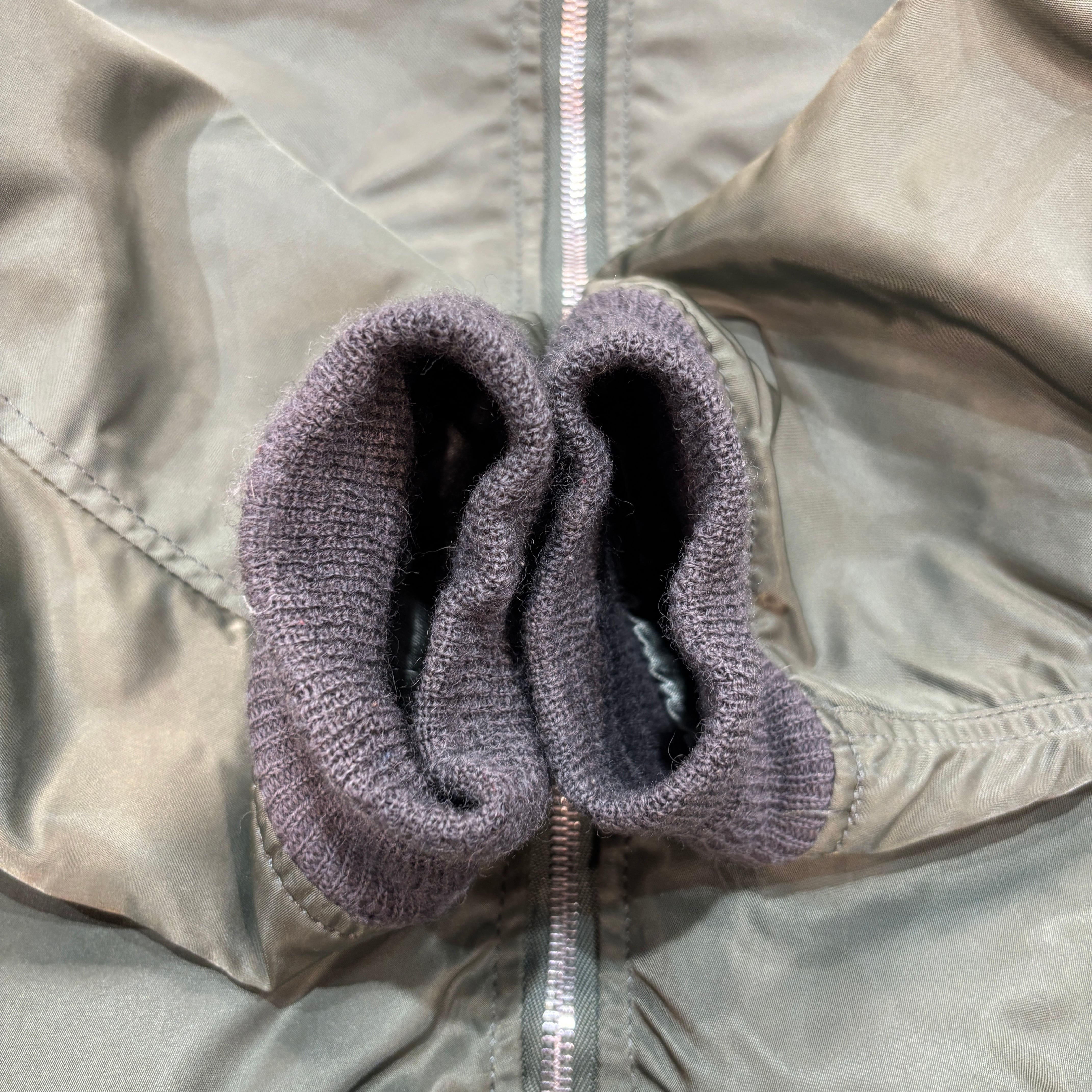 年代相応の着用感、部分的にシミ、リブに小穴、毛玉等ございますが、ヴィンテージ慣れされた方でしたら問題無くご着用いただけます。