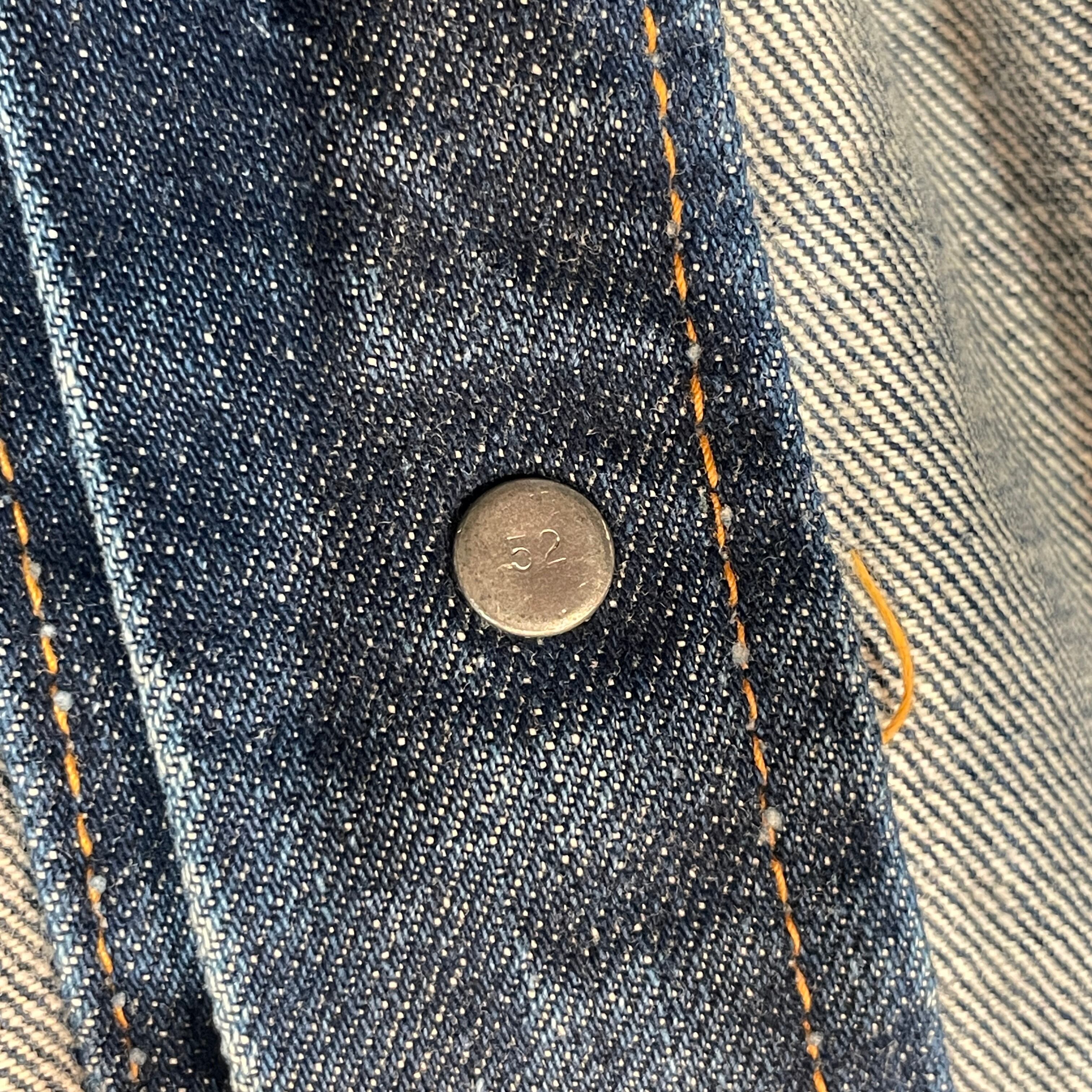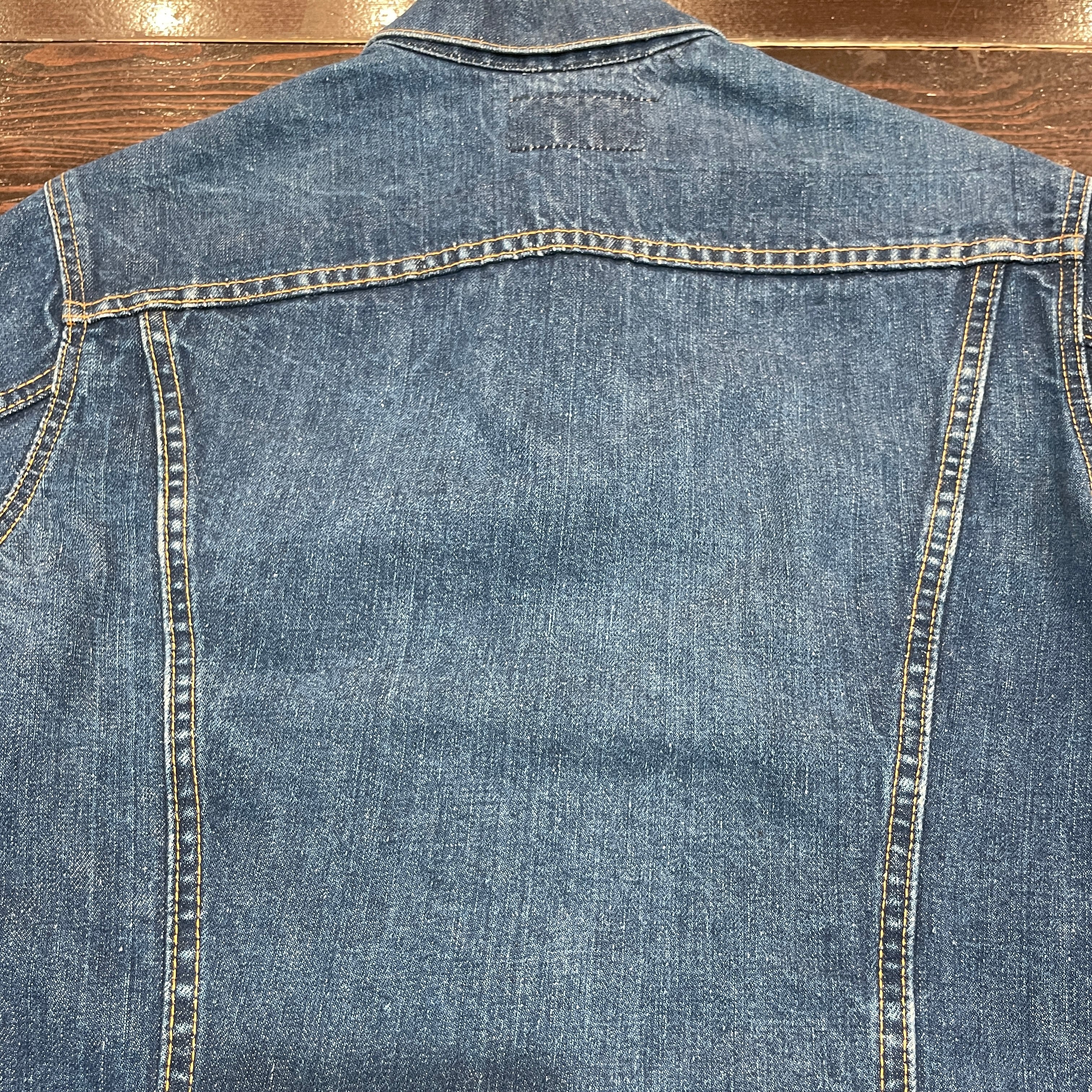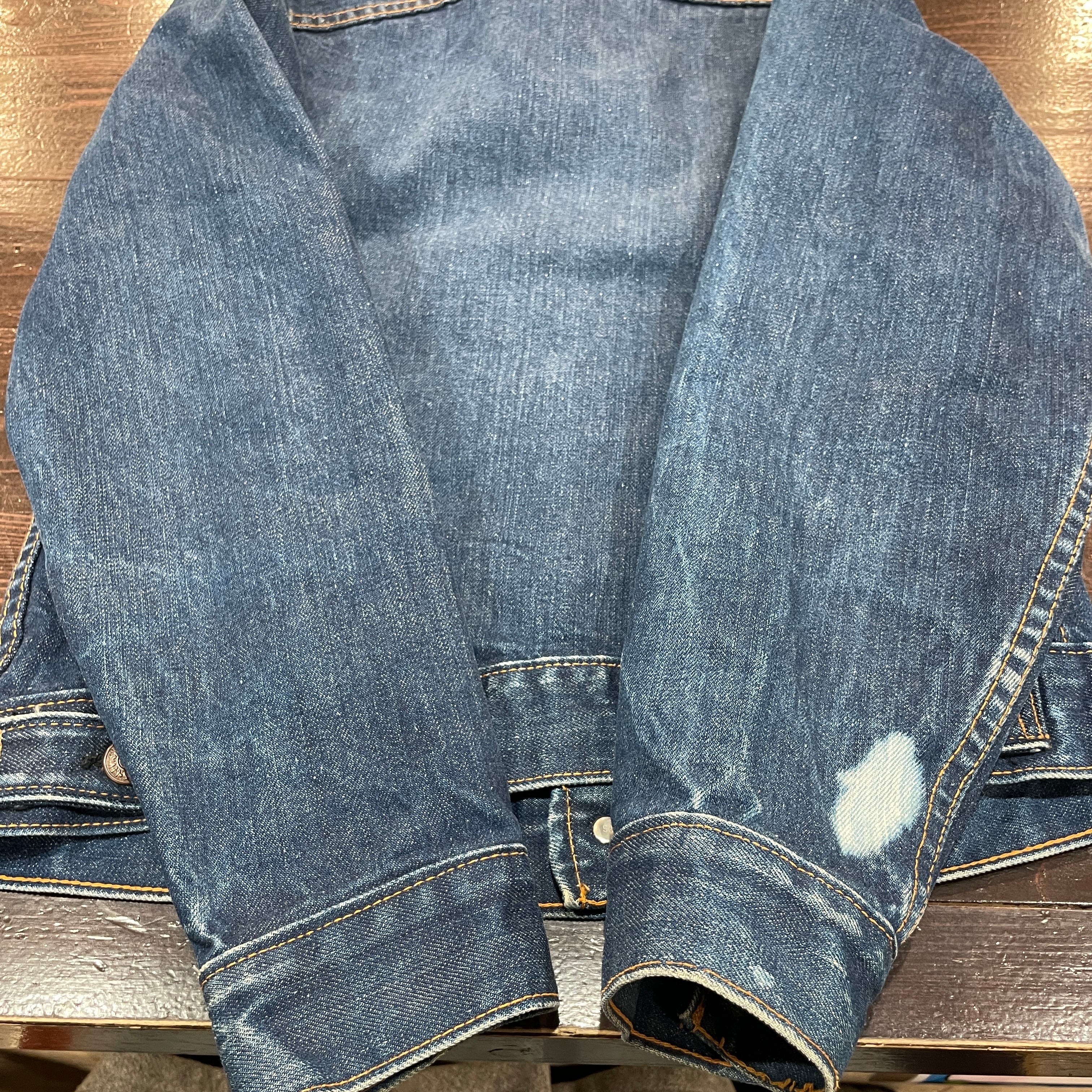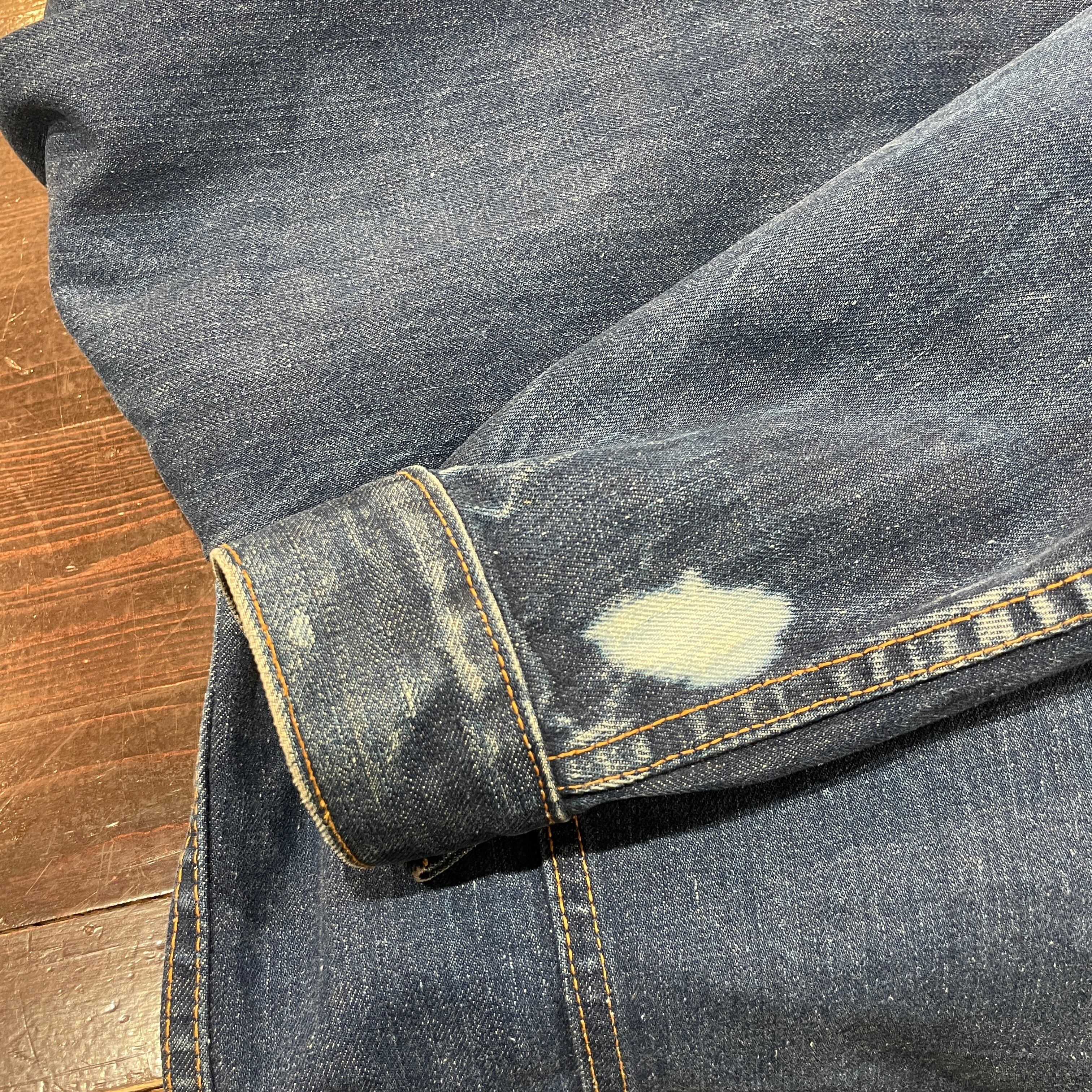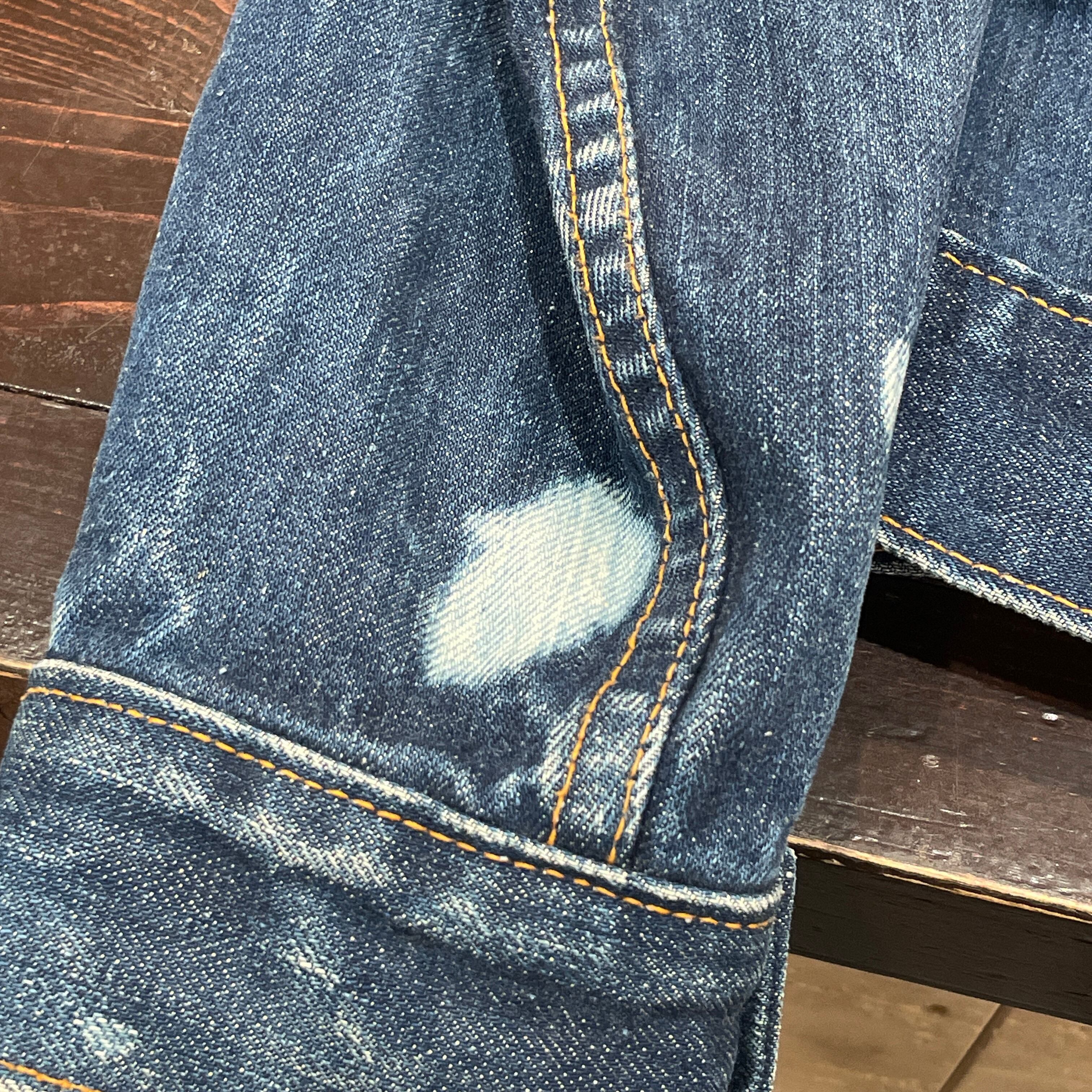 ブリーチ、スレ、ステッチ抜け等見られます。着用には問題無くまだまだ着用可能な状態です。