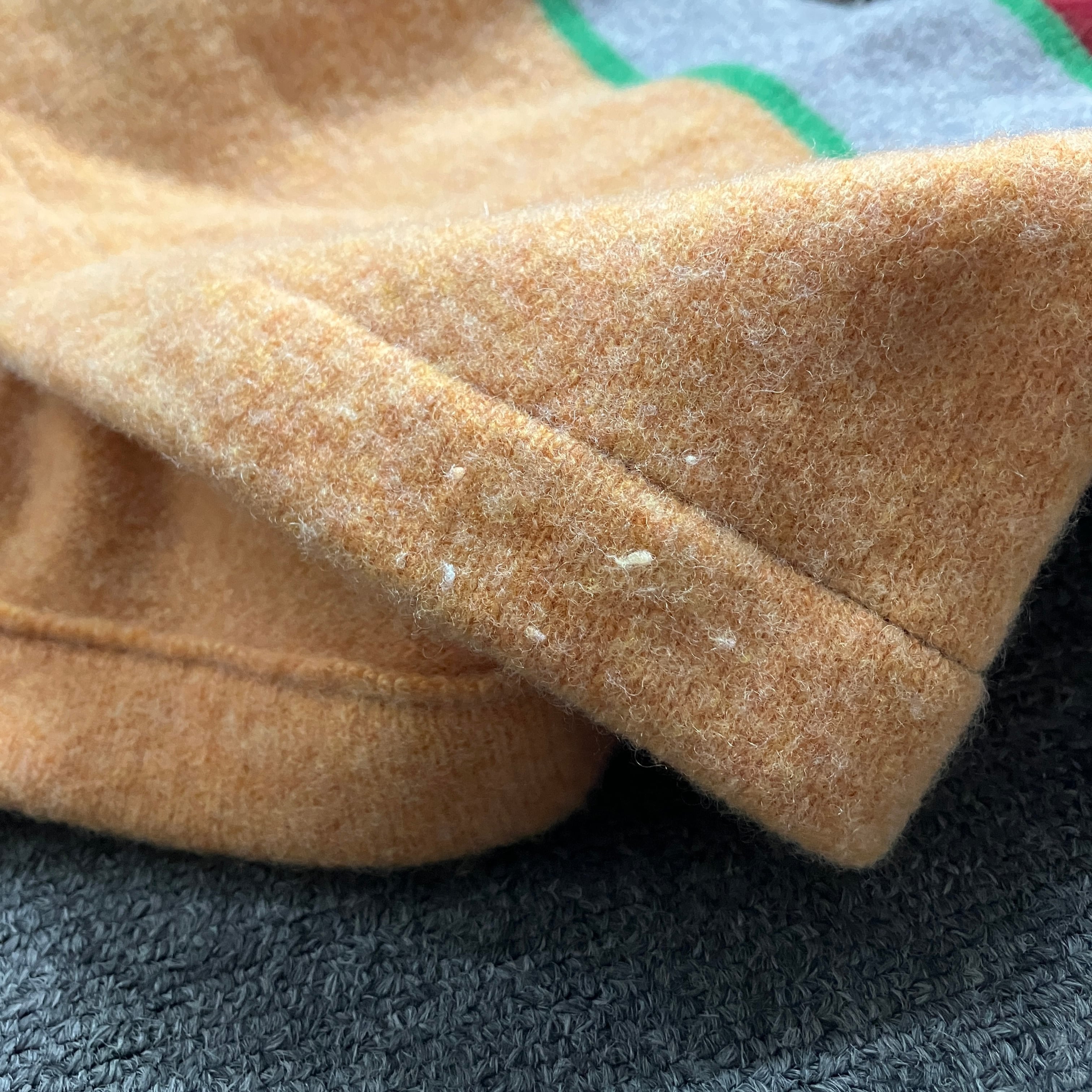 毛羽立ち、小さな毛玉があります。
