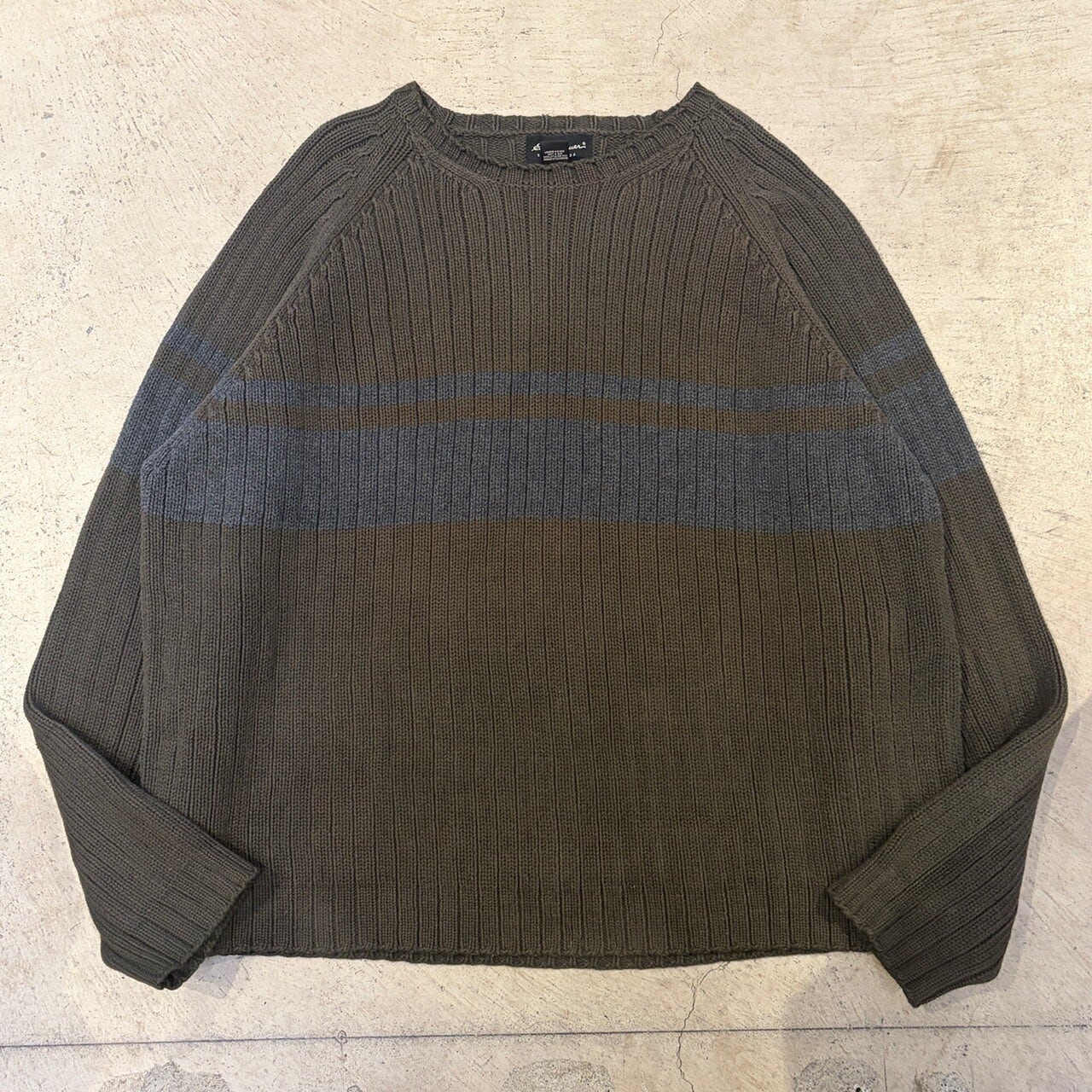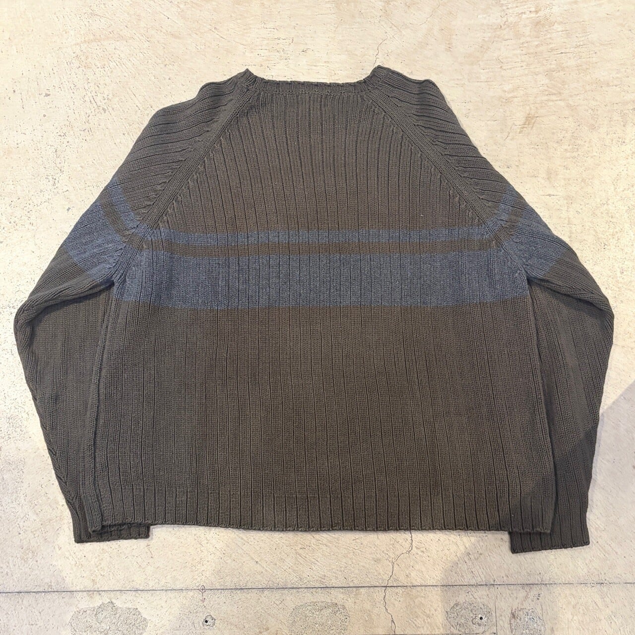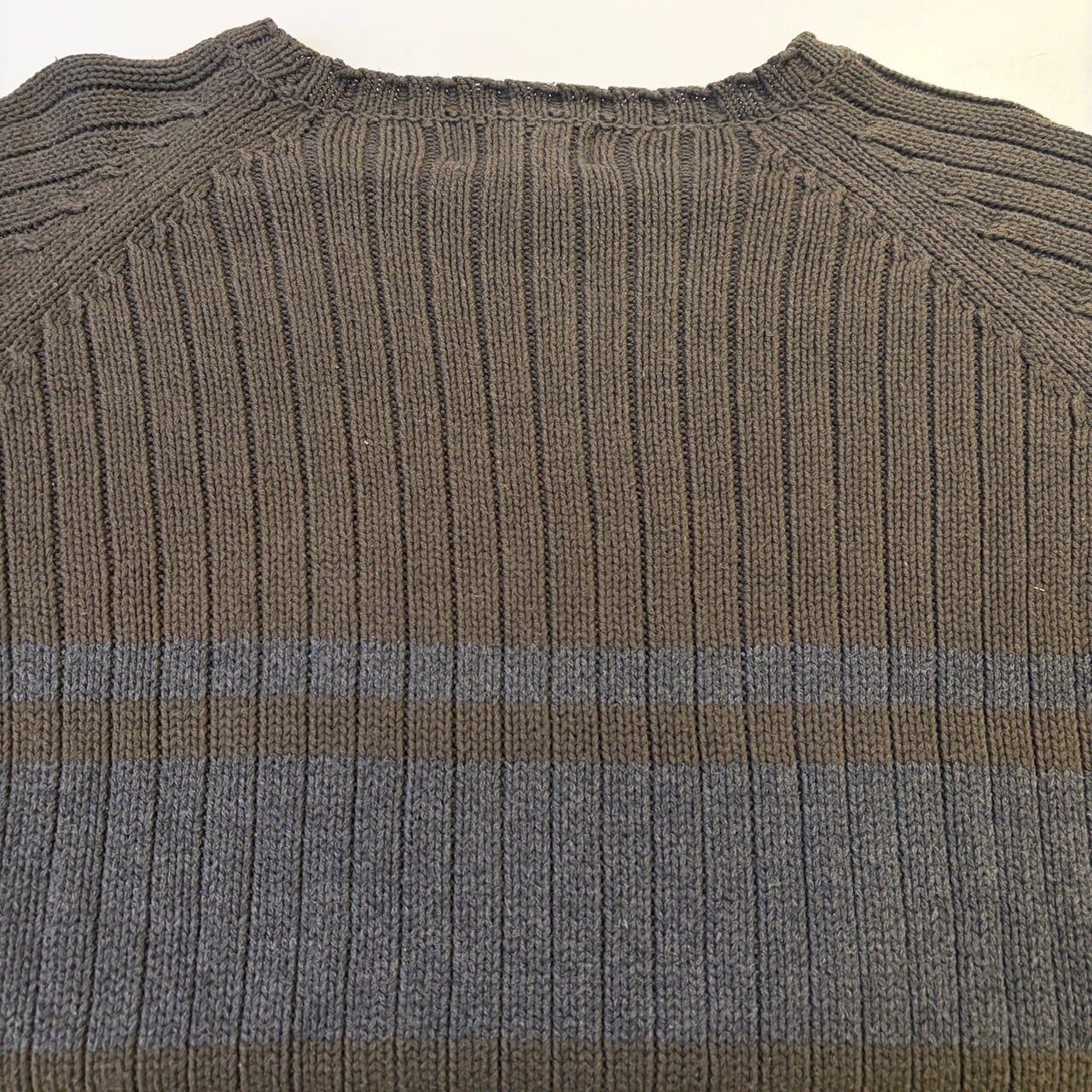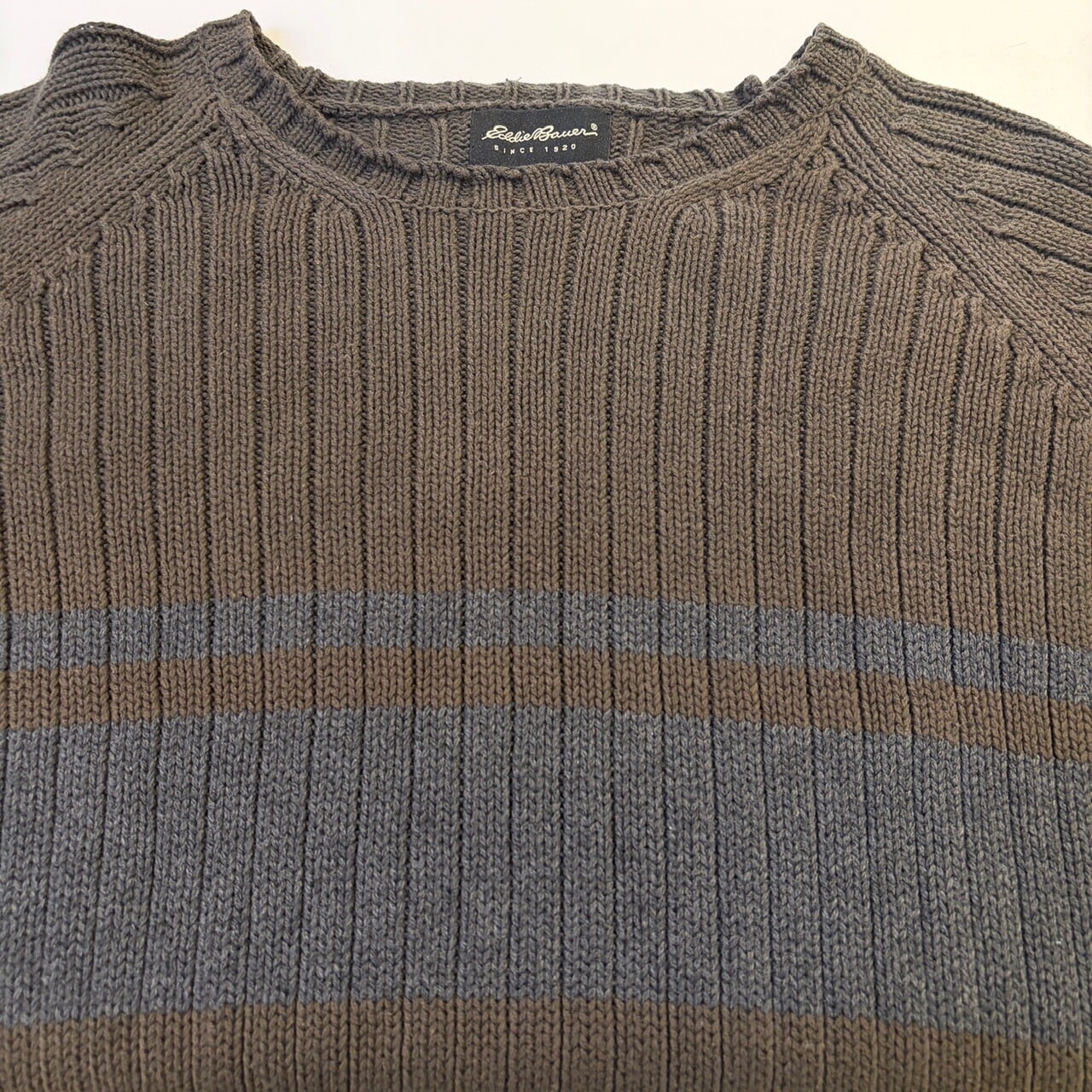 EDDIE BAUER COTTON KNIT SWEATER KHAKI BORDER