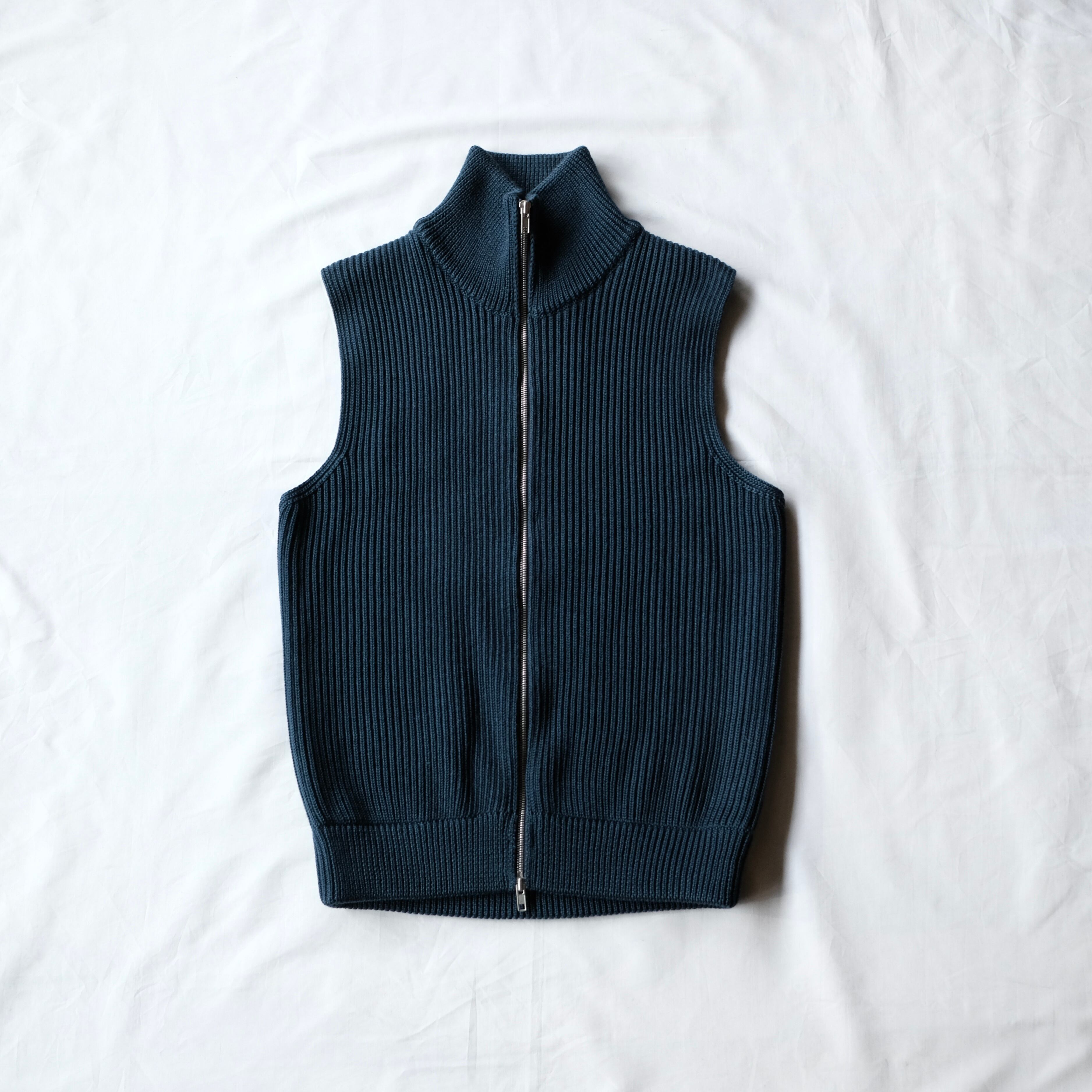 防寒性はもちろんですが、個人的にはダブルジップを下だけ上げて着ていただくとこなれた感じでオススメ。ウールコートのインナーとしても特徴的なネックがアクセントとなり、コーディネートを格上げしてくれます。