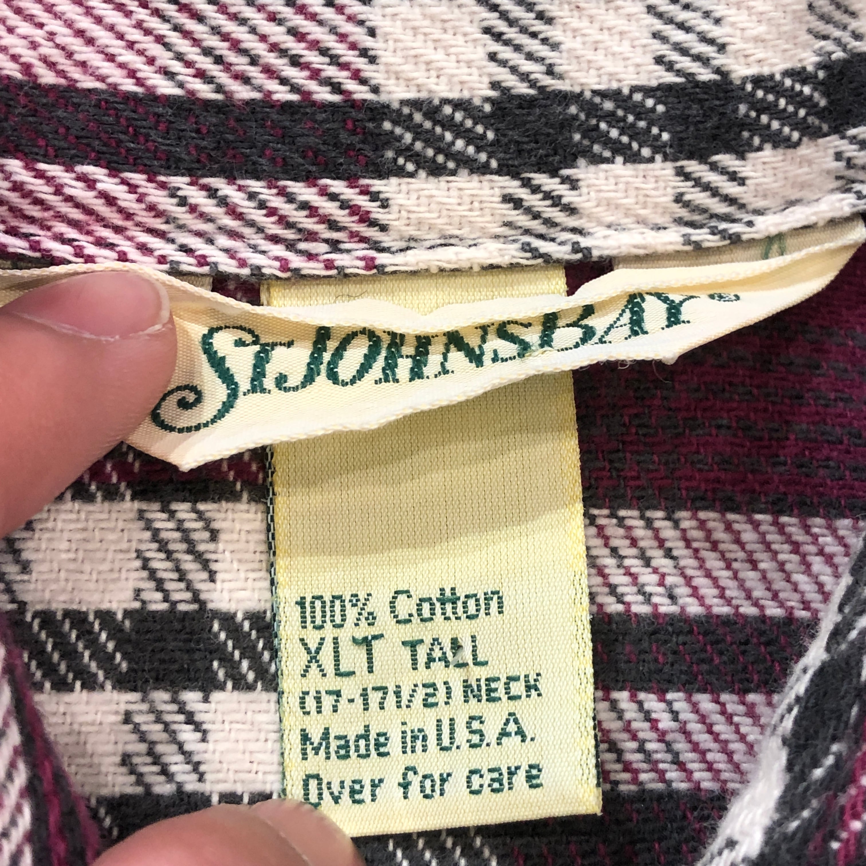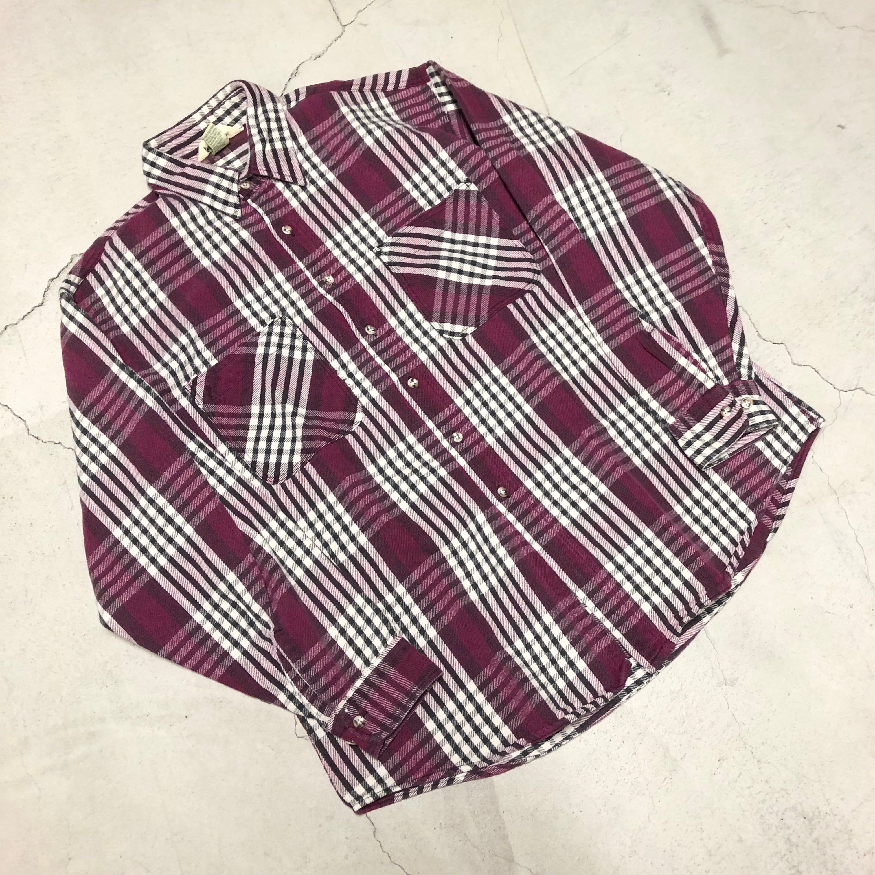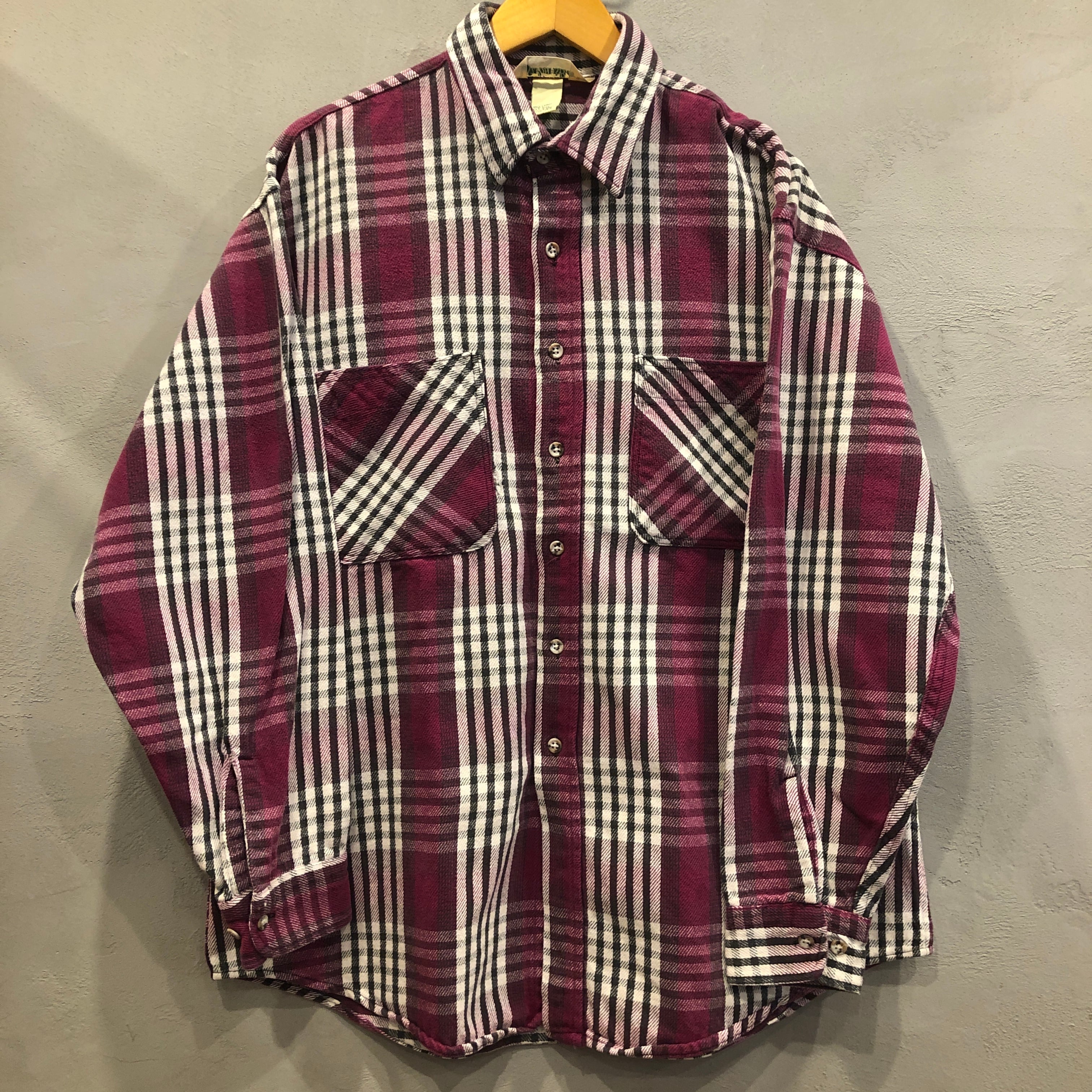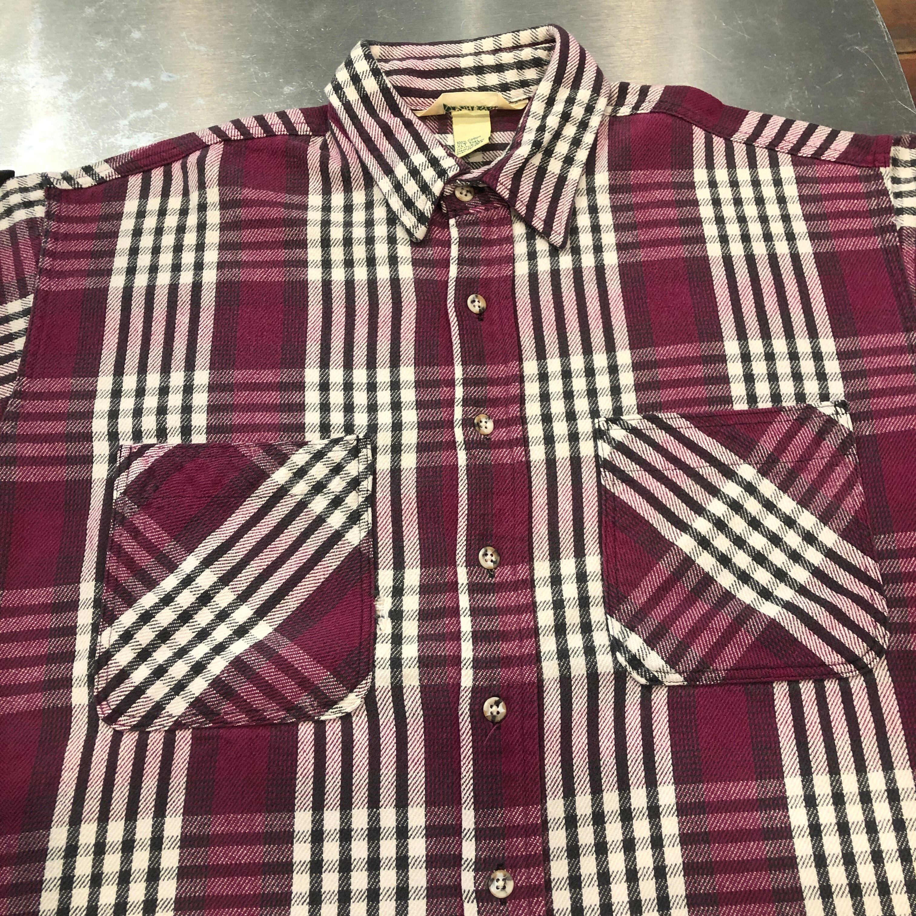 ⊕1980'S ST JOHN'S BAY RED CHECK FLANNEL SHIRT