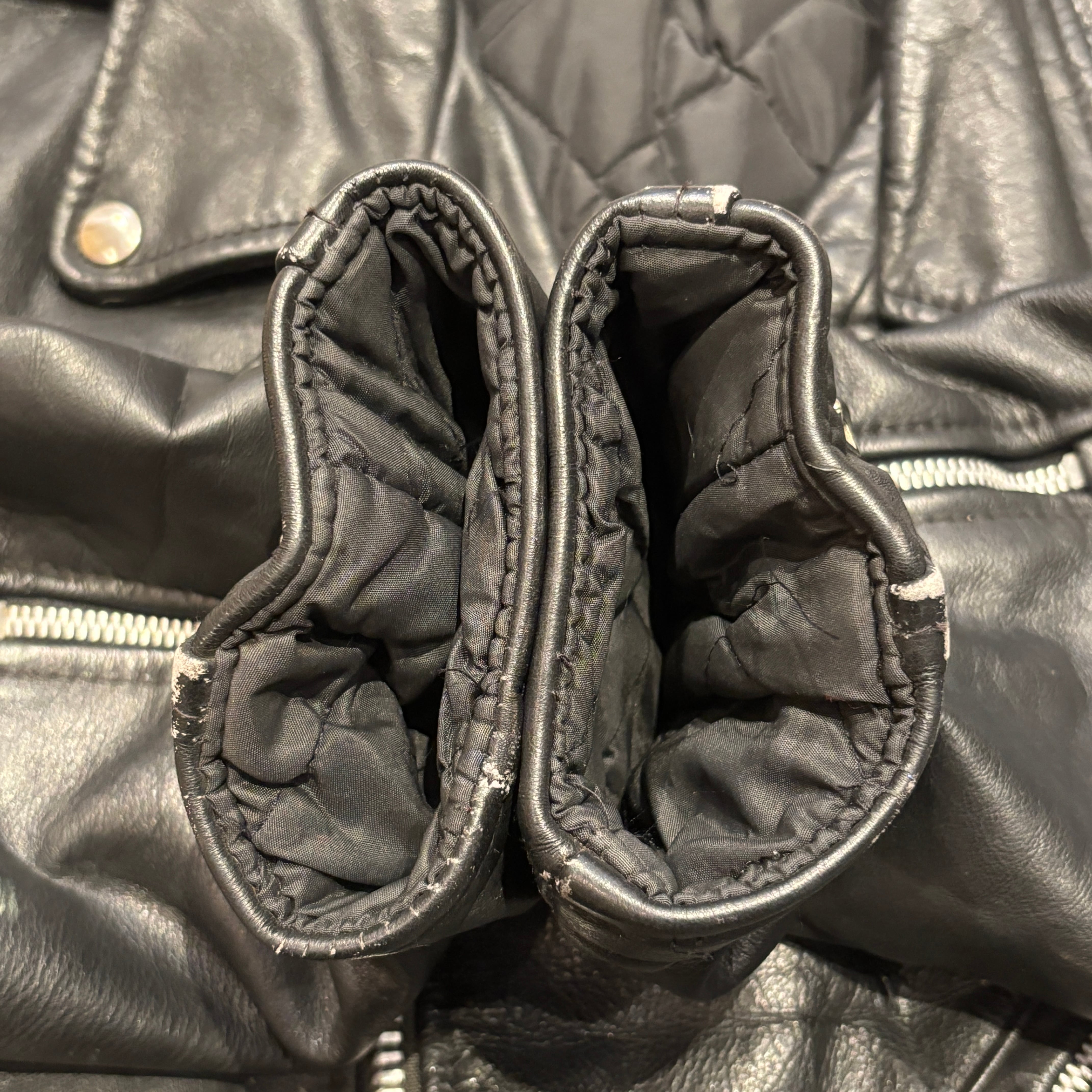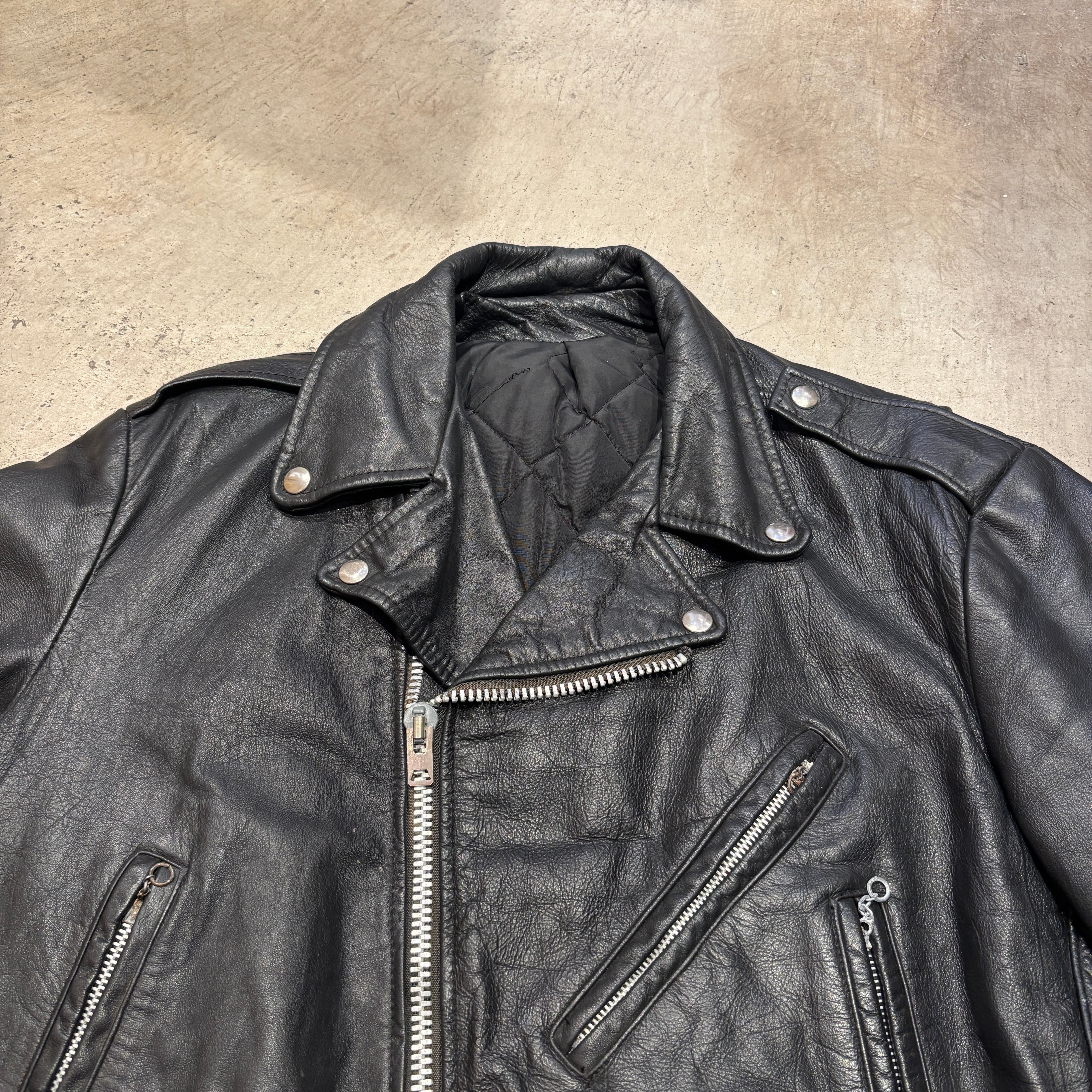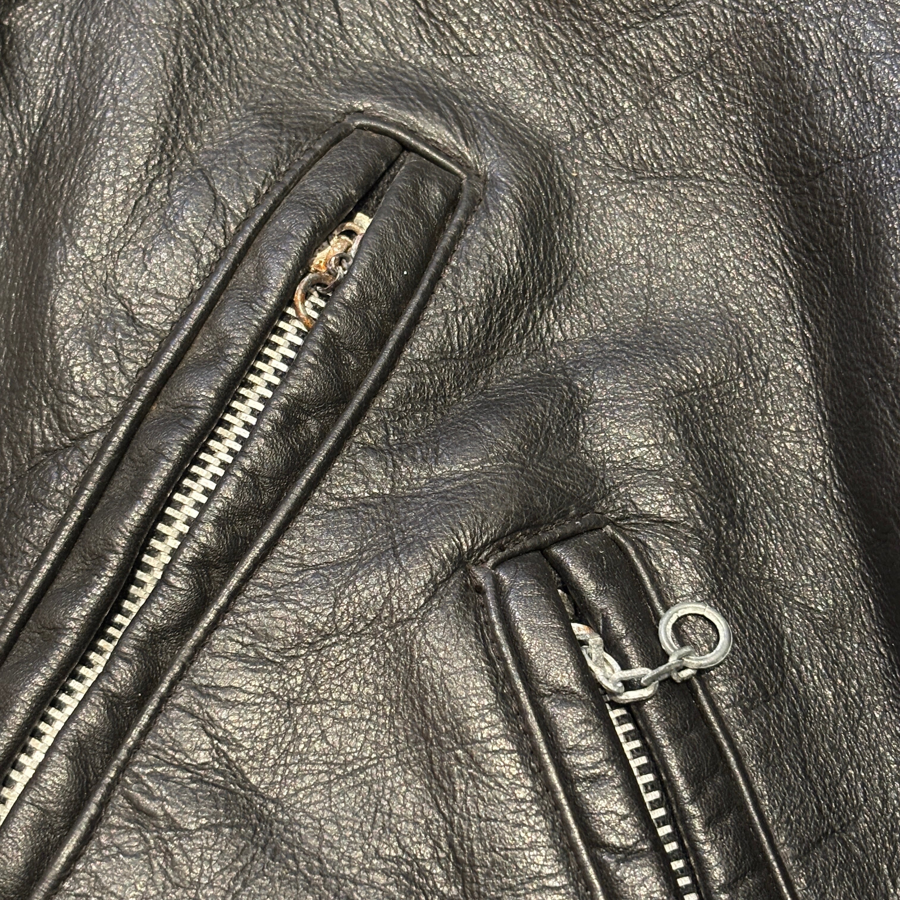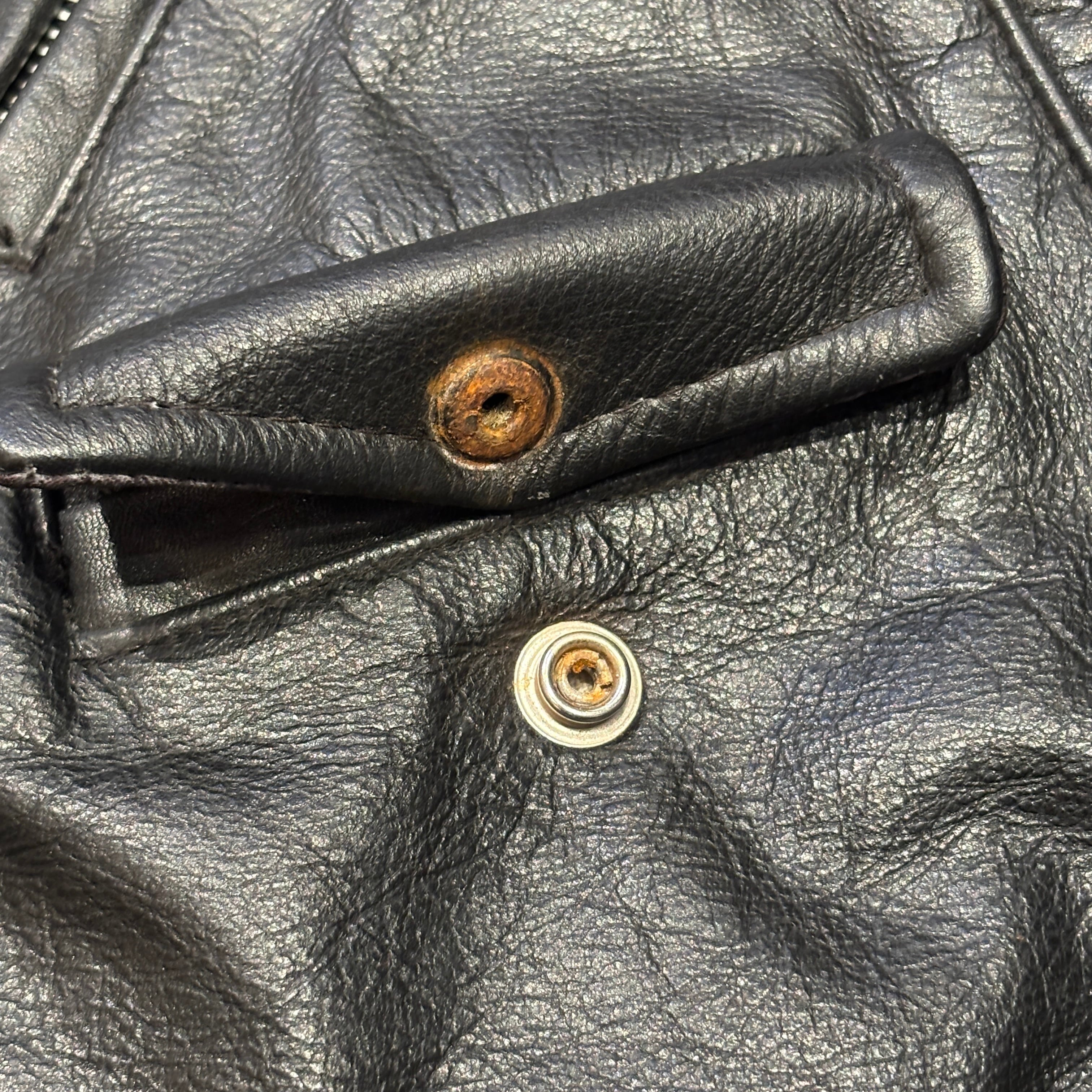 ポケット部分のスナップボタン欠損、ジッパー錆、汚れやスレ、シワなどの着用感ございますが、古着慣れされた方でしたら問題なく着用可能な状態です。