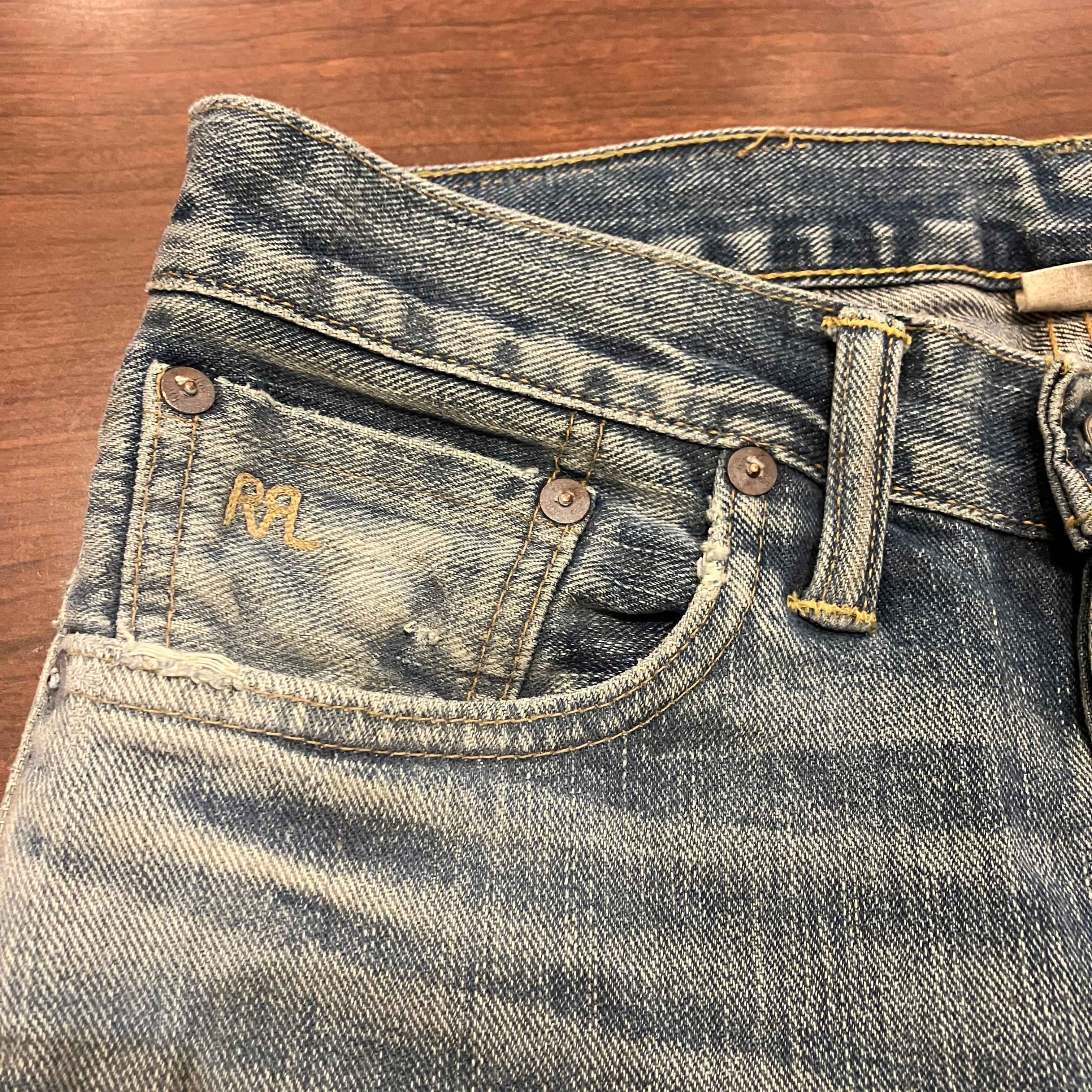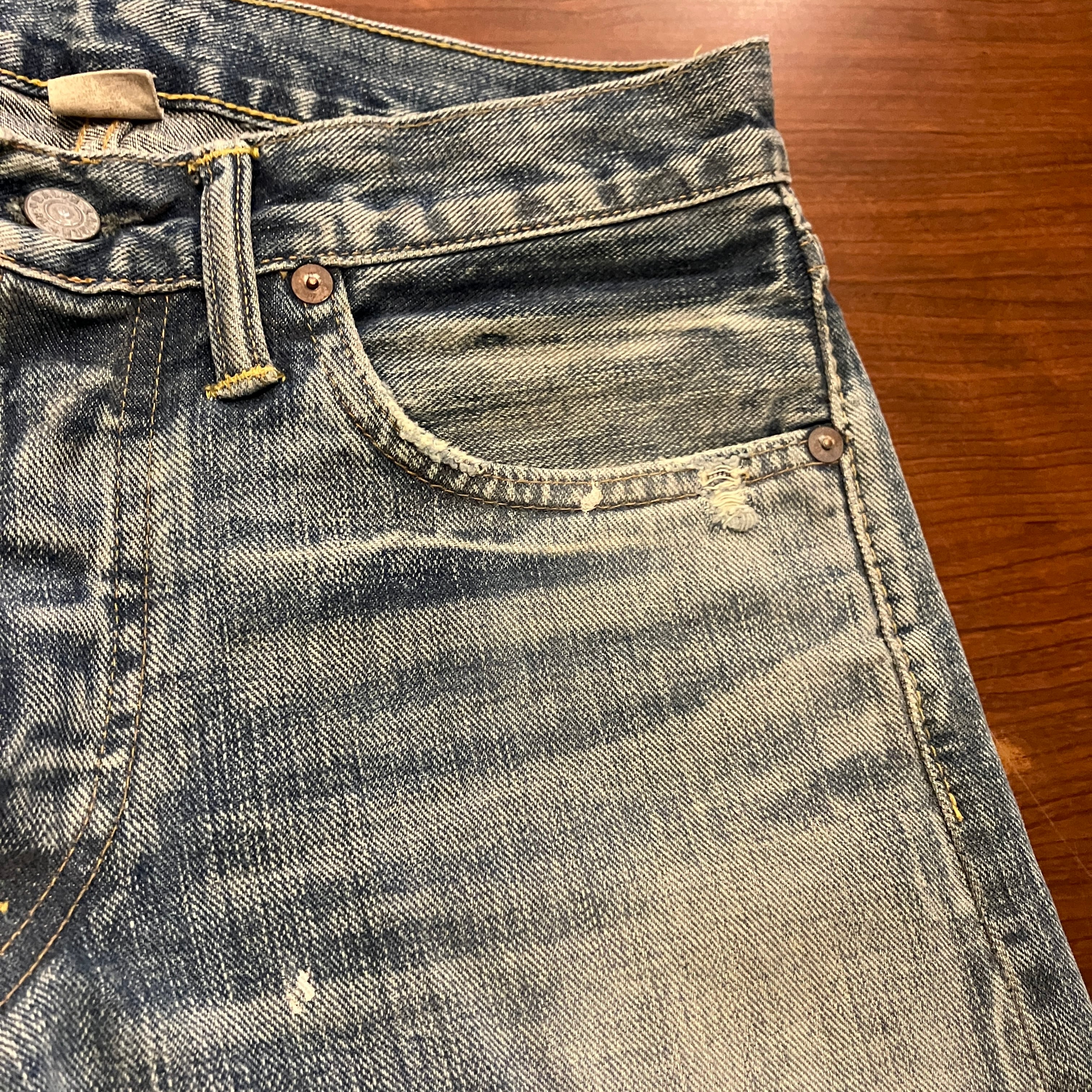 着用によるスレや色落ちがございますが他に目立つダメージ等は無く、古着慣れされた方でしたらまだまだ着用していただける状態です。