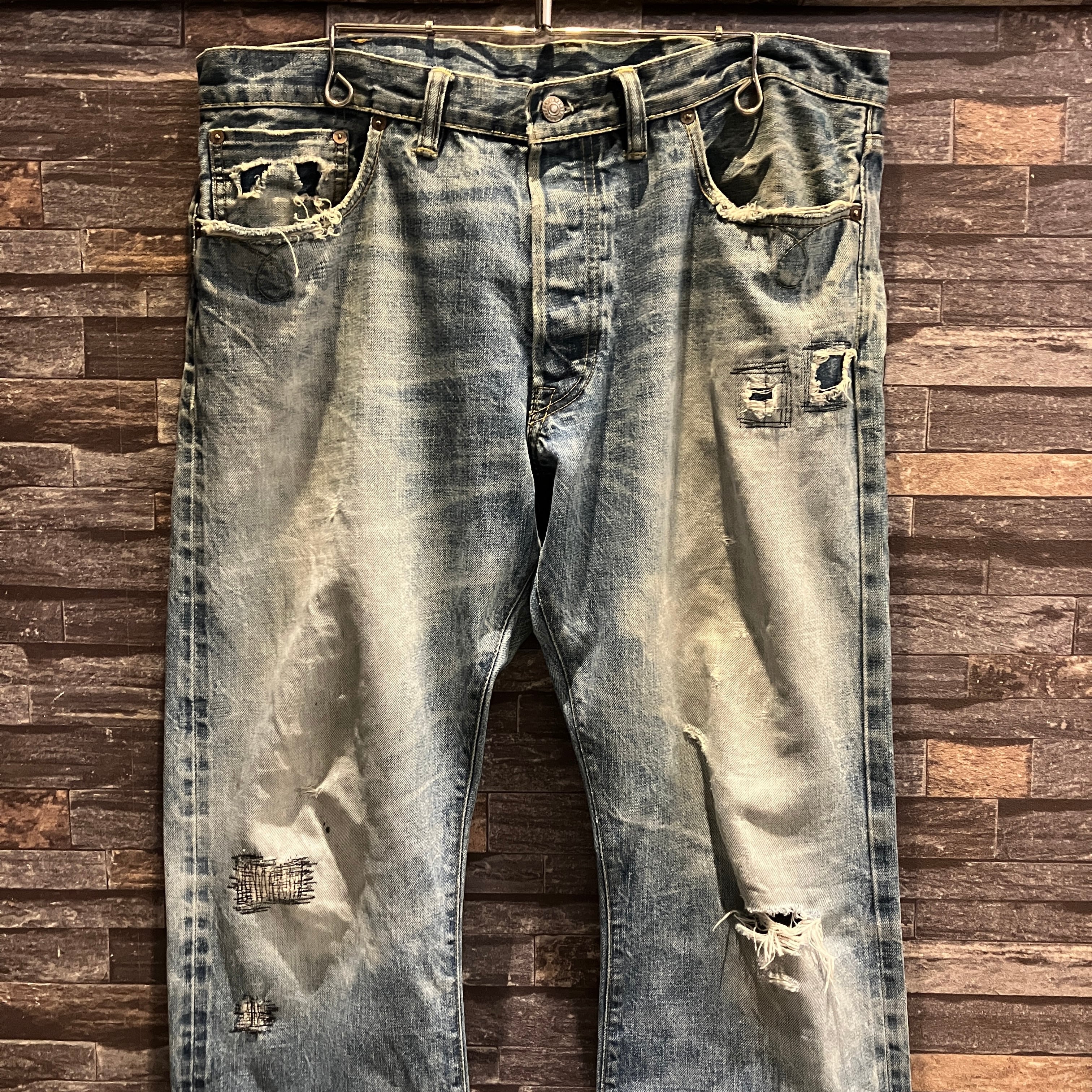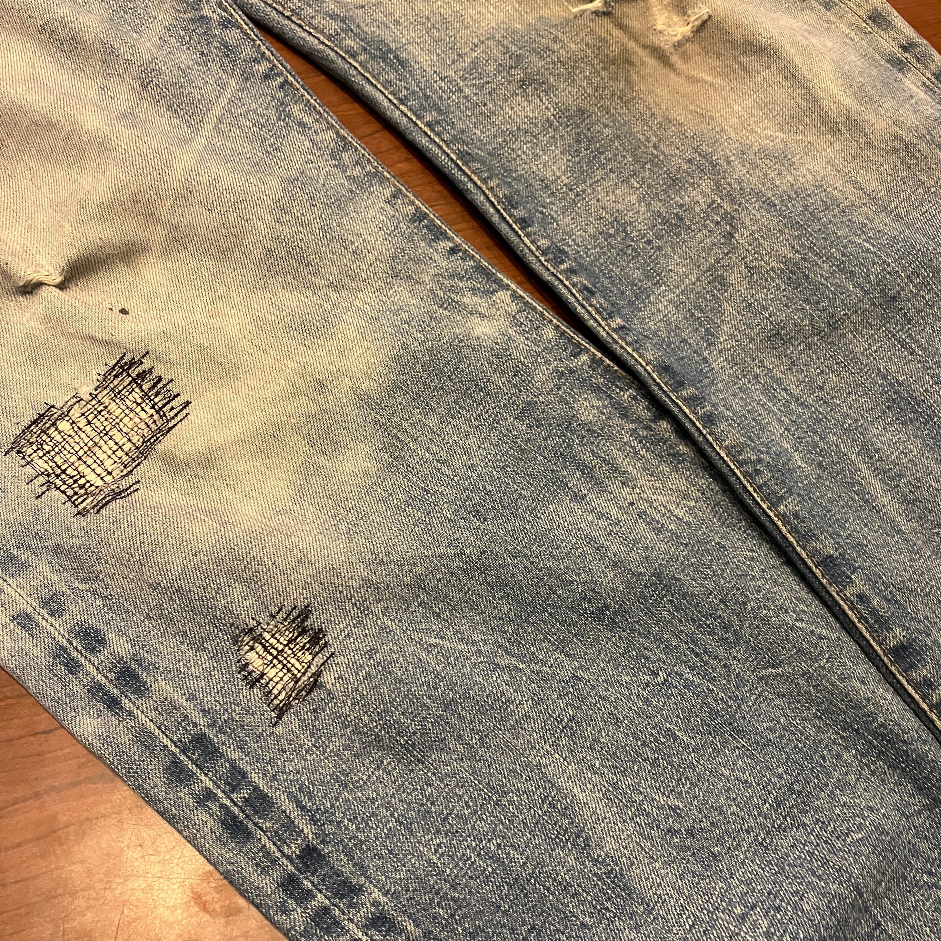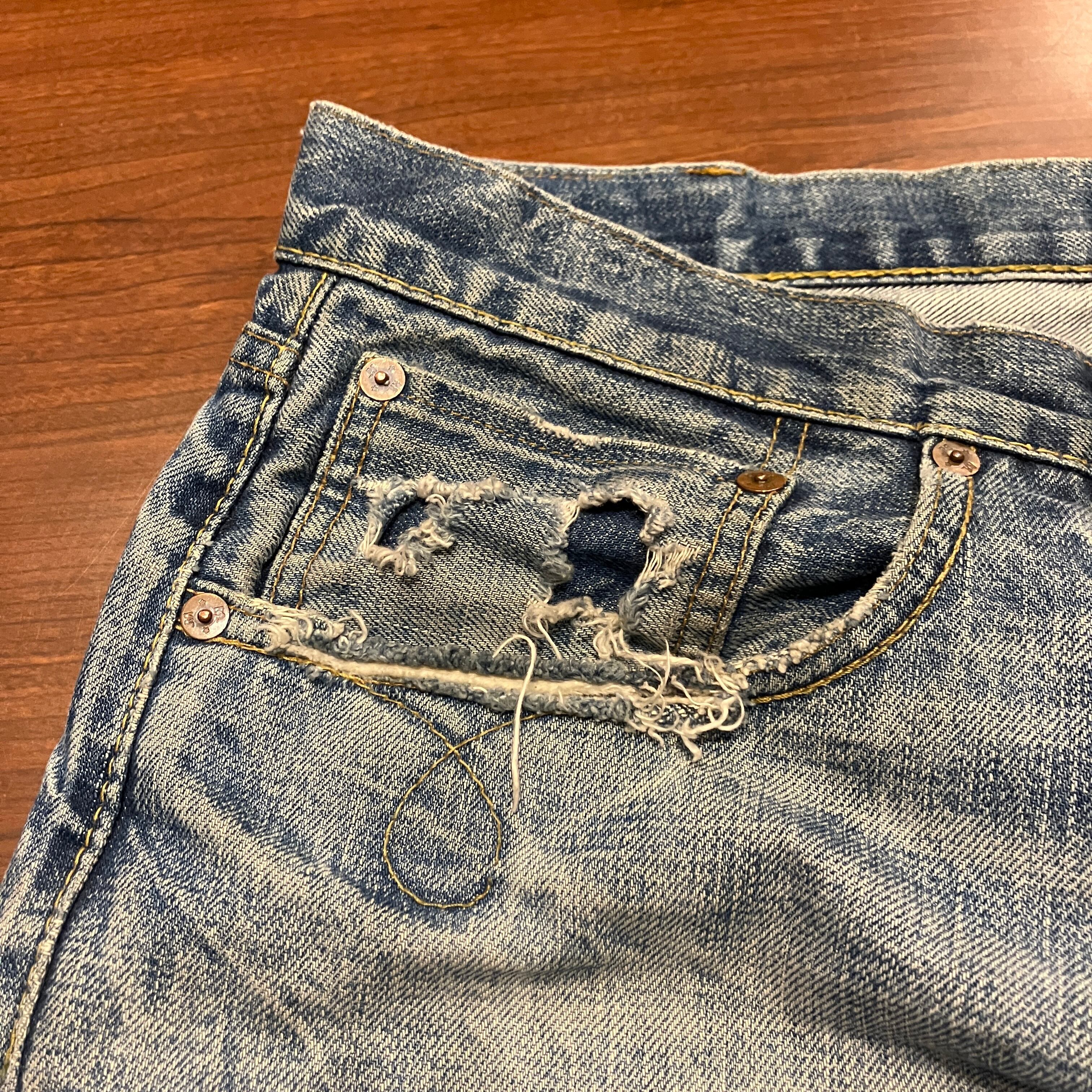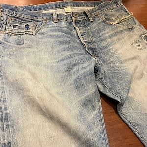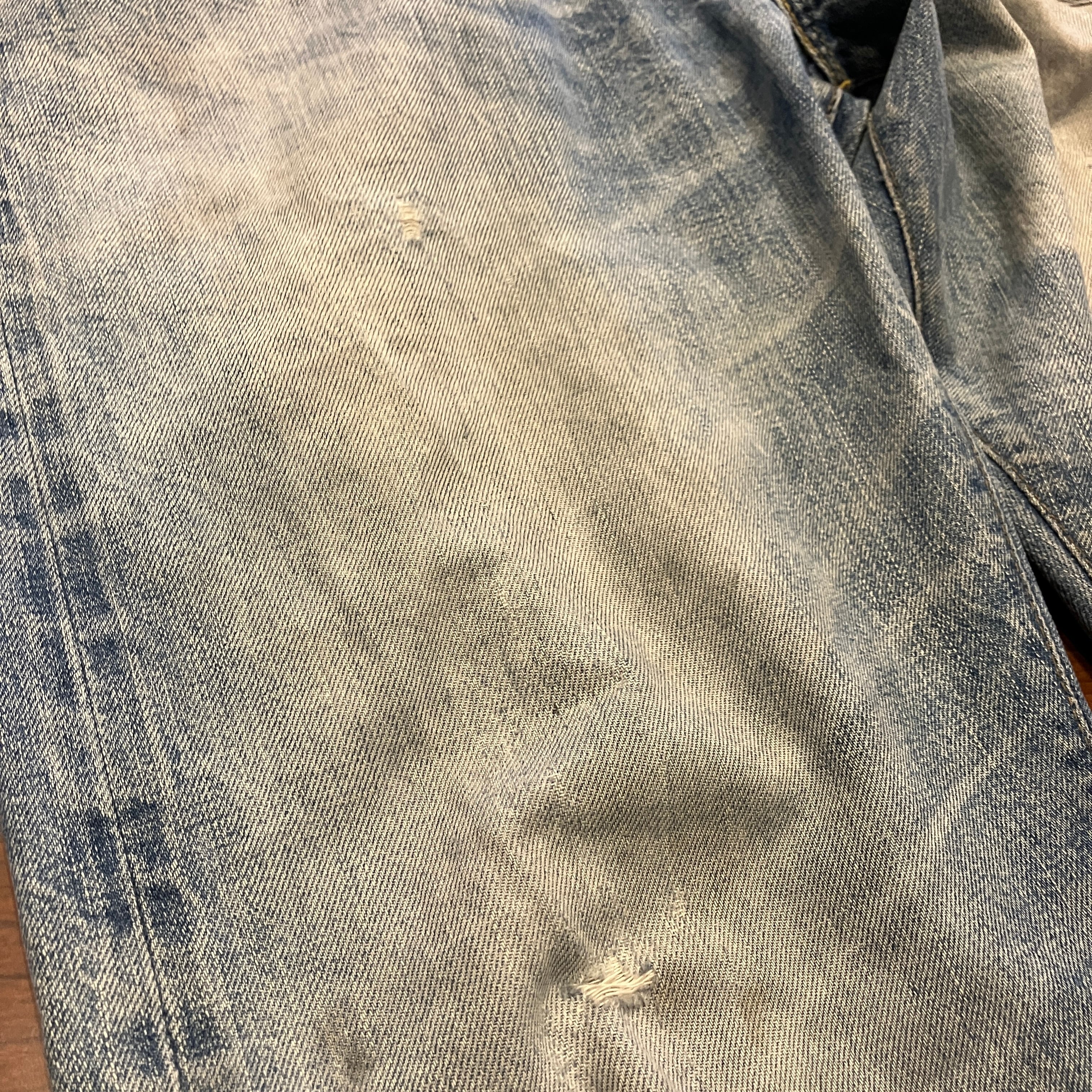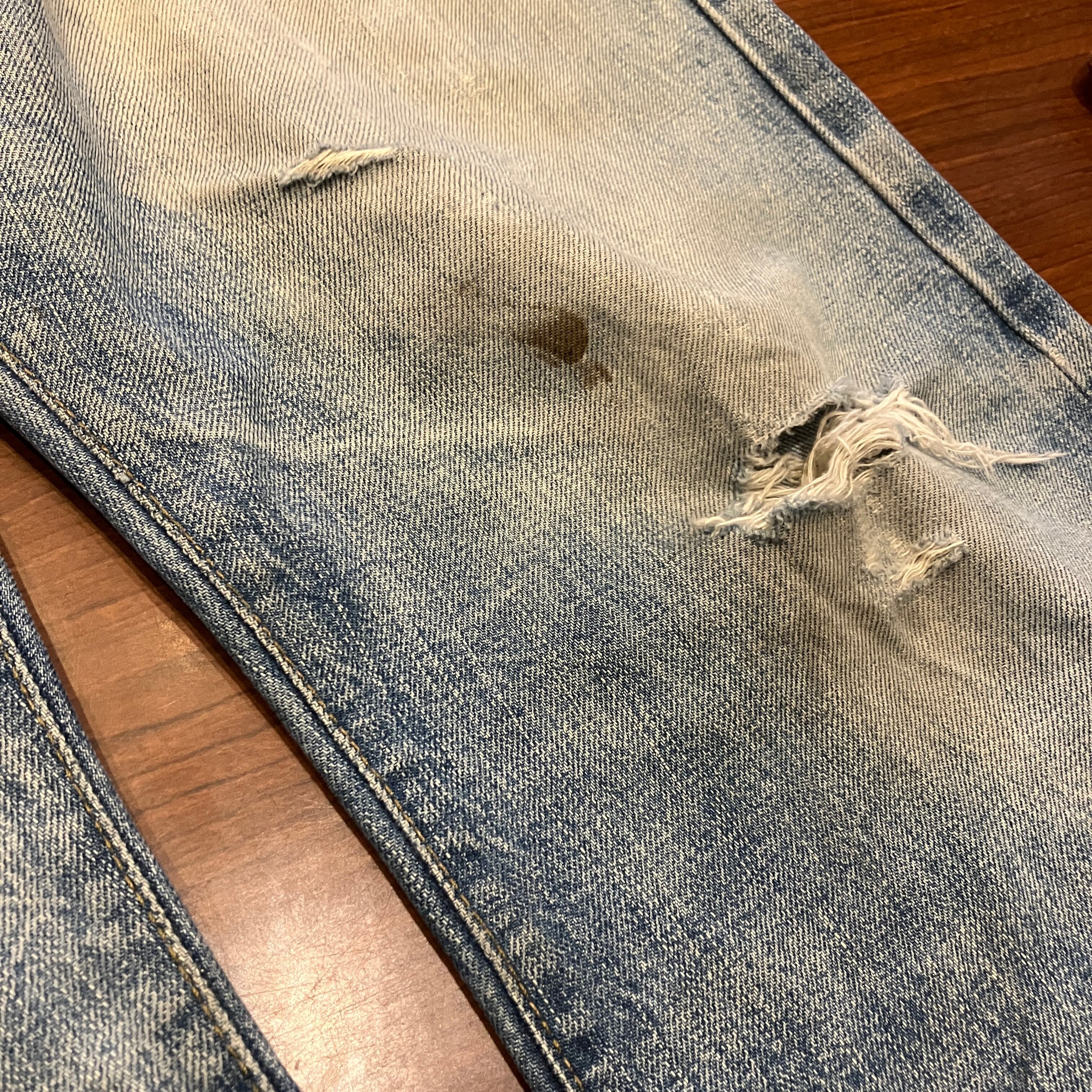 画像の様な着用によるダメージやスレ、汚れ、色落ち、パッチ上部のほつれがございます。古着慣れされた方におすすめです。