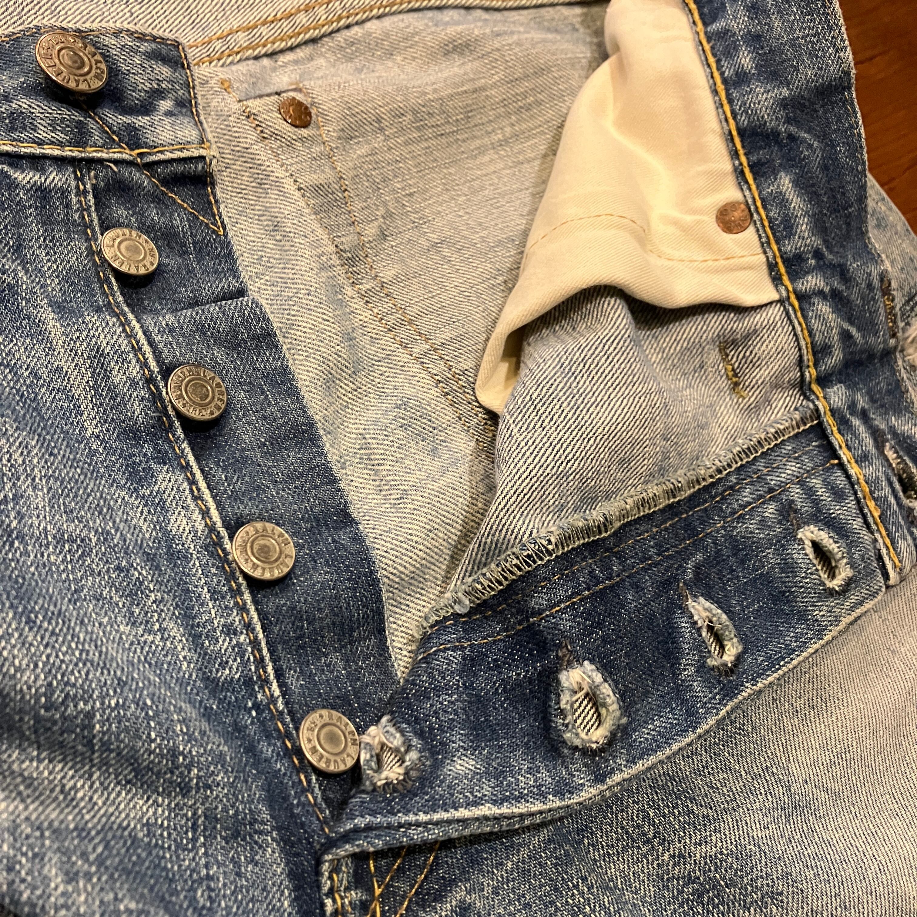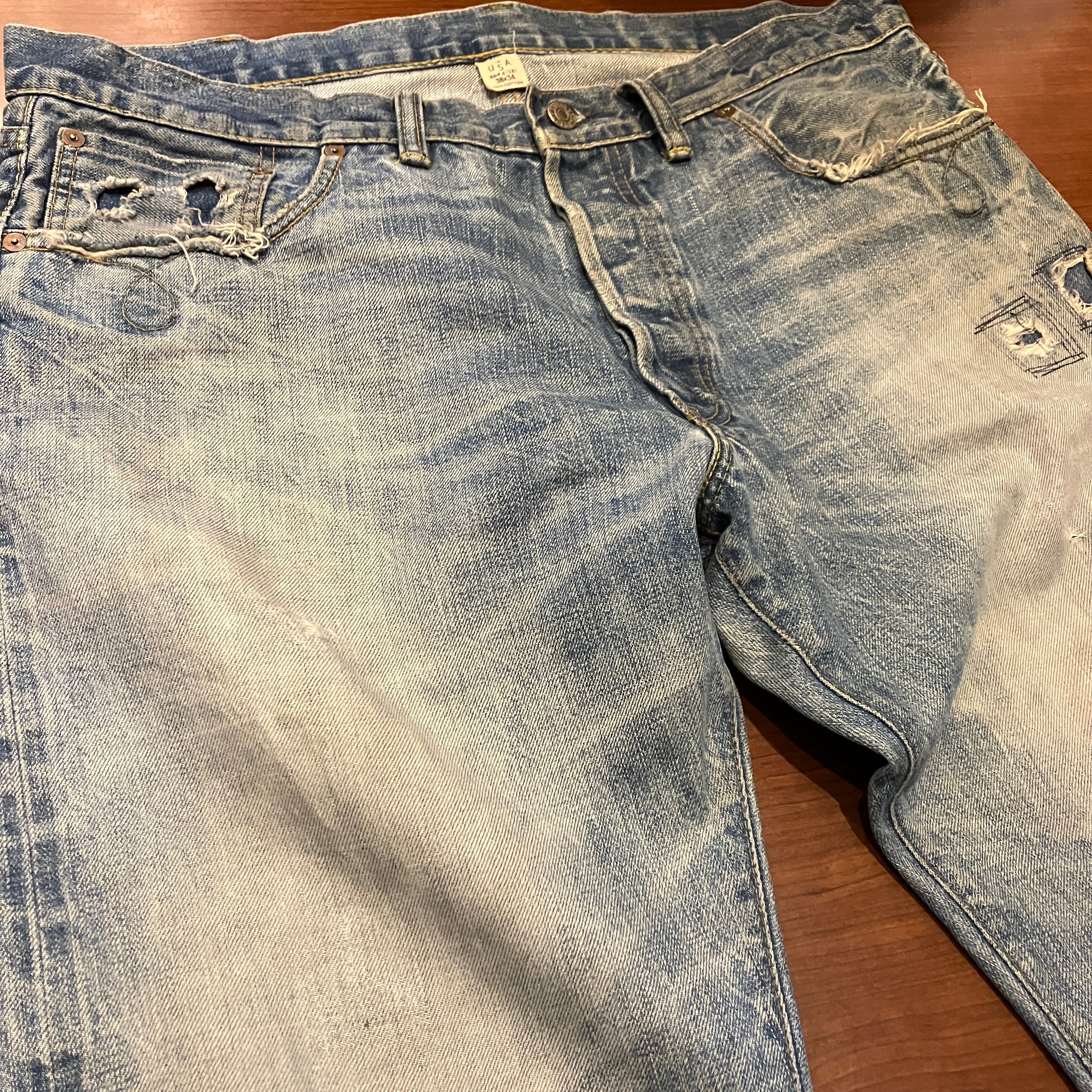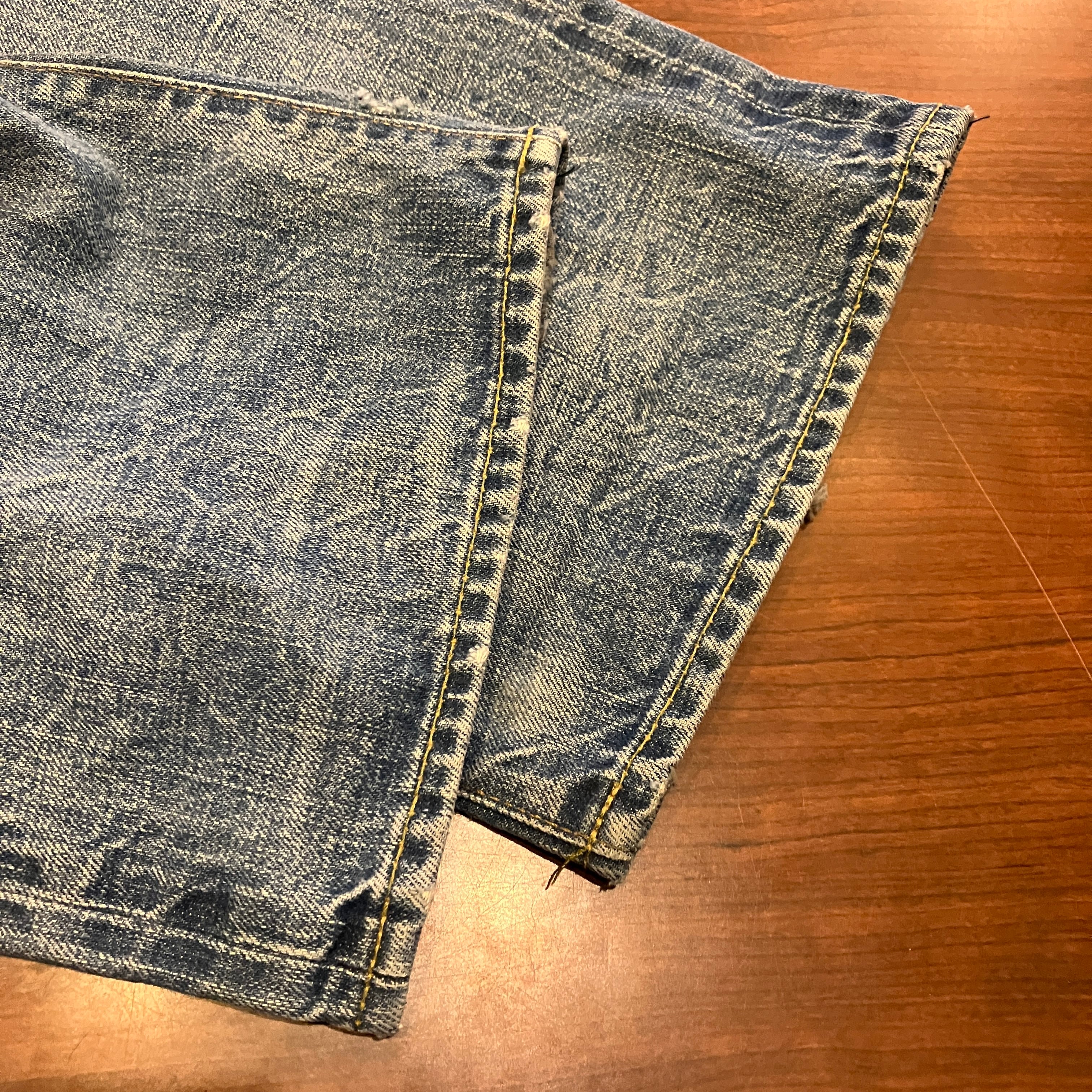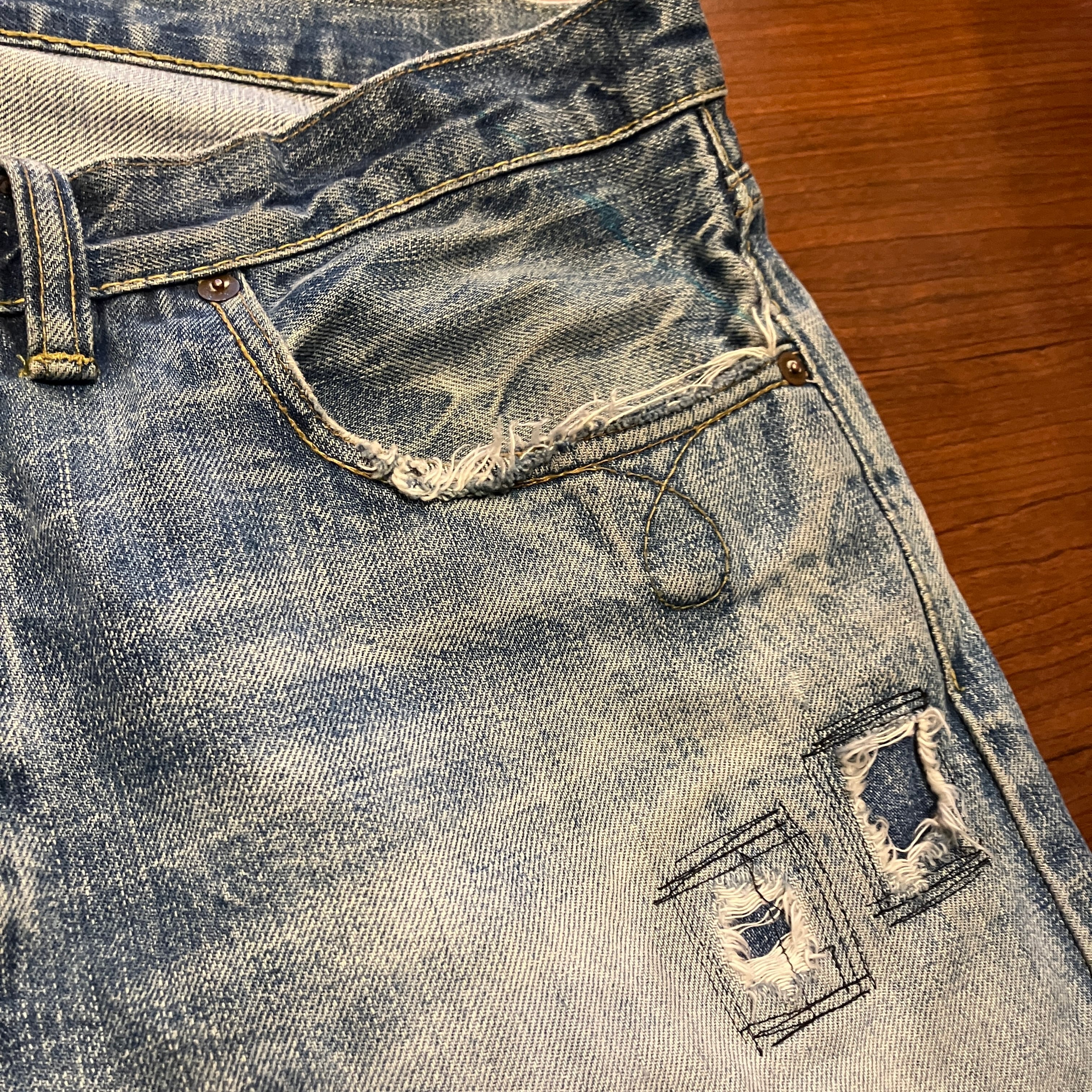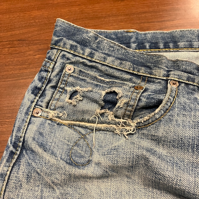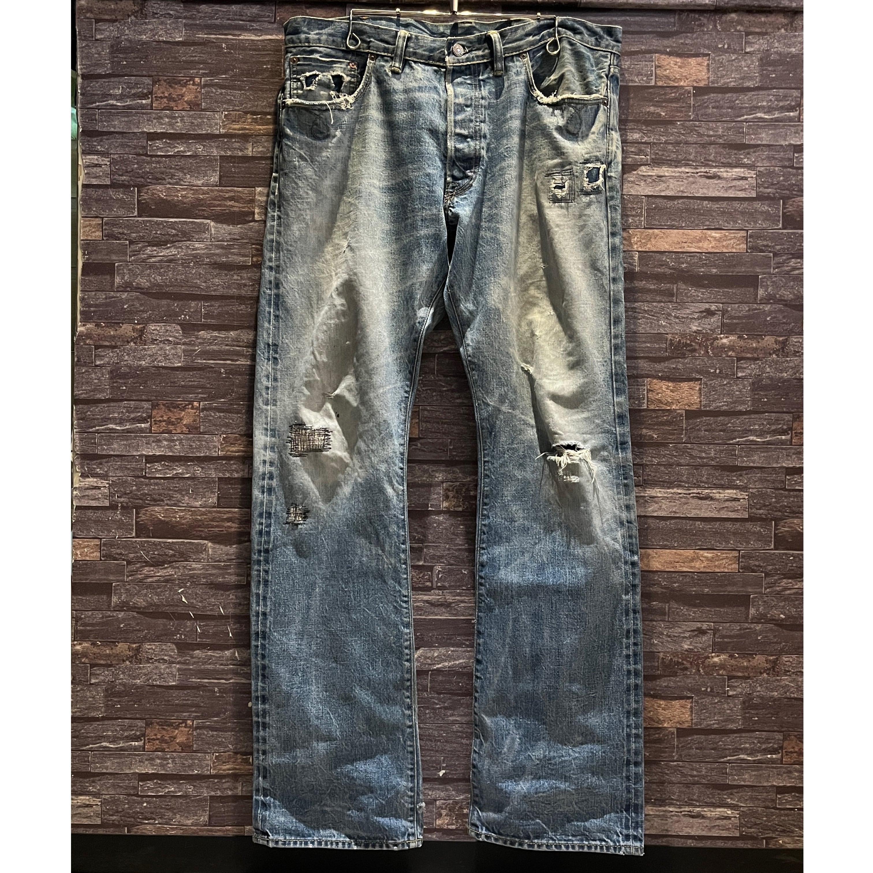 画像の様な着用によるダメージやスレ、汚れ、色落ち、パッチ上部のほつれがございます。古着慣れされた方におすすめです。