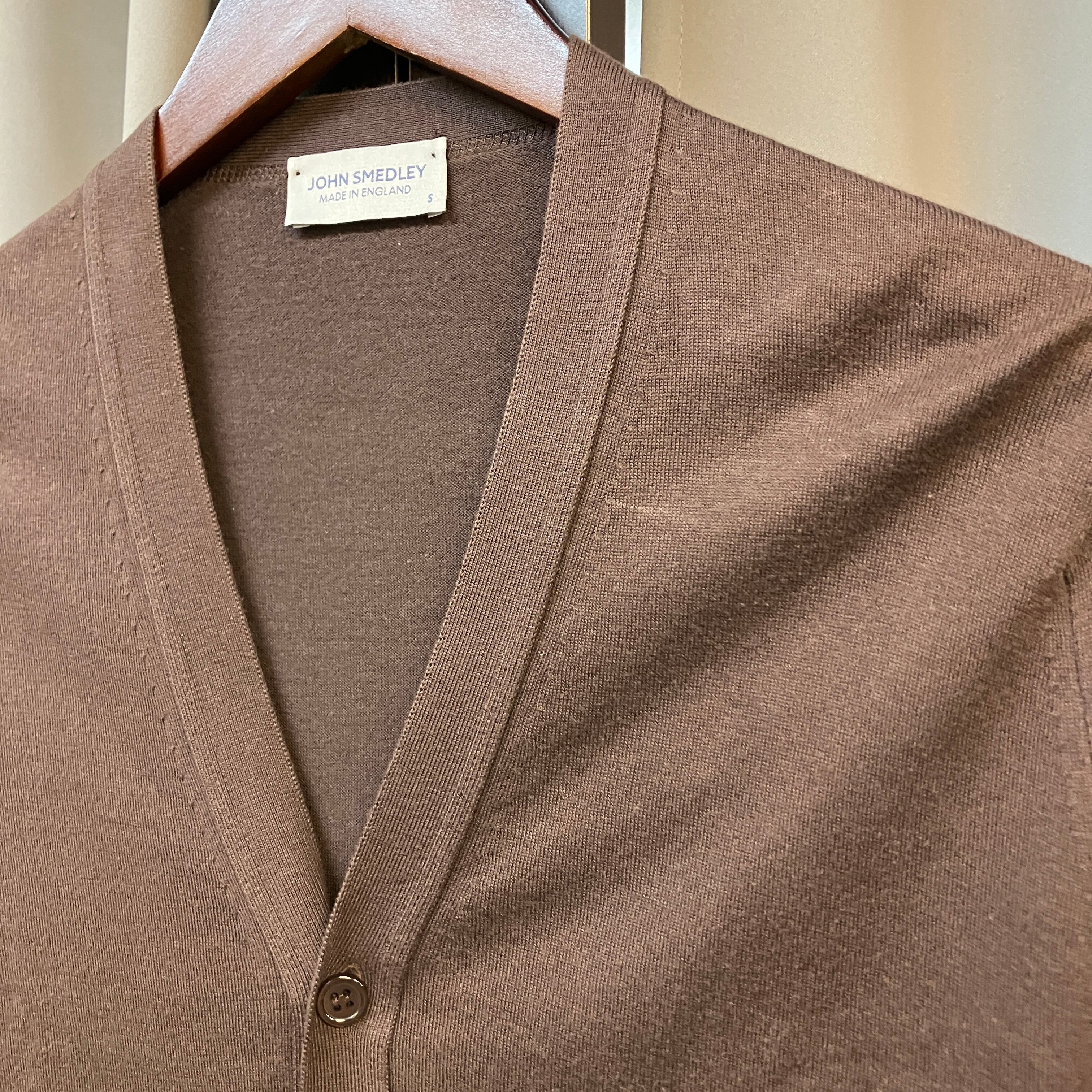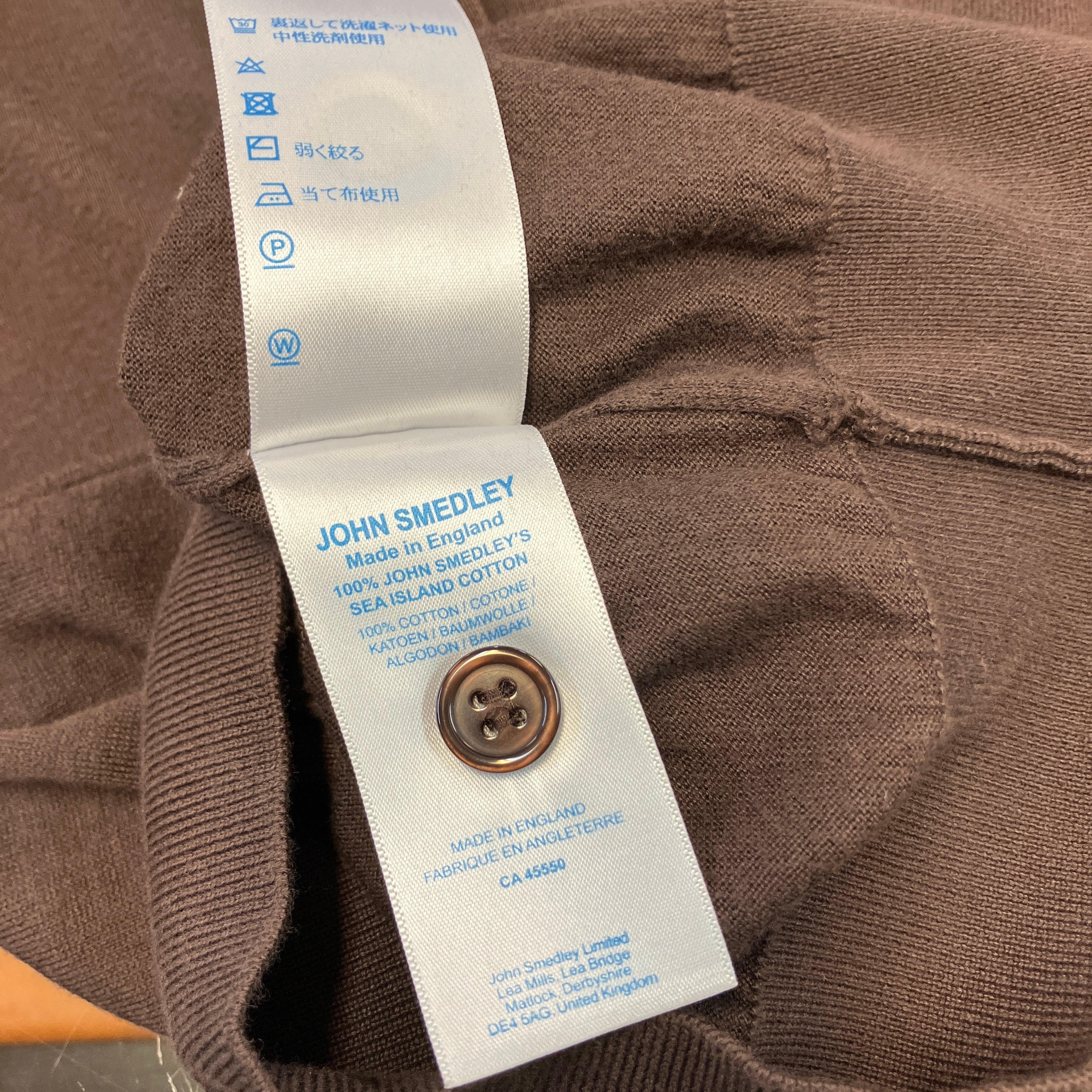 JOHN SMEDLEY COTTON CARDIGAN BROWN《S》