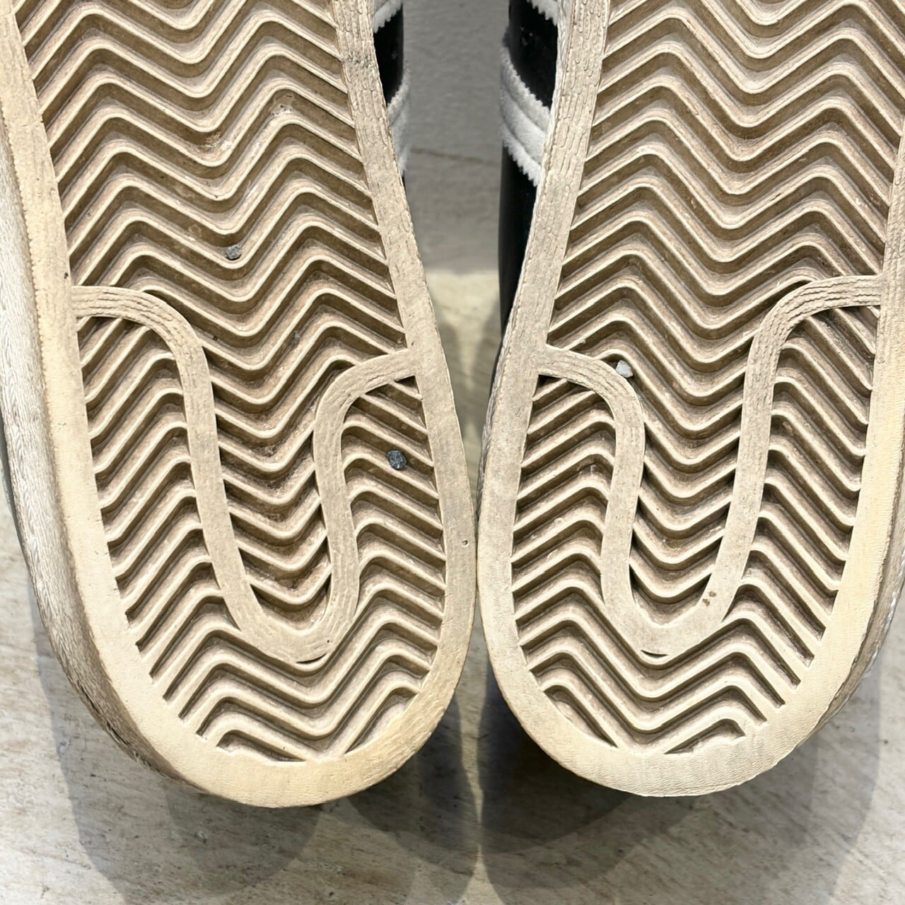 小キズや薄汚れ、若干の硬化など、ユーズドシューズ特有の着用感がございます。