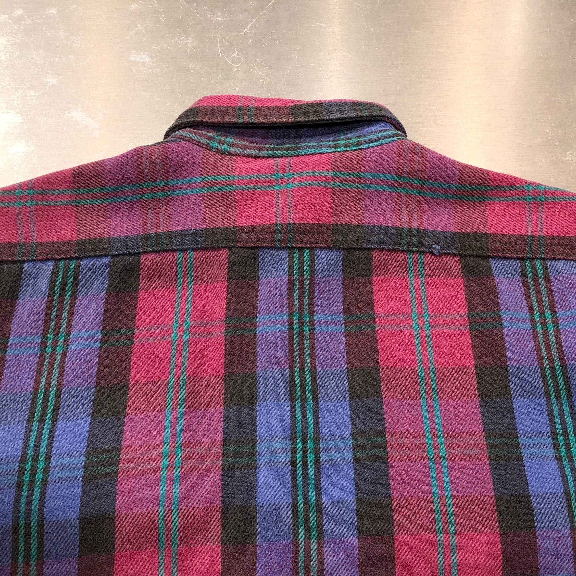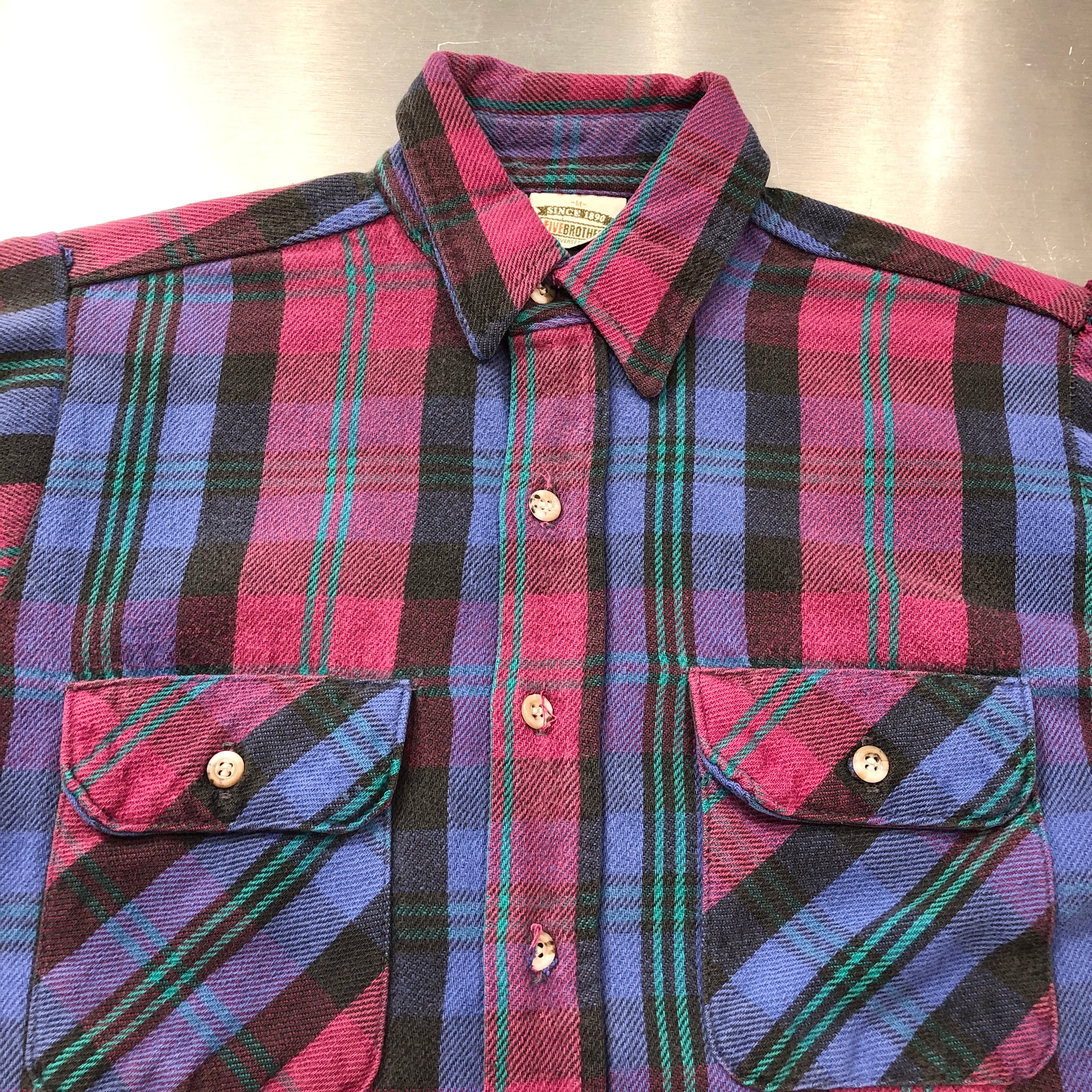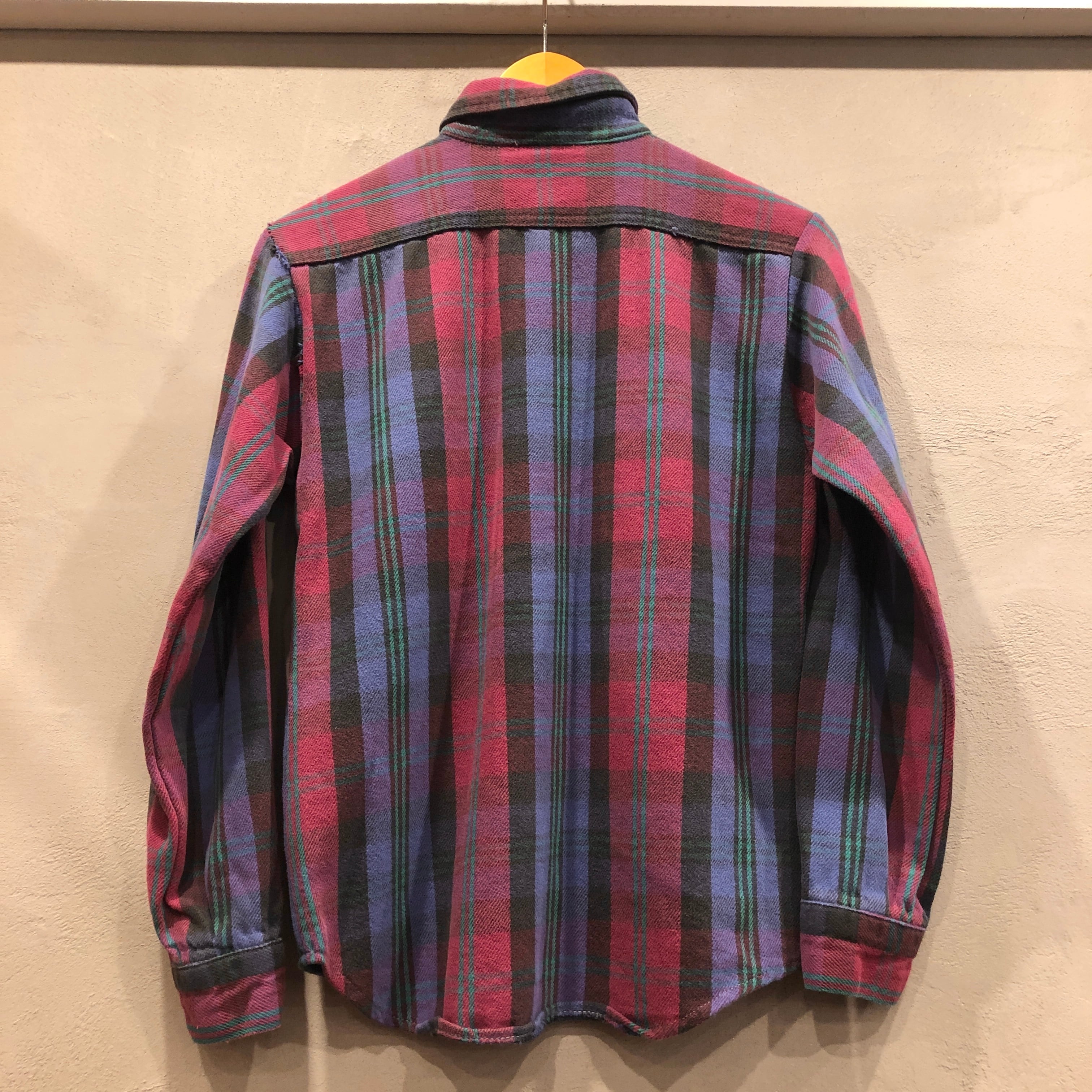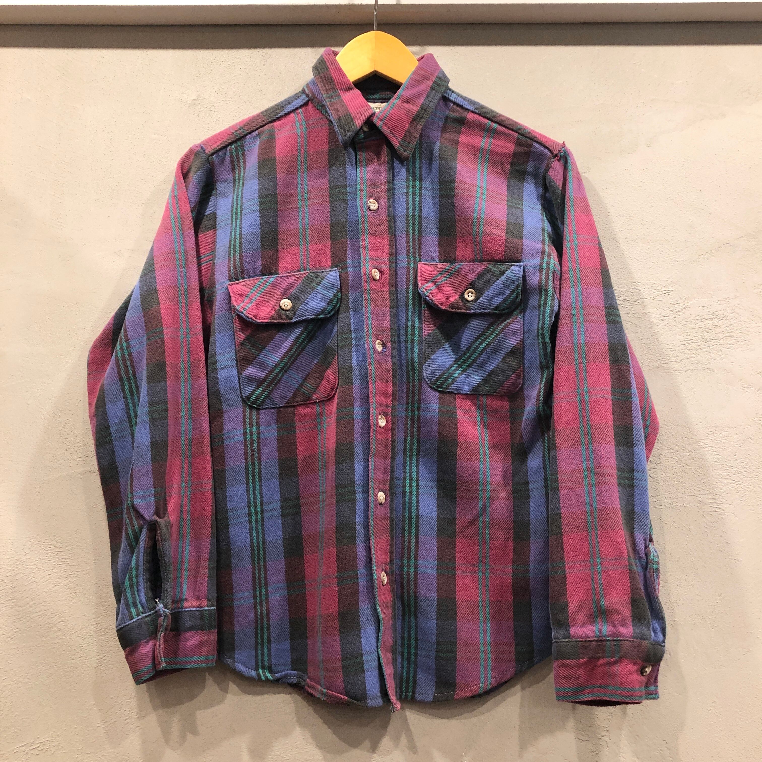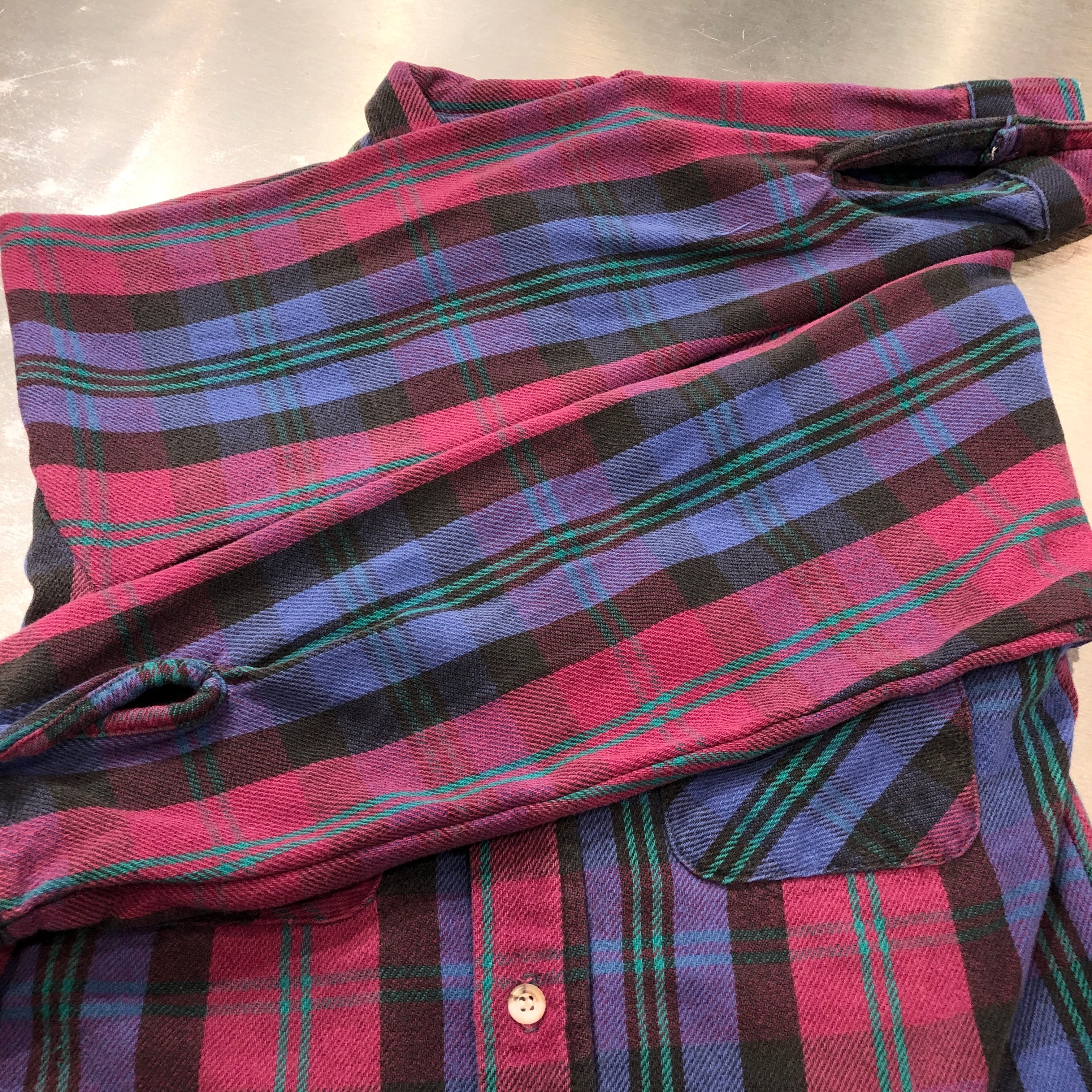 ⊕1990s FIVE BROTHER FLANNEL CHECK SHIRT PUEPLE×BURGANDY