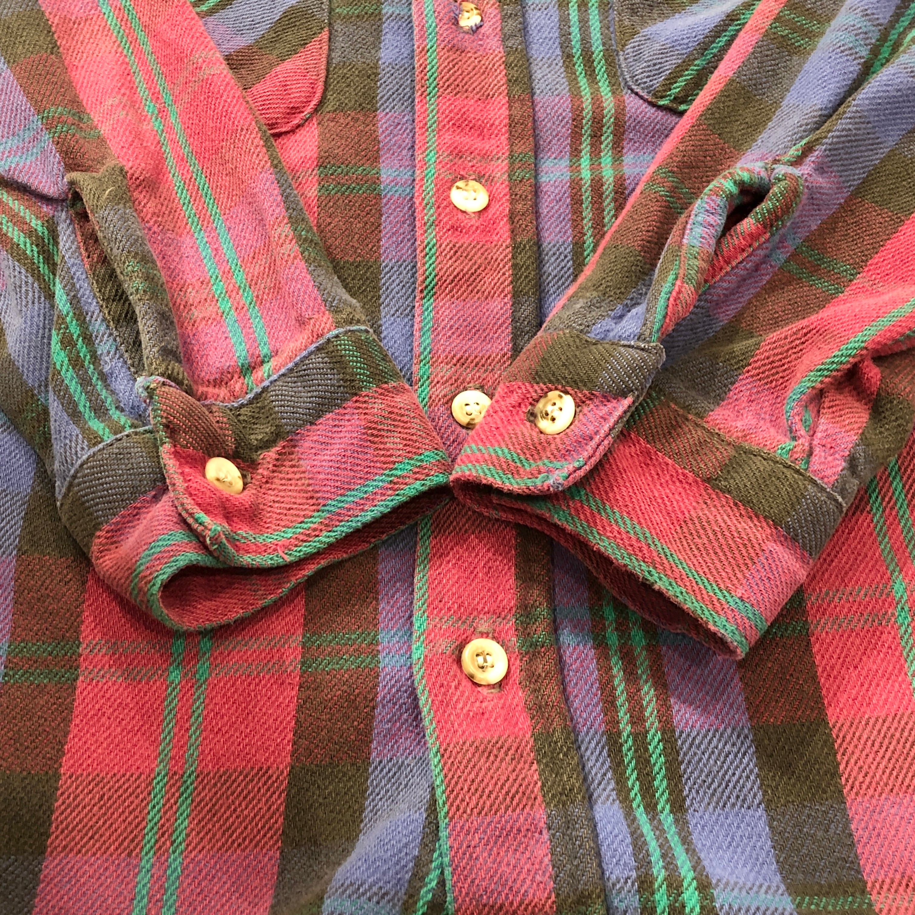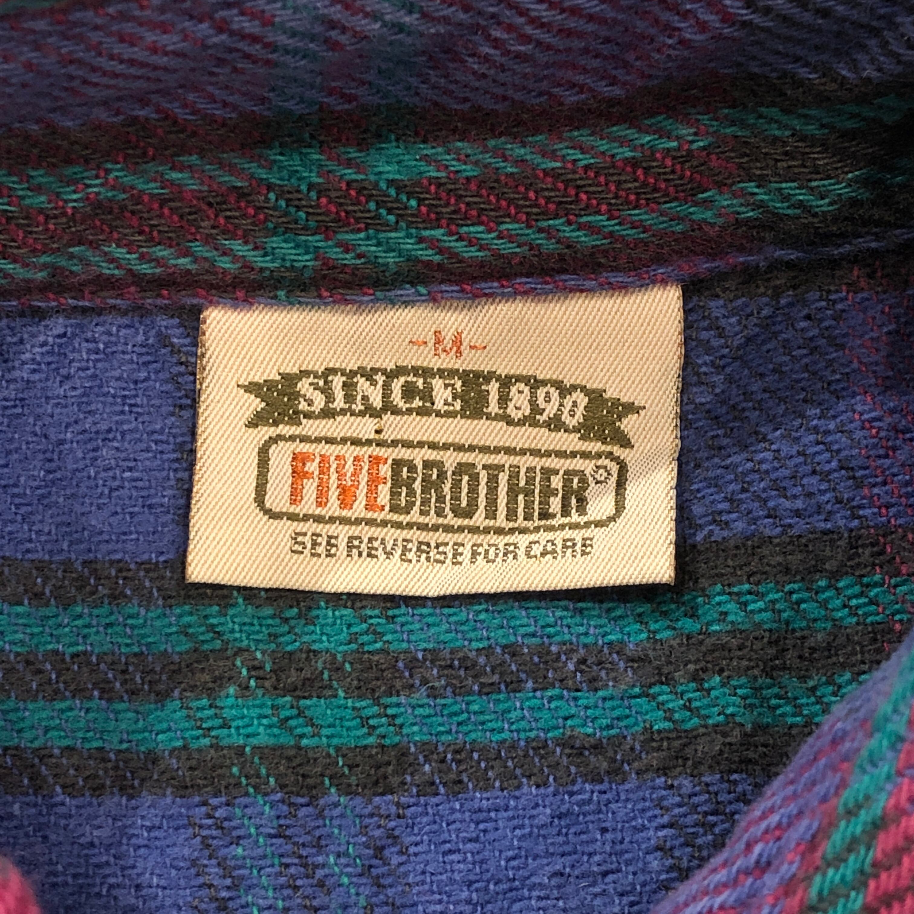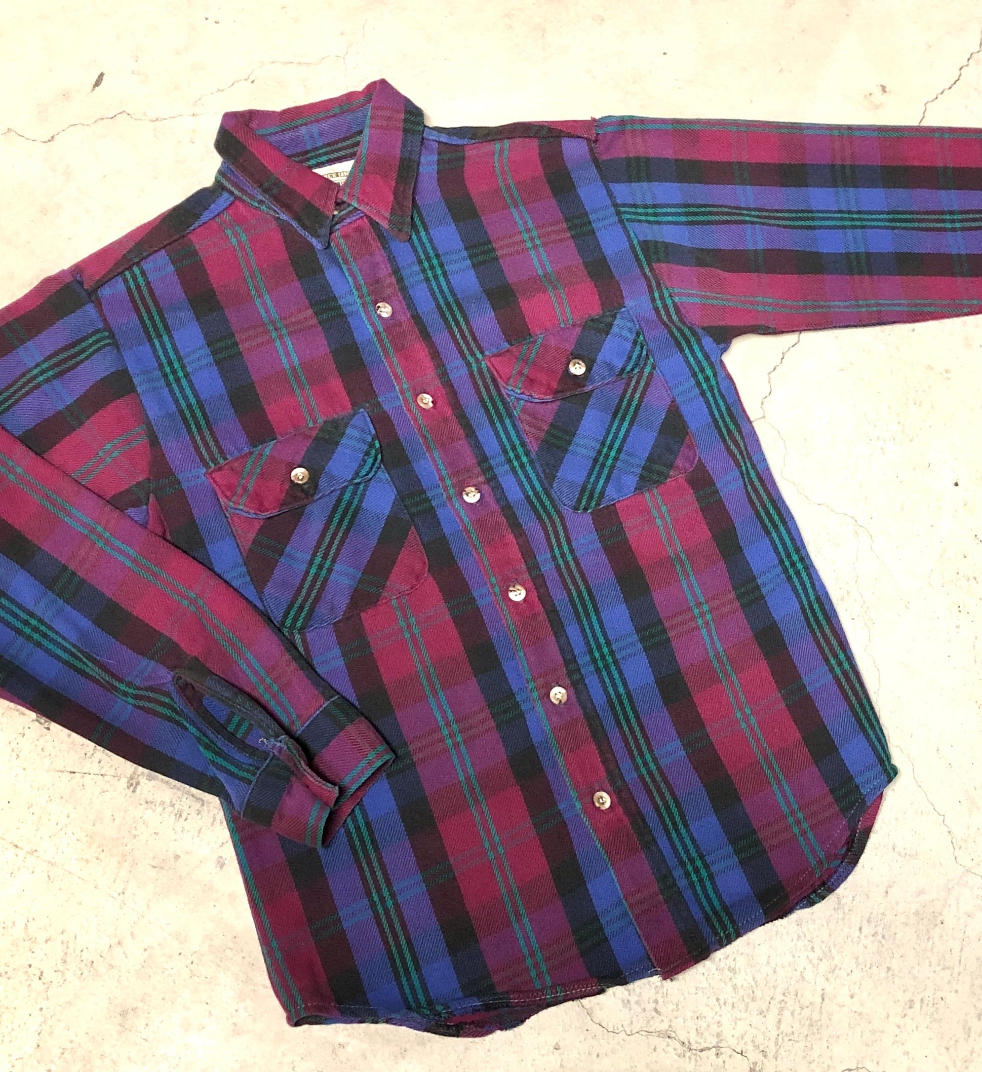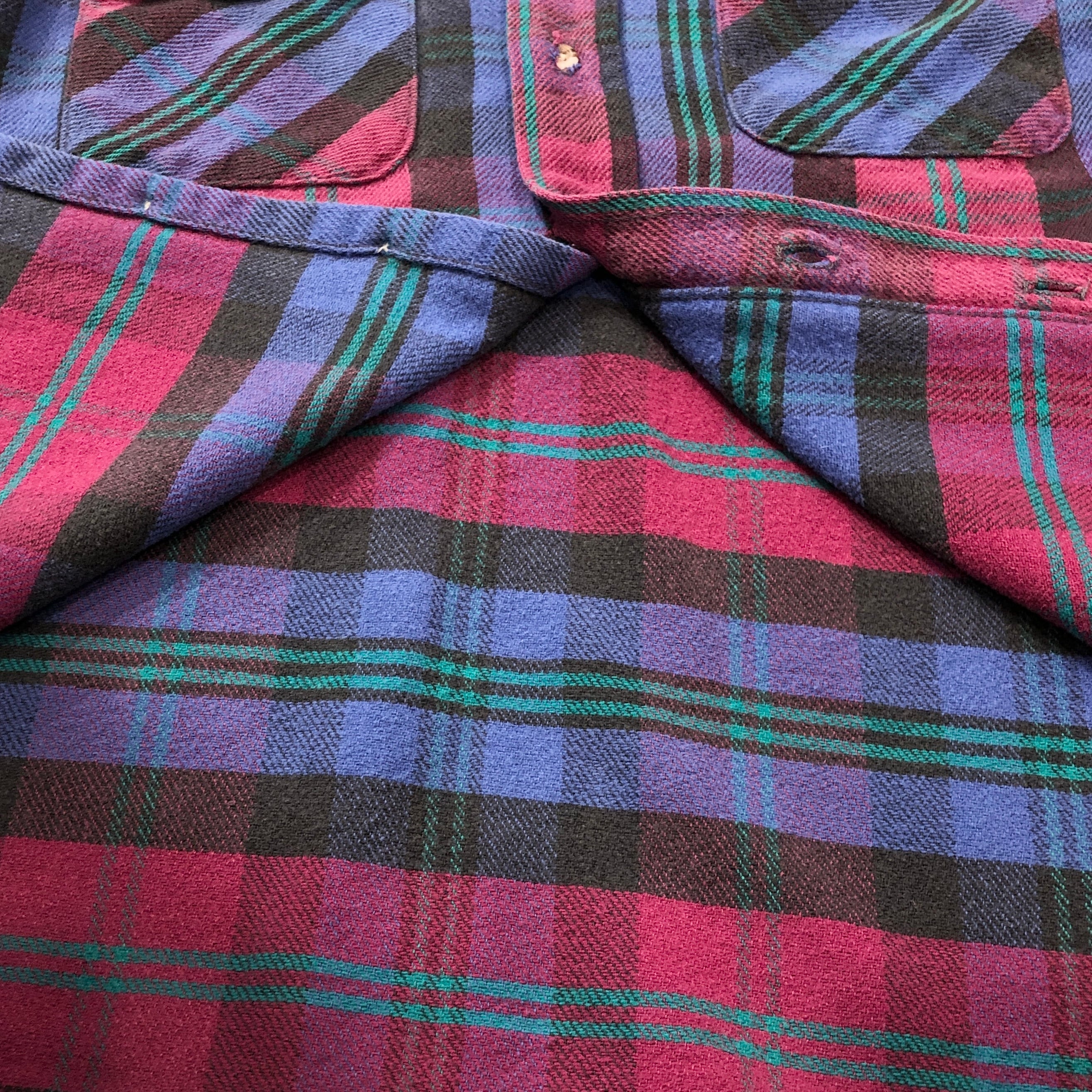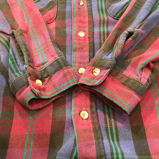 ⊕1990s FIVE BROTHER FLANNEL CHECK SHIRT PUEPLE×BURGANDY