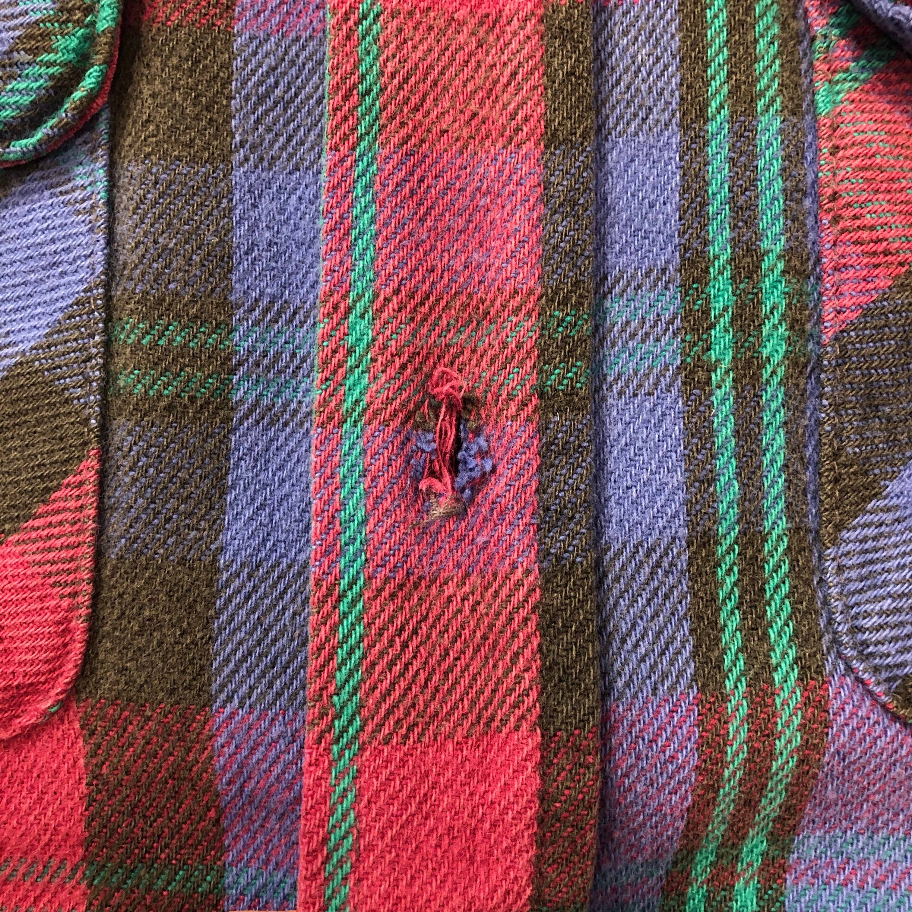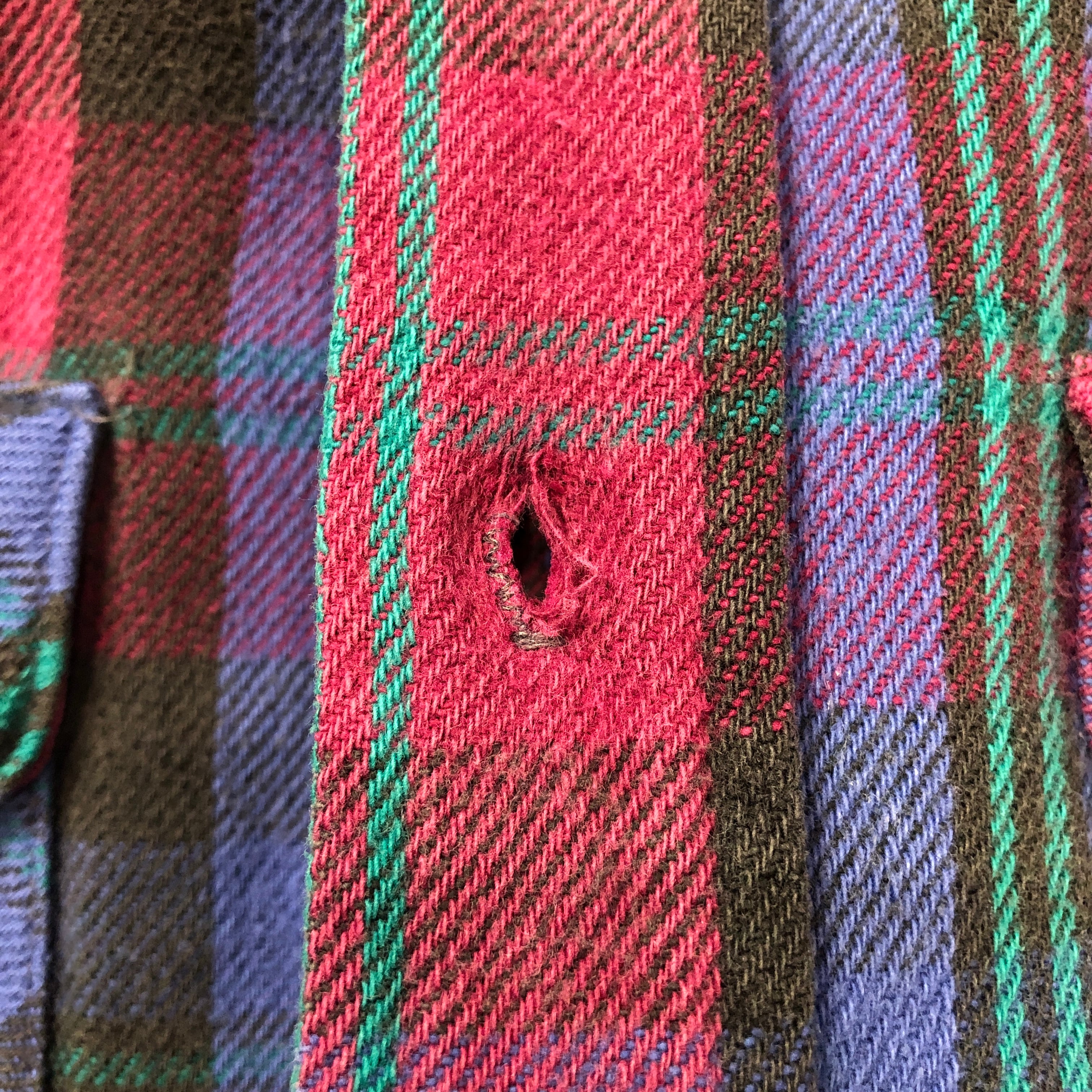 画像のように、肩に穴、ボタンホールや複数箇所にホツレがございます。