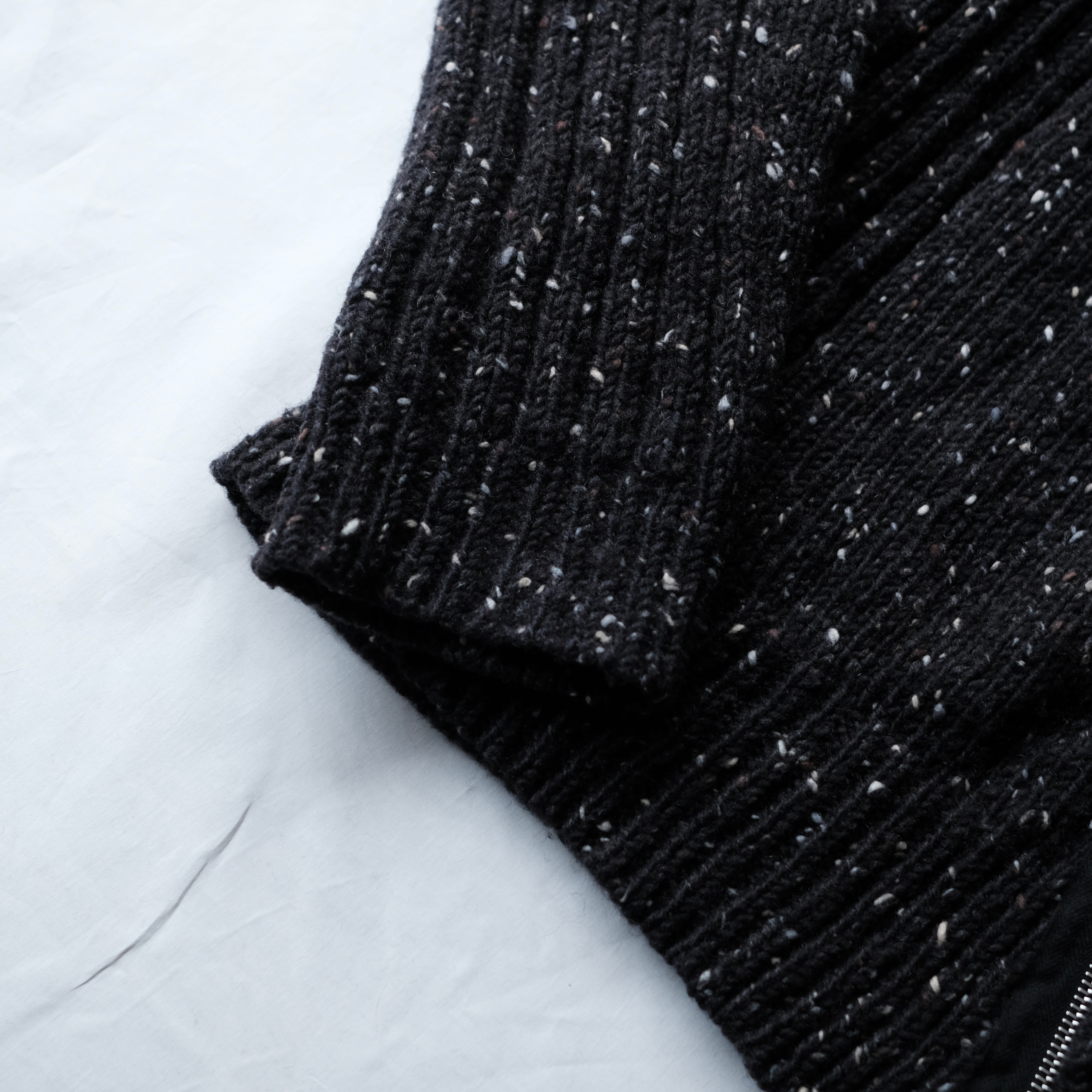 SACAIでも斜めスライダーの似たディテールがありましたが、ドリスのアイテムはウールがしっかりと重なることで首元にVゾーンを形成。浅めのスライダーの開け具合で自由度が高く、よりデザイン性が感じられるディテールとなっております。