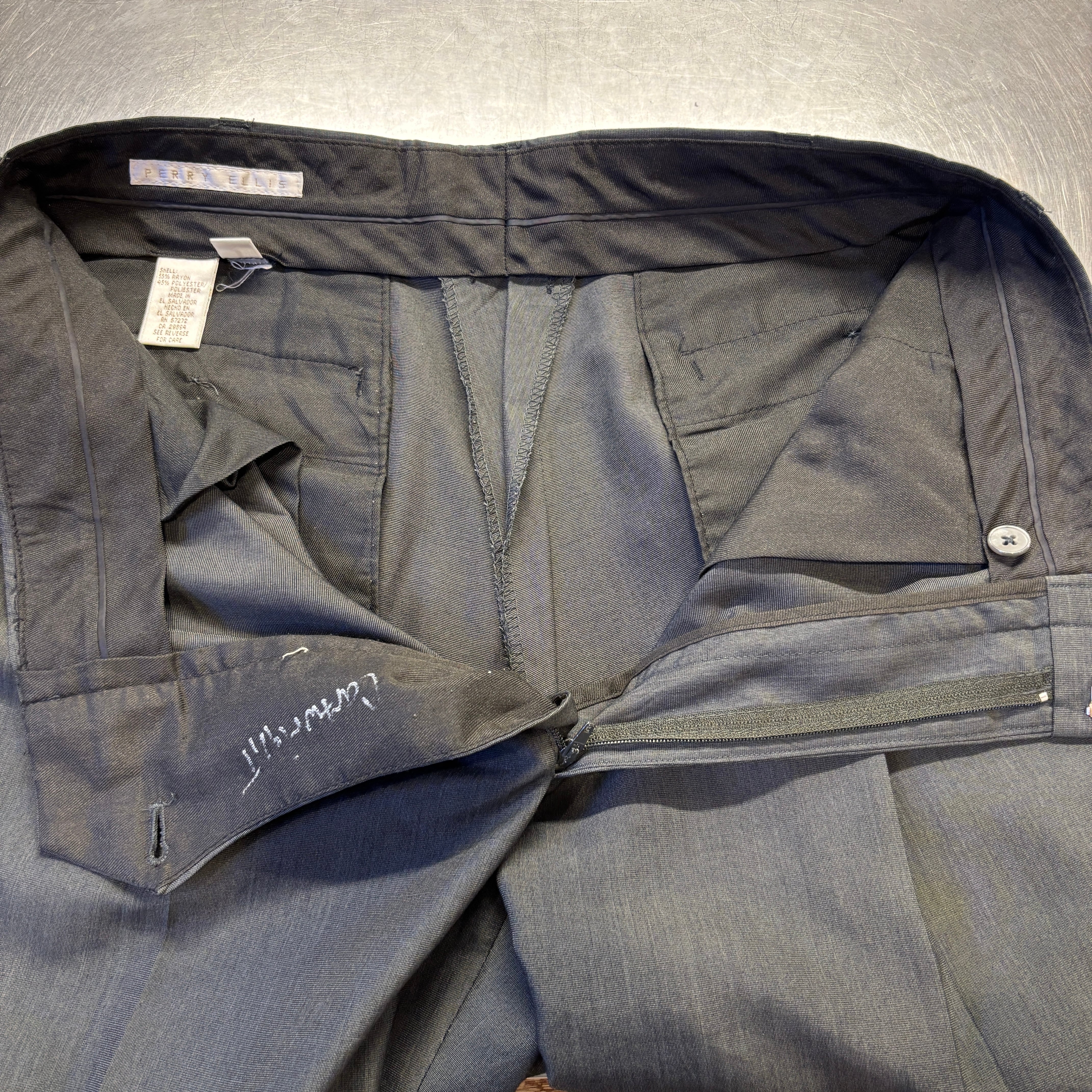 PERRY ELLIS RAYON/POLY SLACKS GRAY W32 L32.5