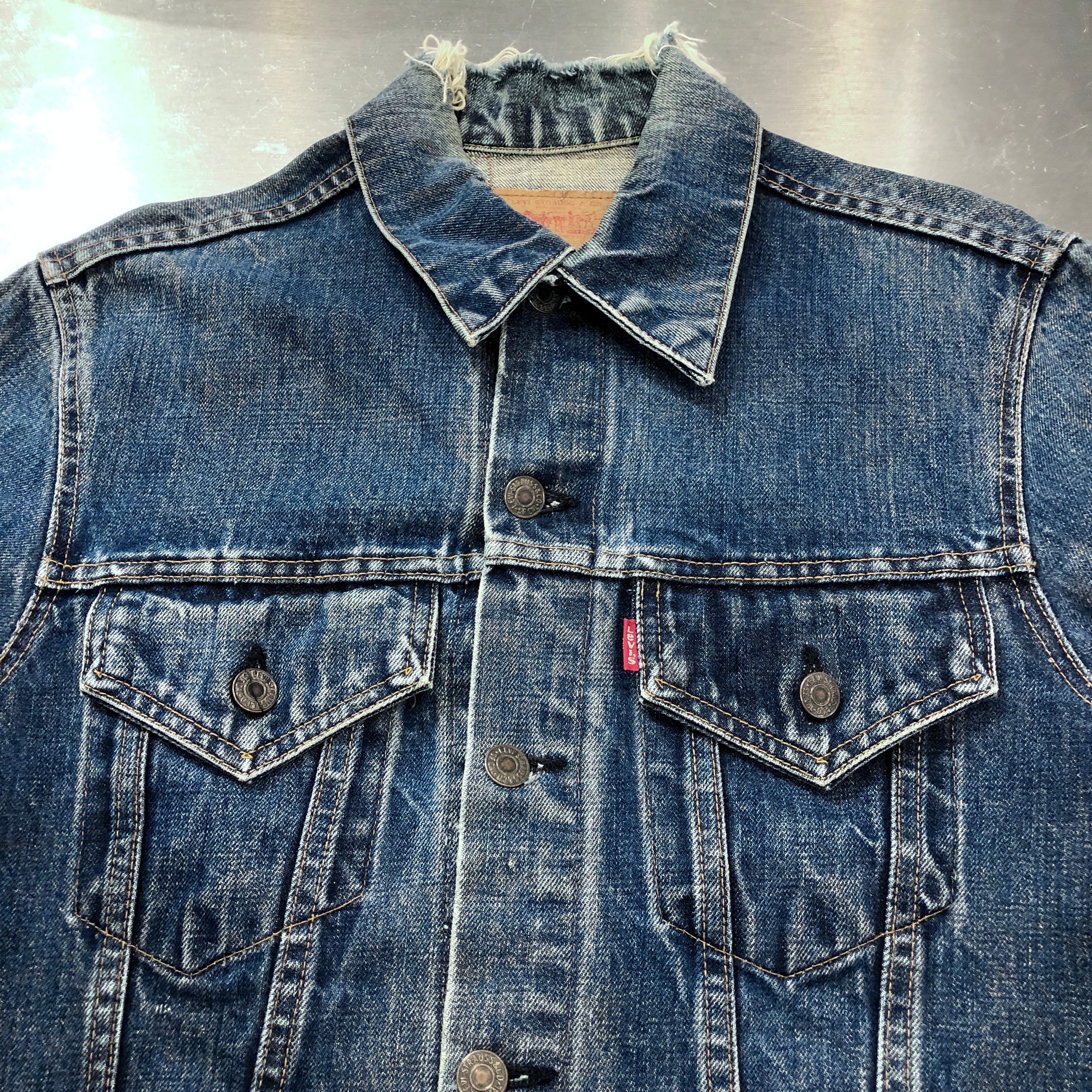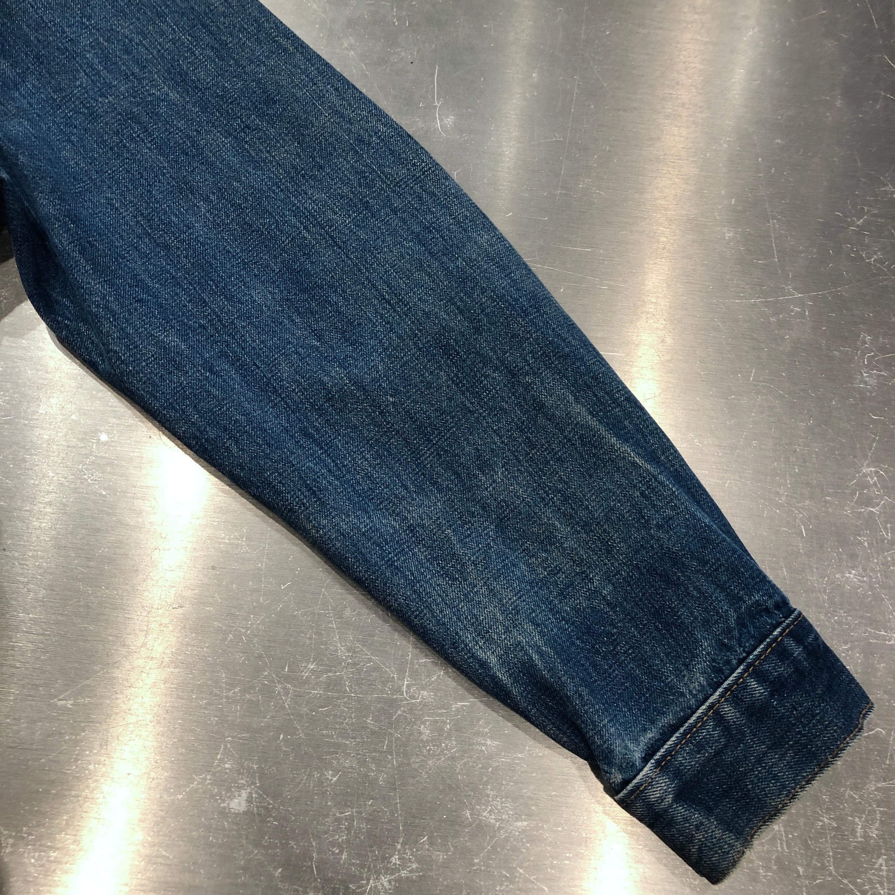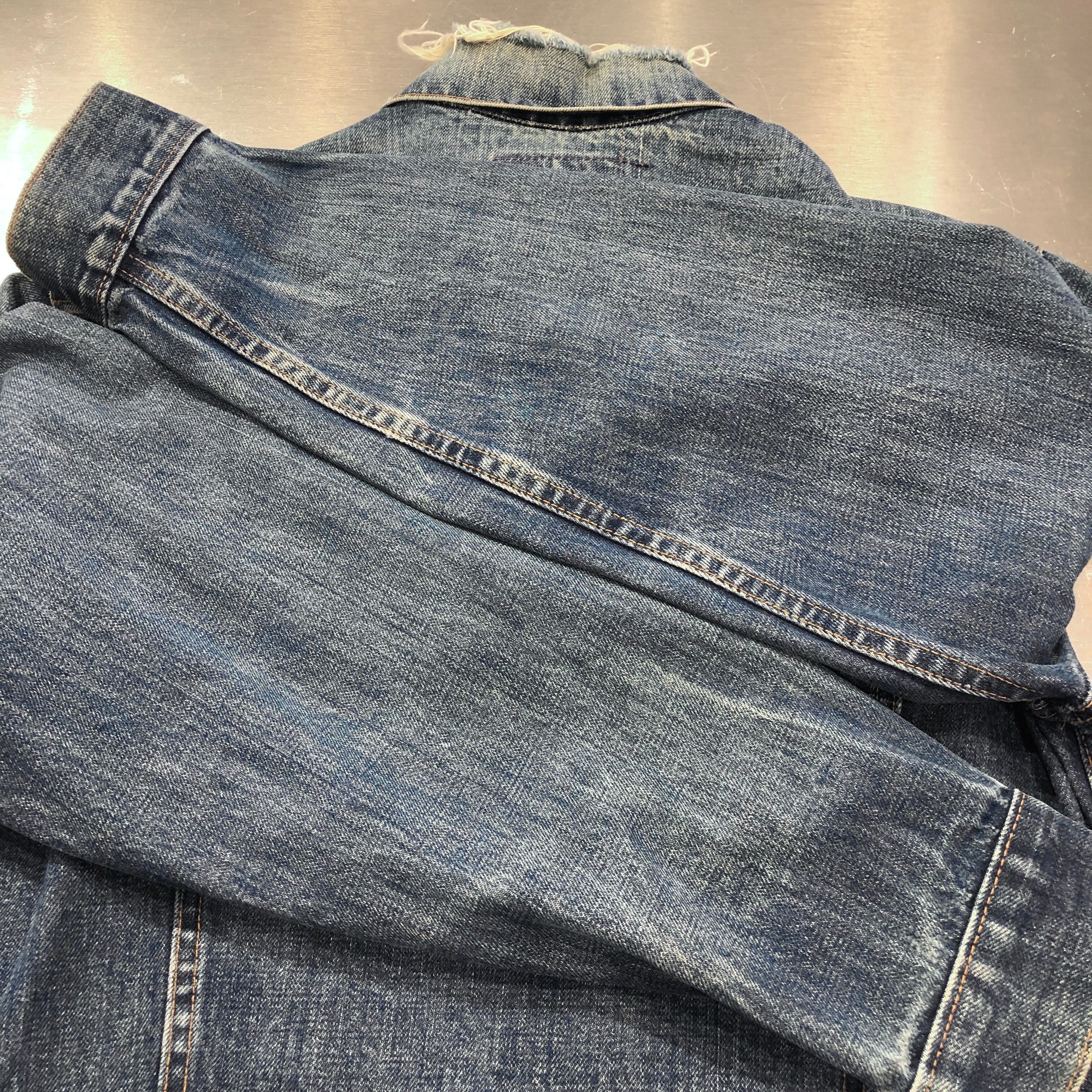 画像のように、襟がパンク、袖口がおり跡によるダメージがございます。その他傷や汚れ等ございますがビンテージ慣れされた方でしたら問題無く着用可能です。状態は画像にてご確認ください。