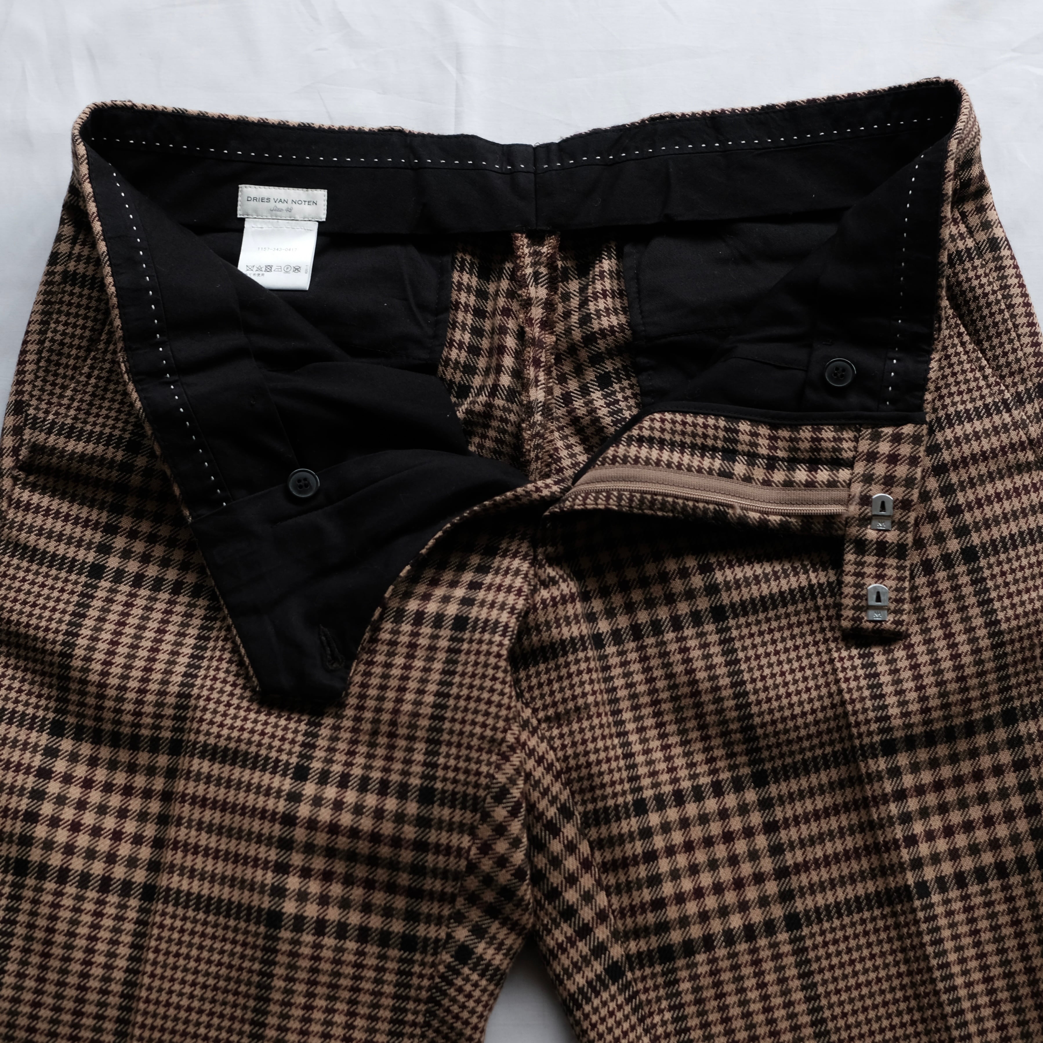DRIES VAN NOTEN 18AW MIXED WOOL CHECK SLACKS