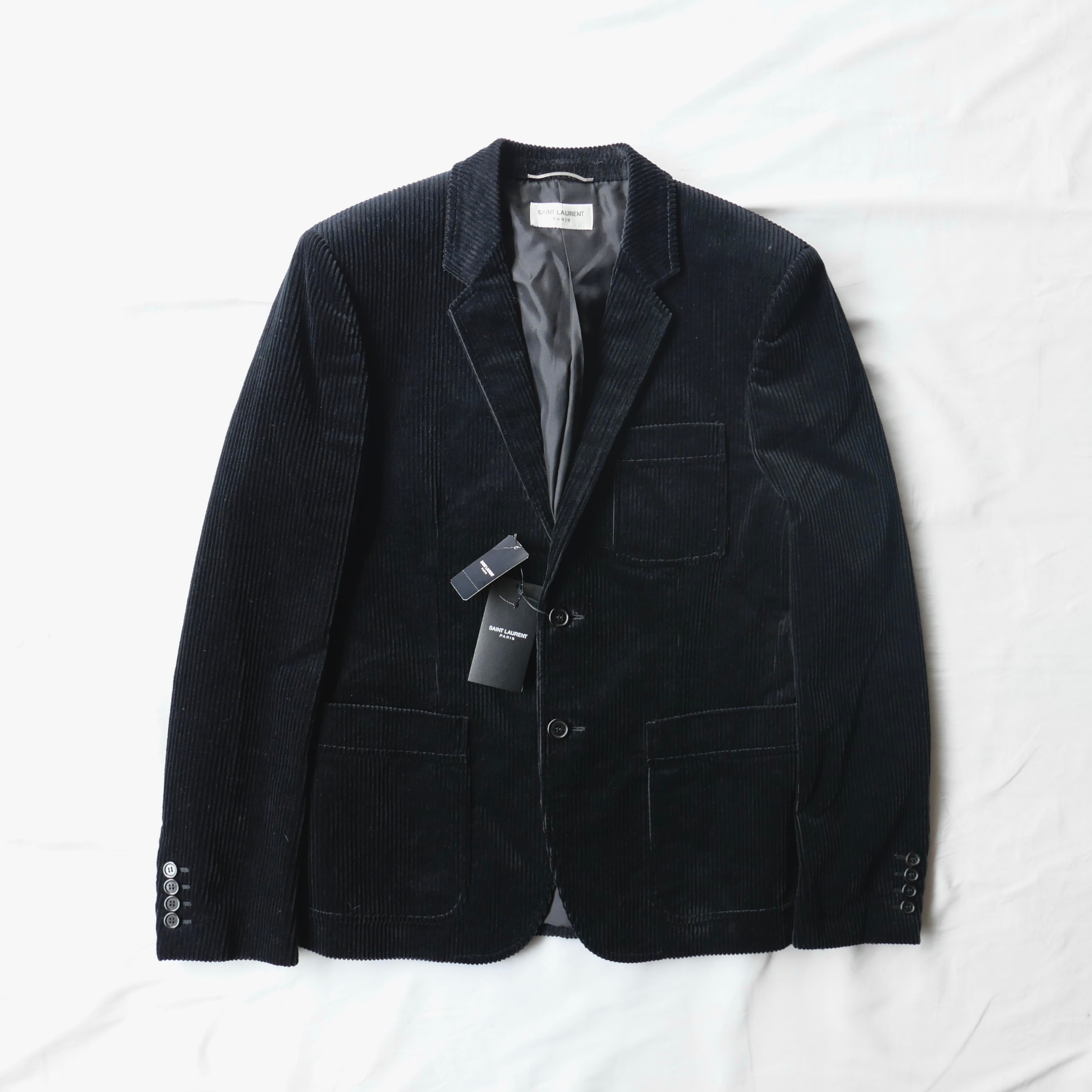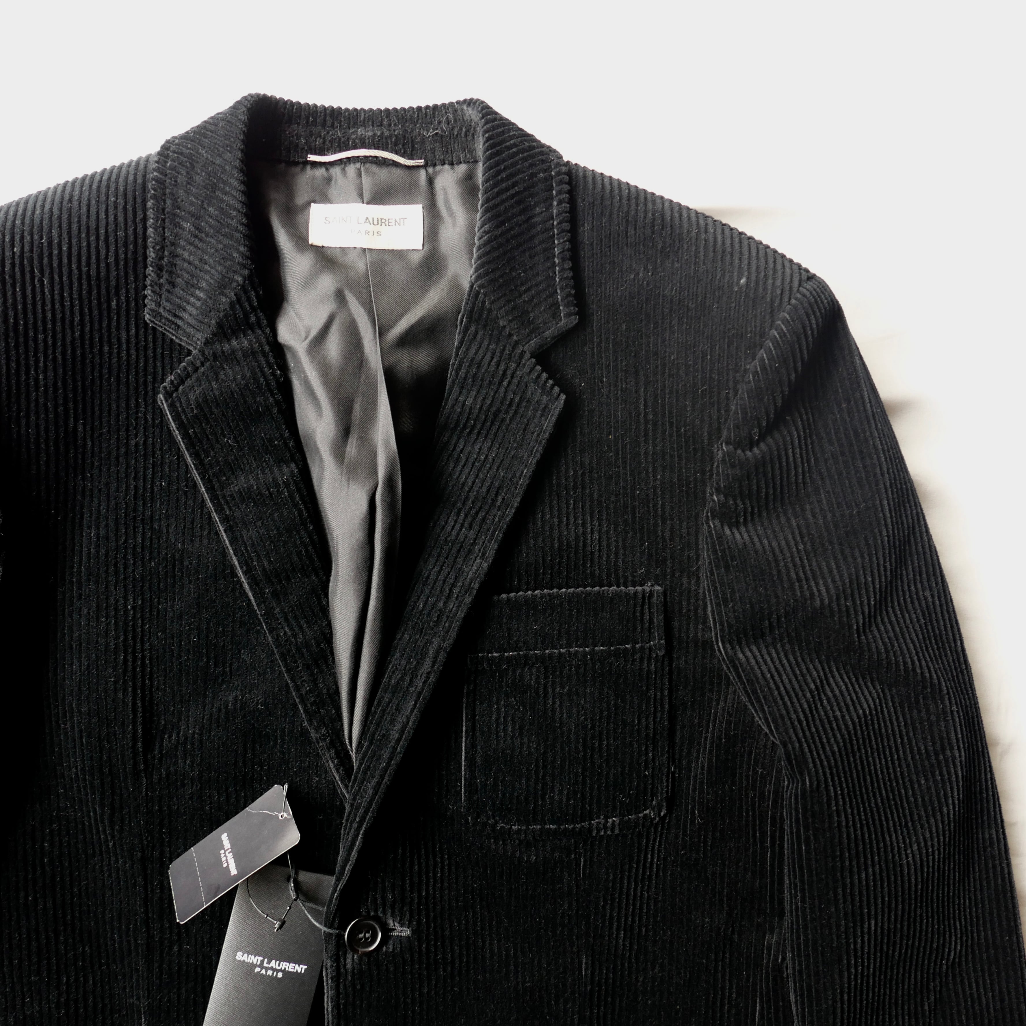 ウォッシュ加工を施したコーデュロイ素材を使用したサンローランの2ボタンジャケット。